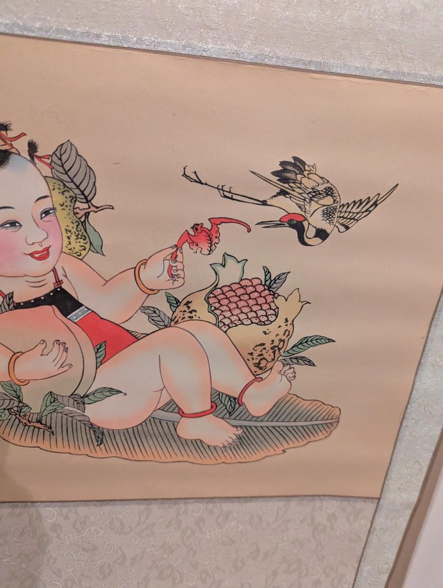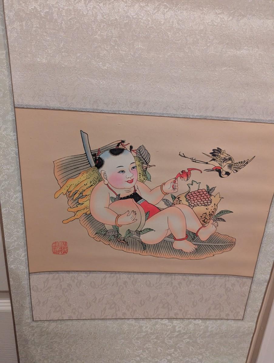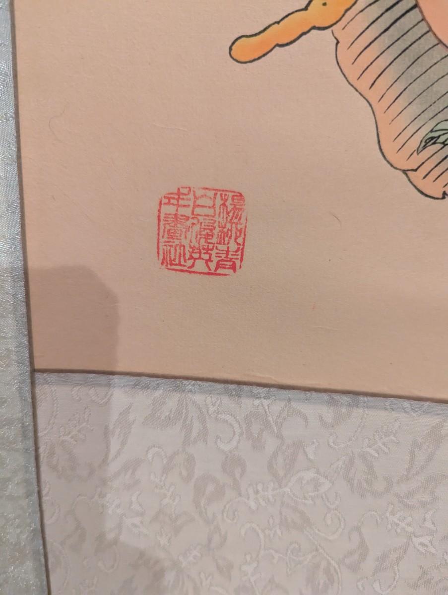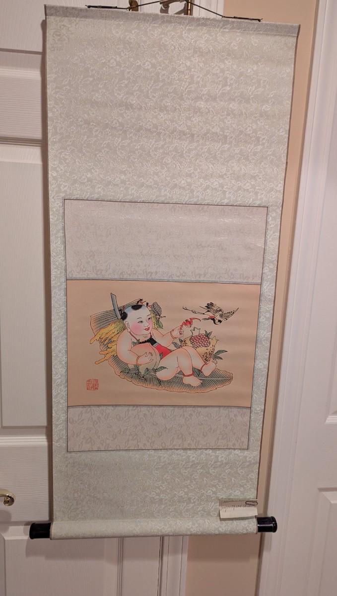 17 1/4" x 38" Antique Chinese Painting On Silk & Paper With Artist Mark #2