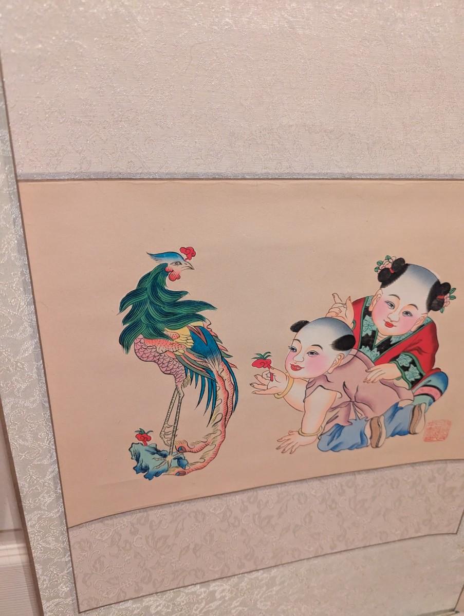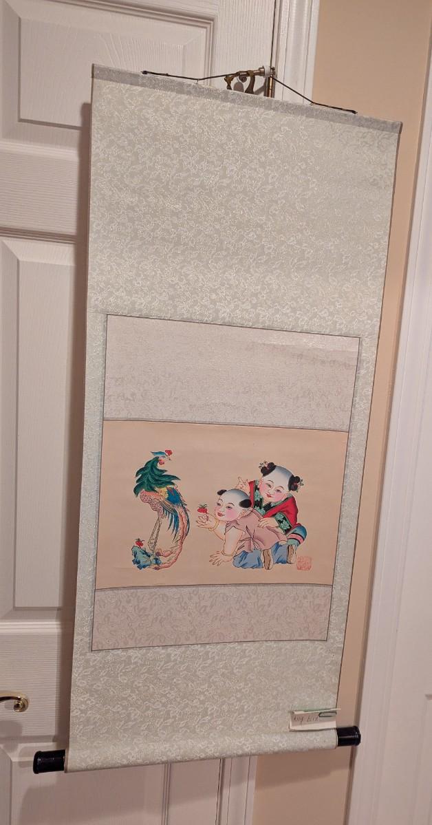 17 1/4" x 38" Antique Chinese Painting On Silk & Paper With Artist Mark #4