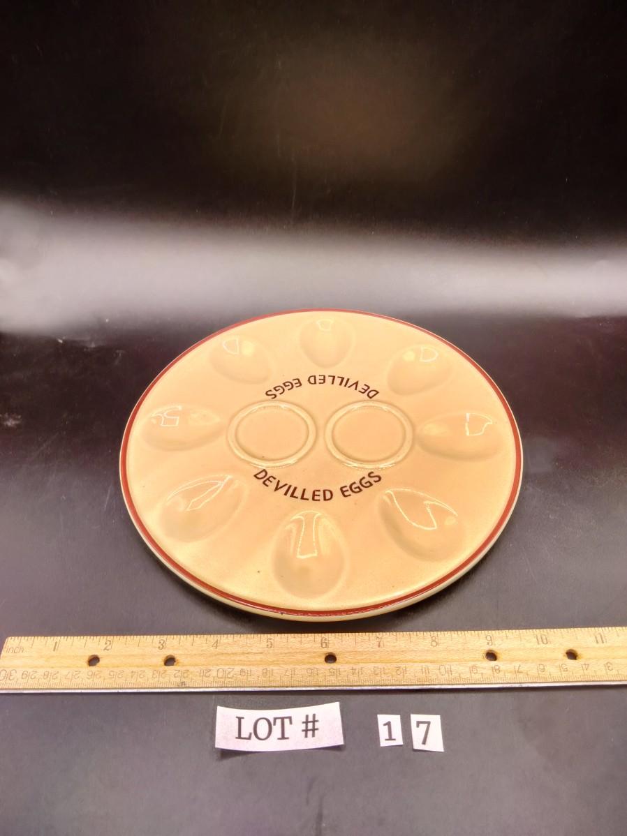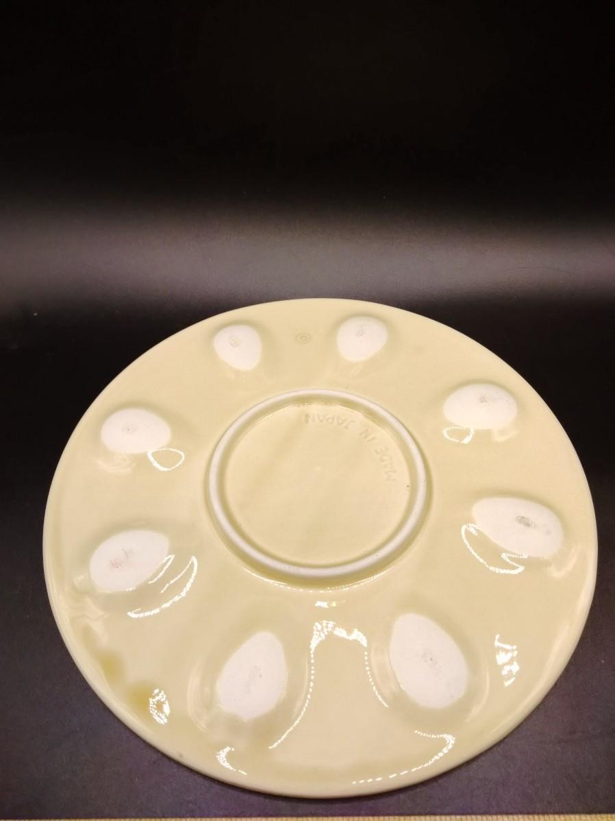 ceramic - Japanese made platter with misspelled "DEVILLED" Eggs.