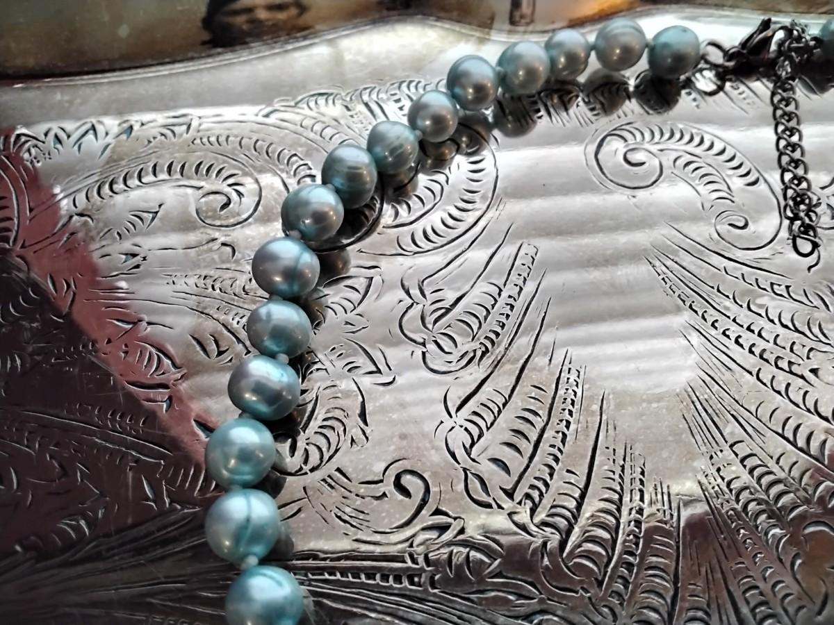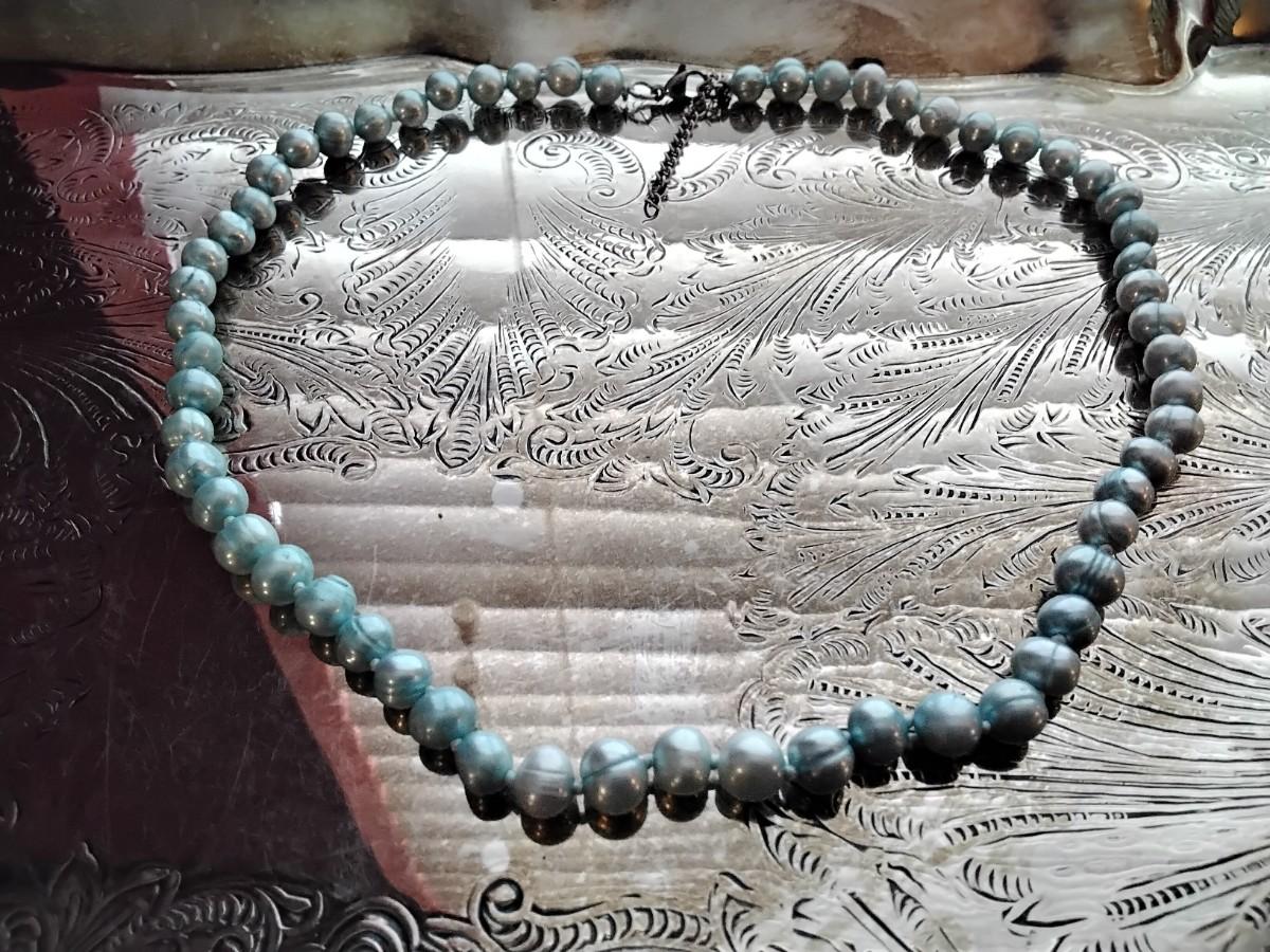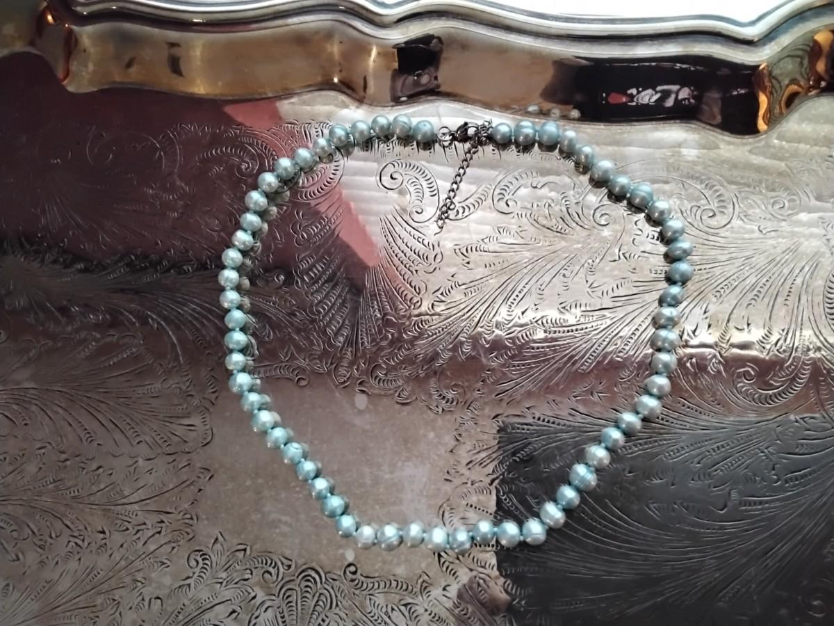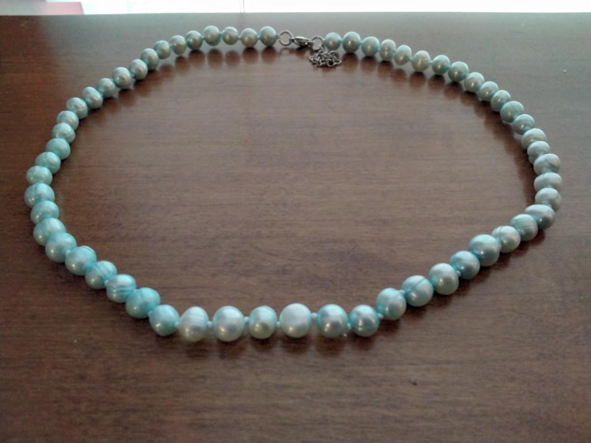 17" 8.5 Baby Blue Pearl Necklace with SS Clasp