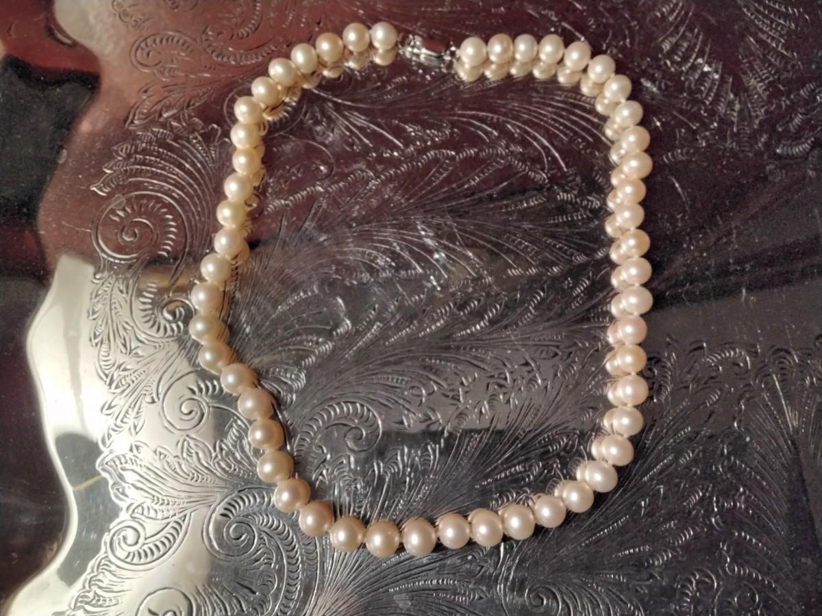 17" 8mm Pink Pearl Necklace with Sterling Silver Claw Clasp