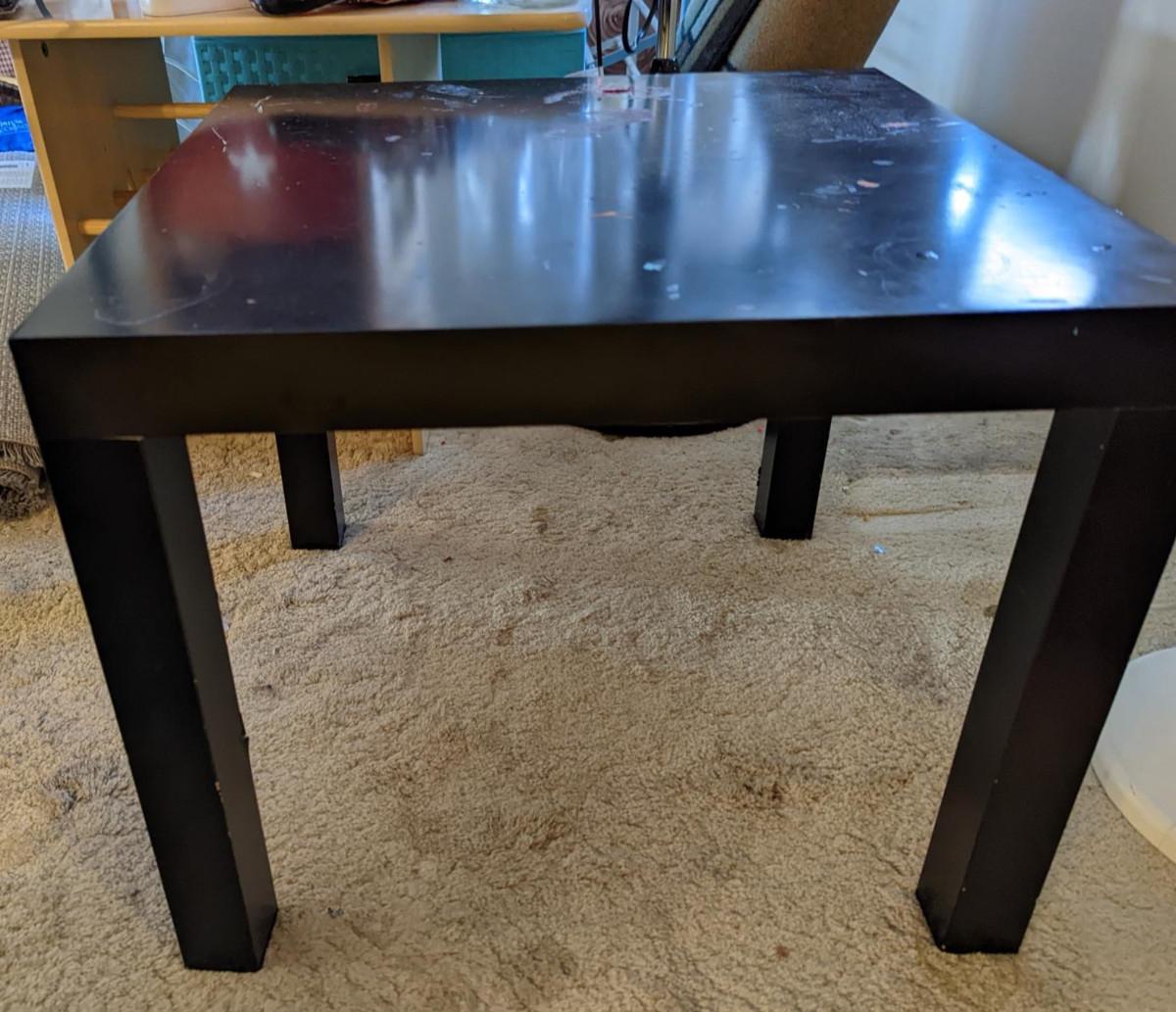 #17 Black table, very sturdy table. Needs a little care on the top.