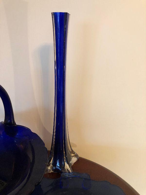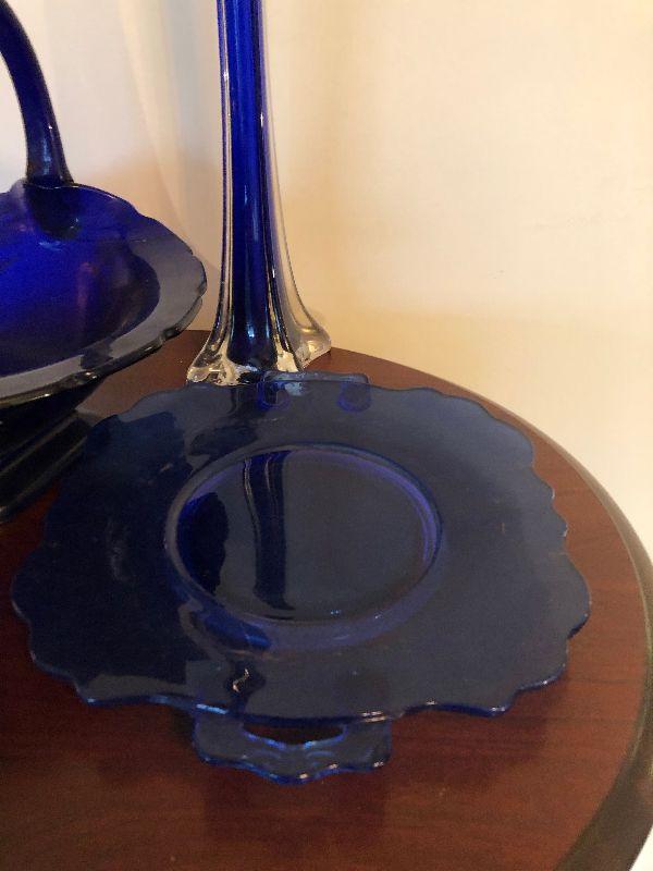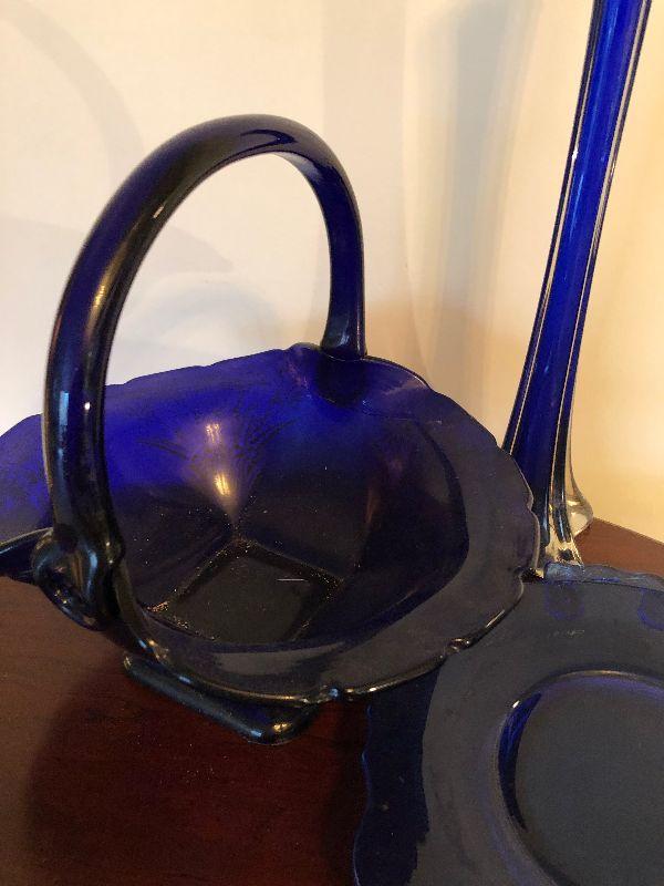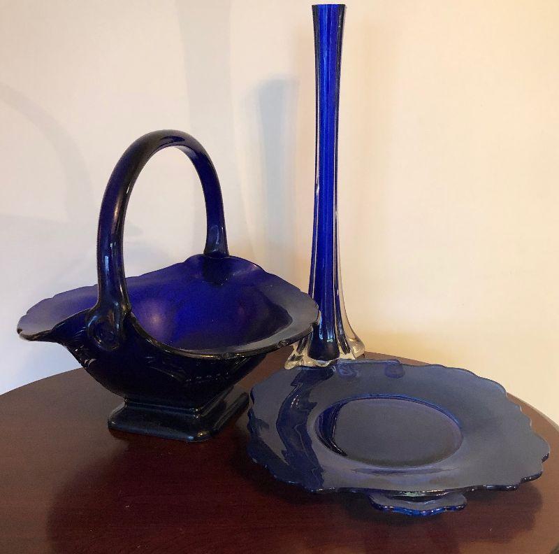 #17 Blue Glass Lot - Basket, Plate and Vase