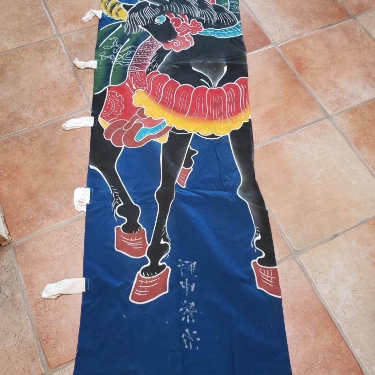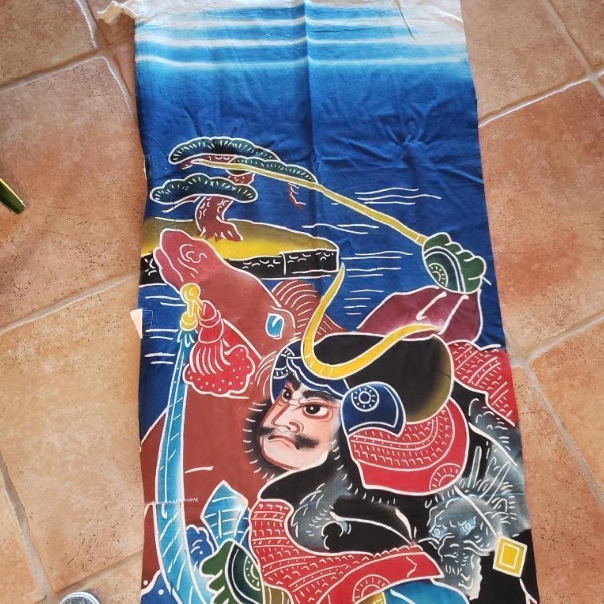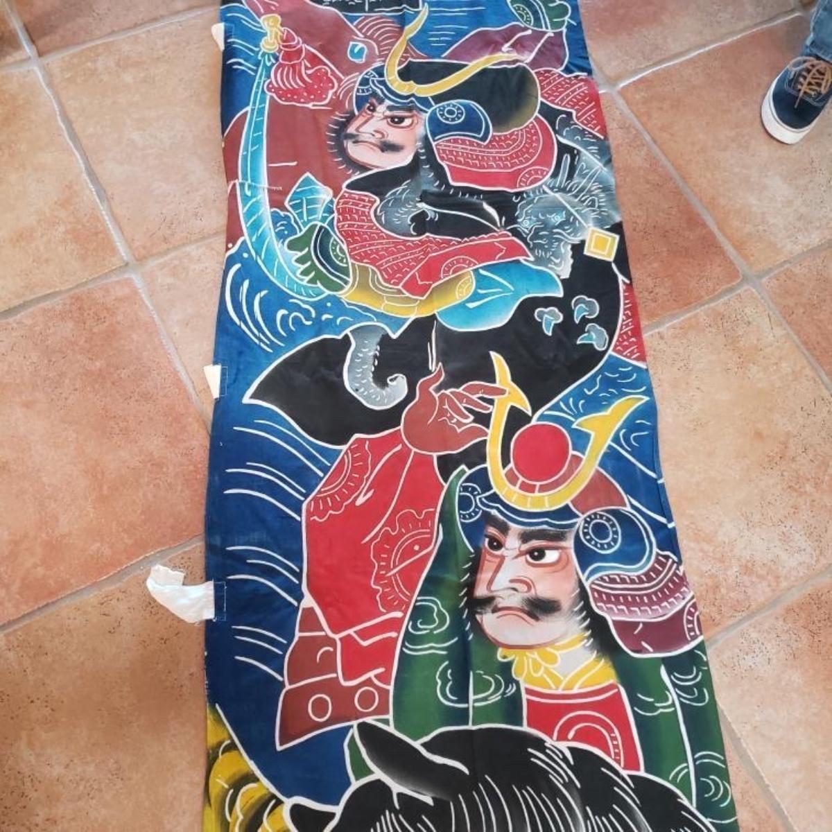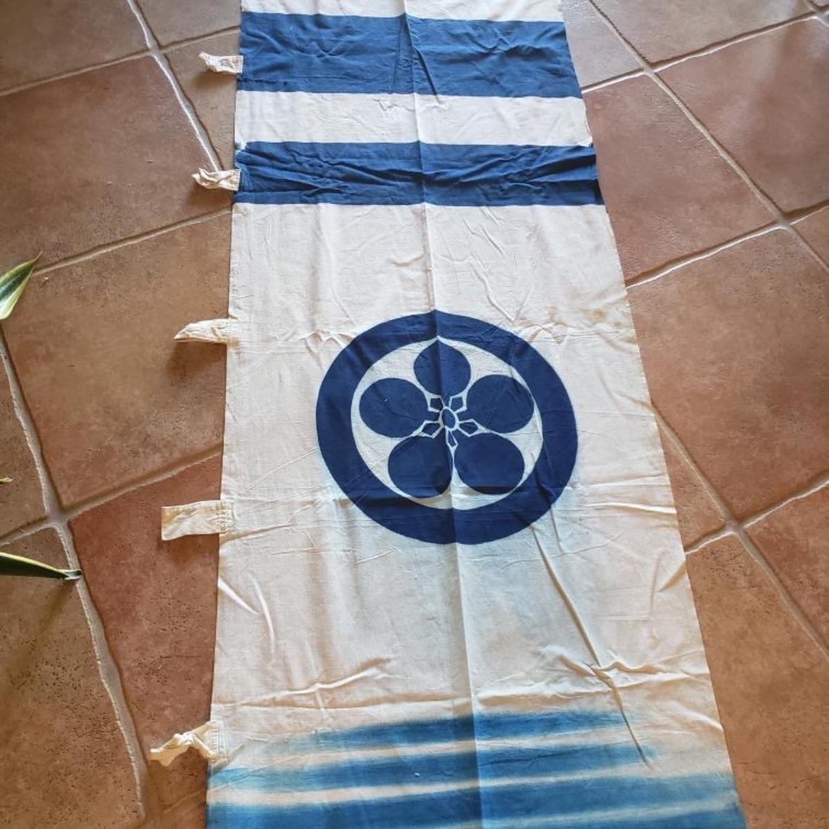 Huge antique Japanese Flag - painted on cotton with ties 17 ft 7 in long and 27 in wide.