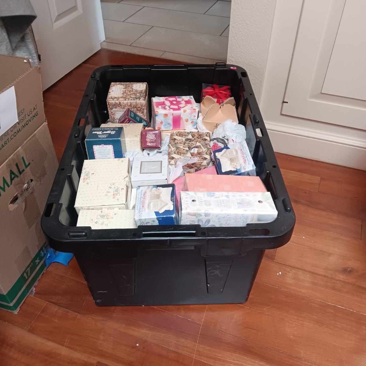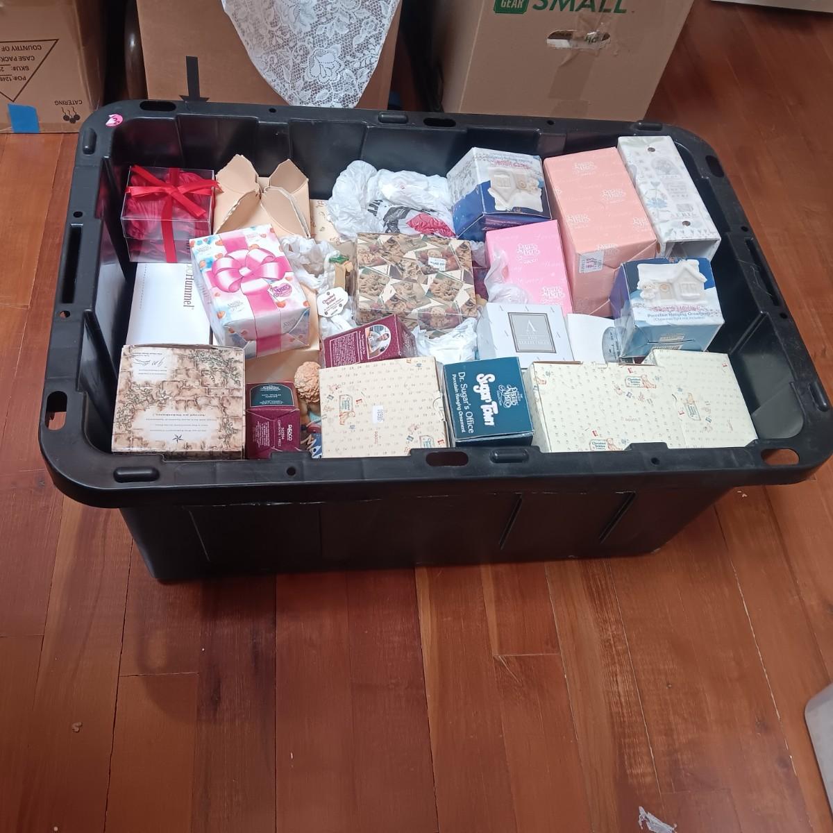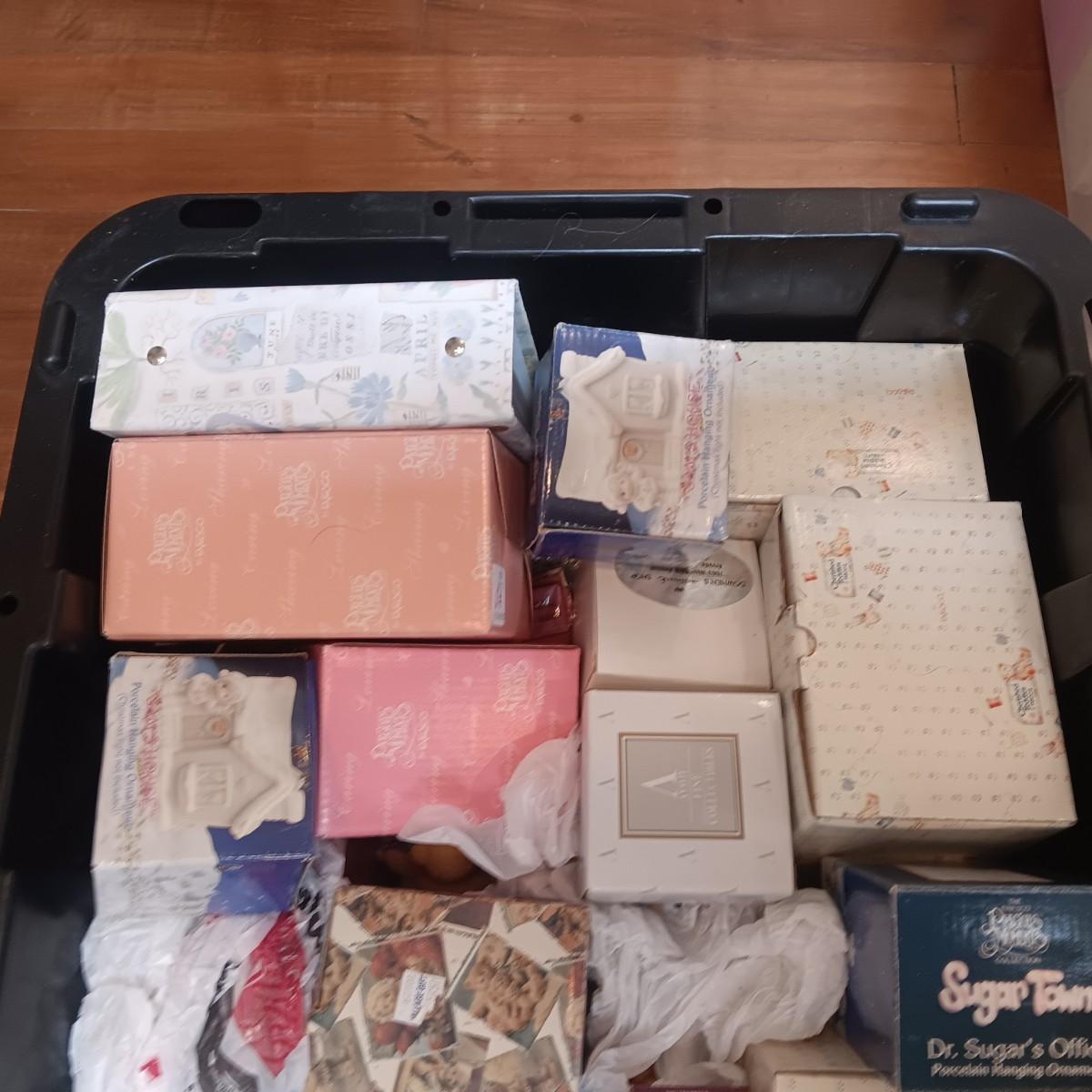 17 GALLON TOTE FULL OF MOSTLY CHERISHED TEDDIES AND PRECIOUS MOMENTS