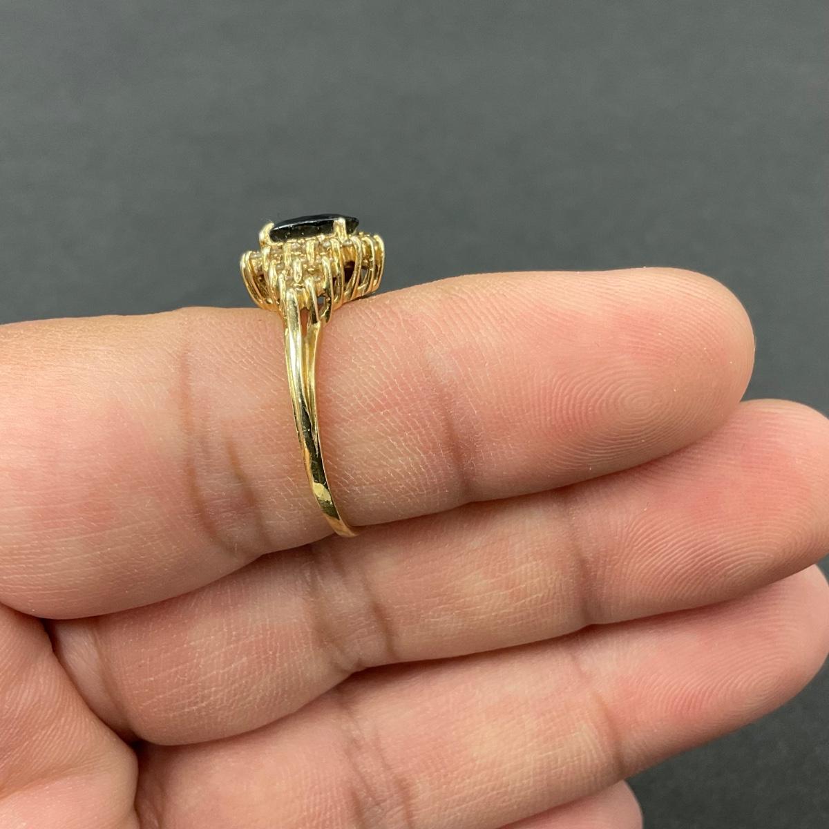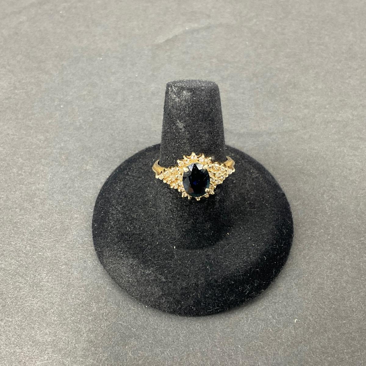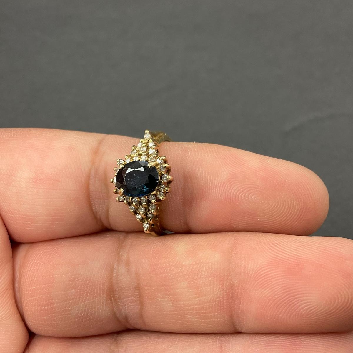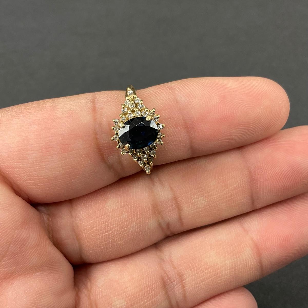 -17- GOLD | 14K REA Deep Blue Stone With Diamond Chips | Marked