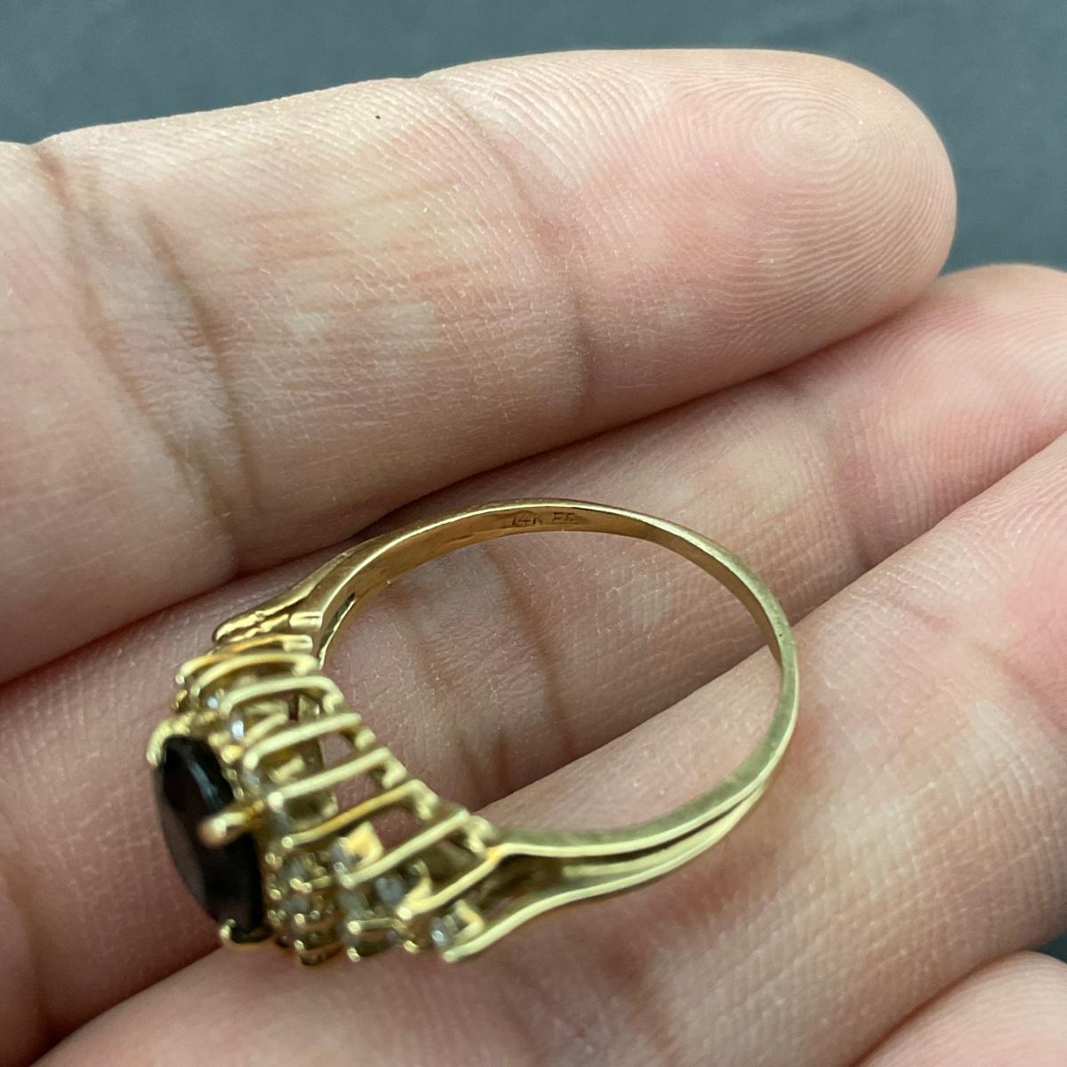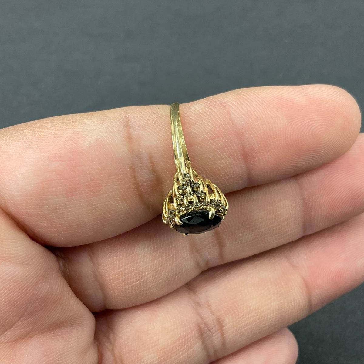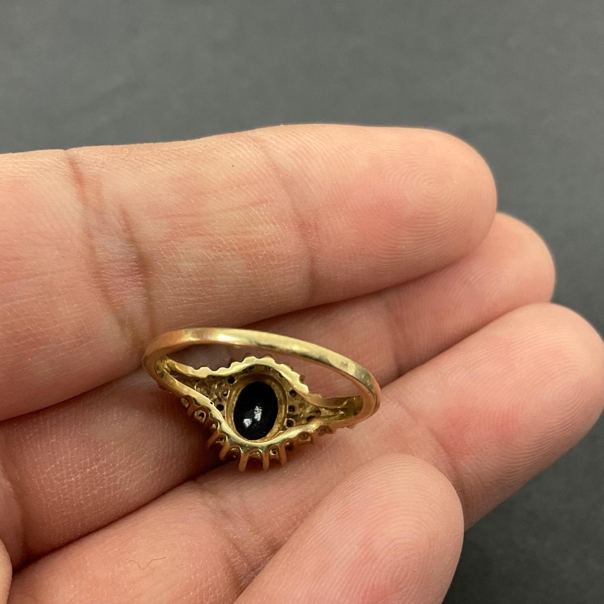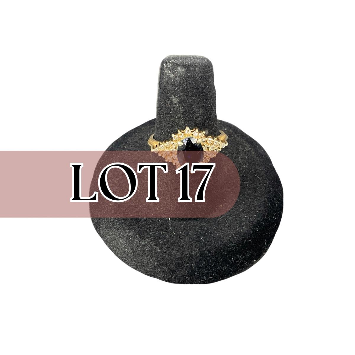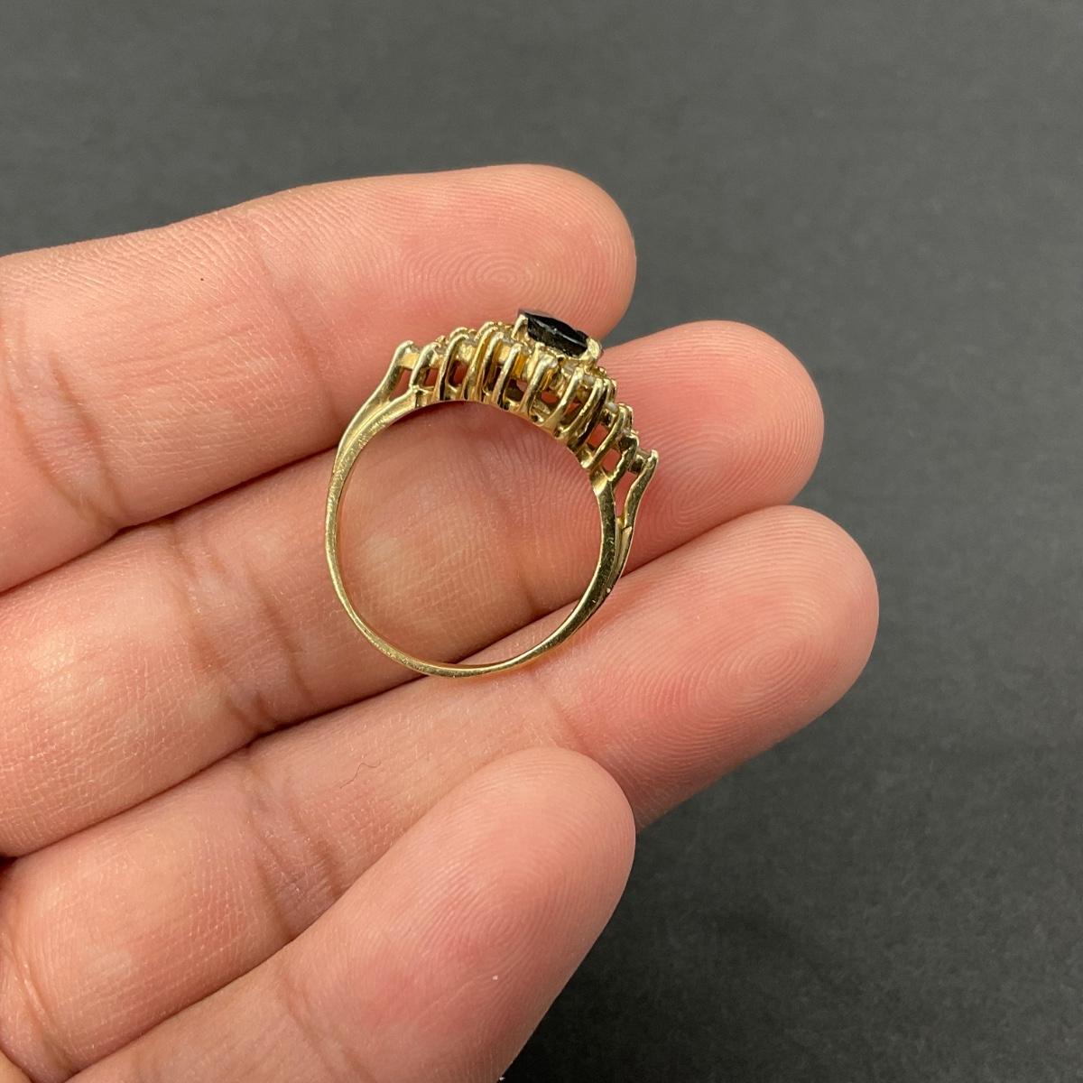 -17- GOLD | 14K REA Deep Blue Stone With Diamond Chips | Marked