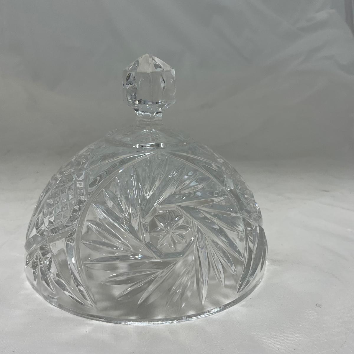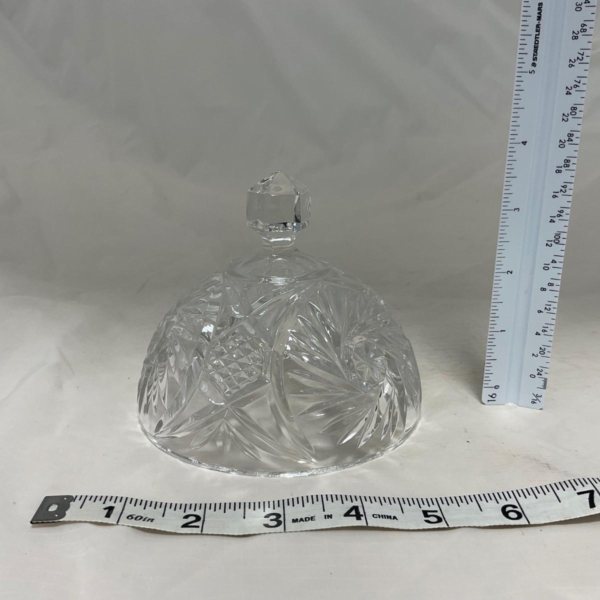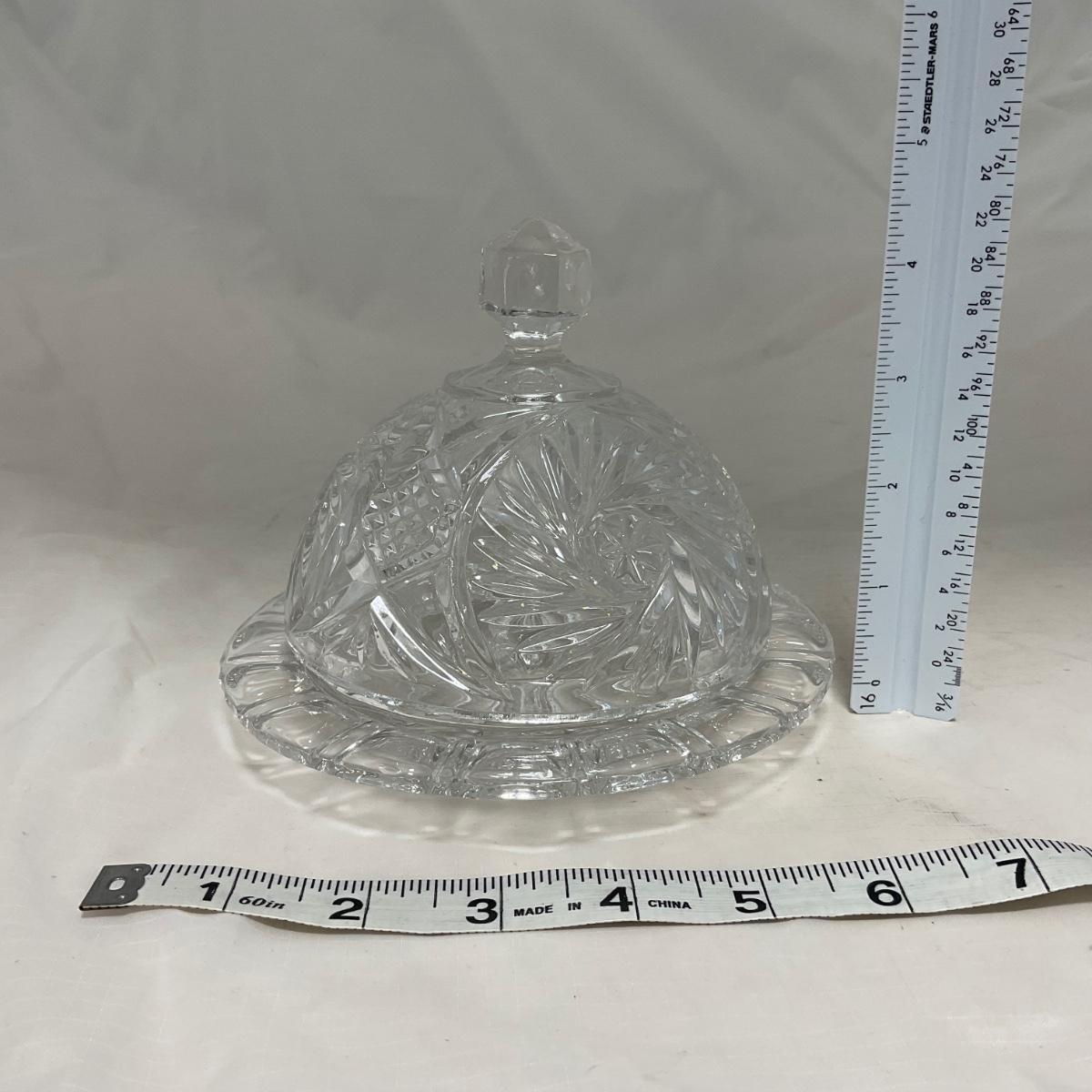 Medium sized clear glass covered butter dish, with beautiful detail. Please see photos for details and condition. ::: Shipping is available on this lot. If you require shipping you must let us know at the close of the auction. We will coordinate with you after the item has been won. Shipping fees will include insurance up to or exceeding the value of all items being mailed. If you have any questions regarding this lot please contact the auctioneer either via this website, by direct email or by phone. PICK UP TIMES and other important information can be found in the TERMS and DESCRIPTION of the auction. Please take a look for pertinent information. Thanks!