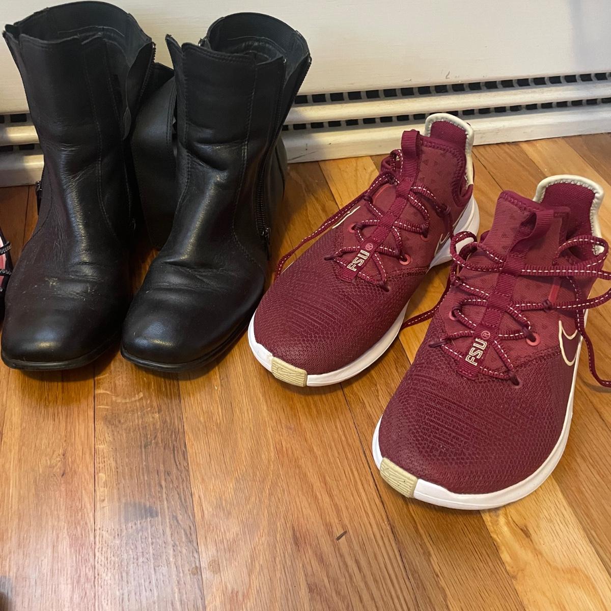 Sneakers, sandals, boots, slip-ons, boots and dress shoes make up these seventeen pairs of shoes that are predominantly size 9 with a few pairs of 8’s and 9.5.