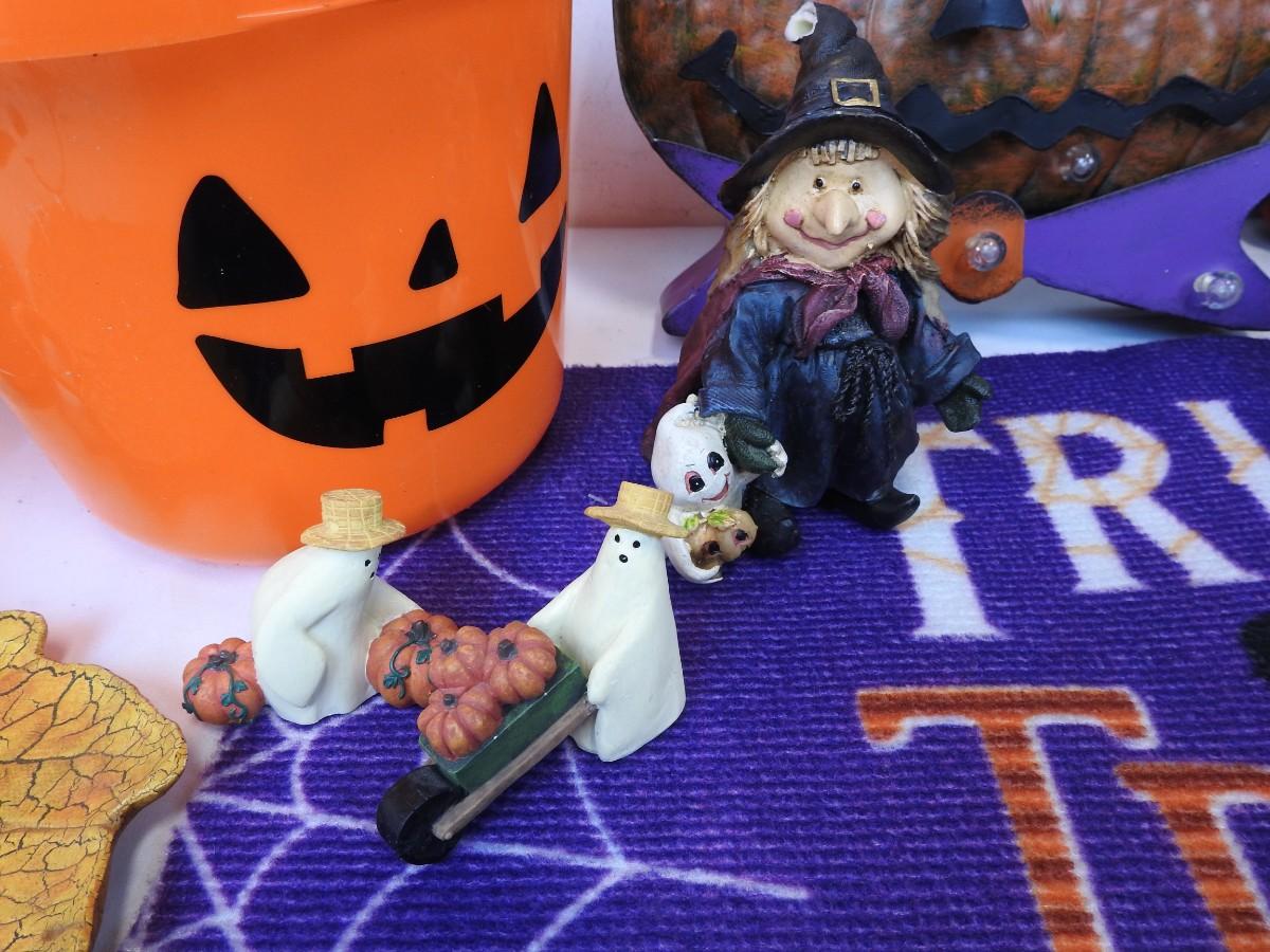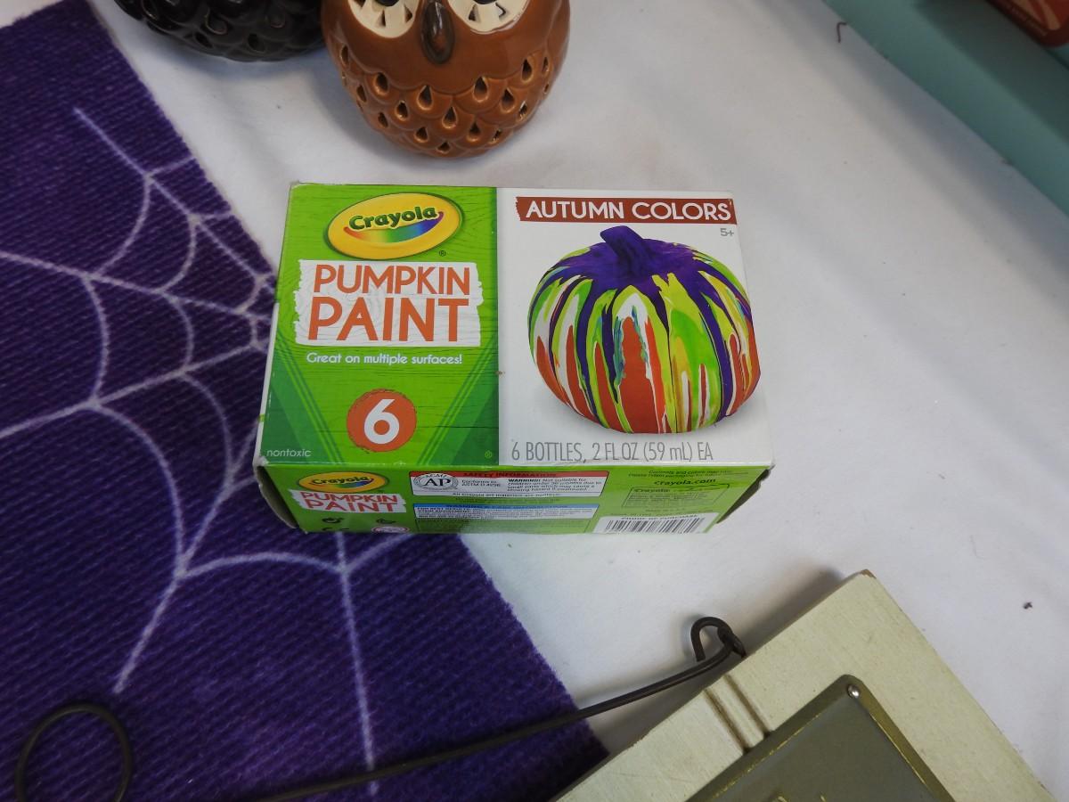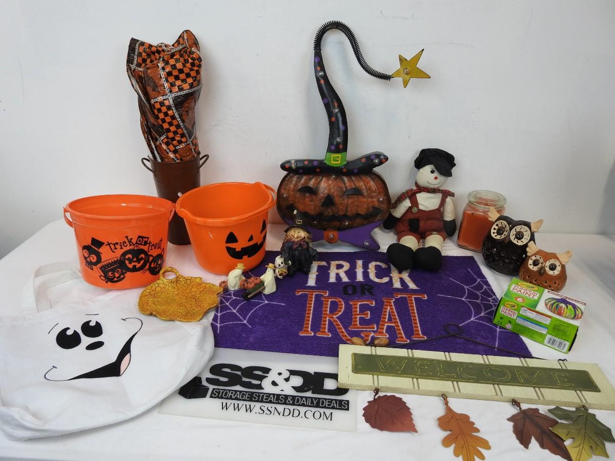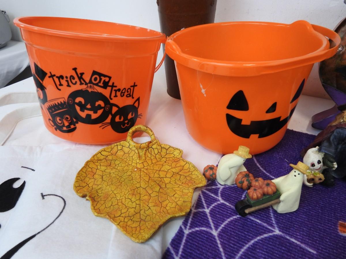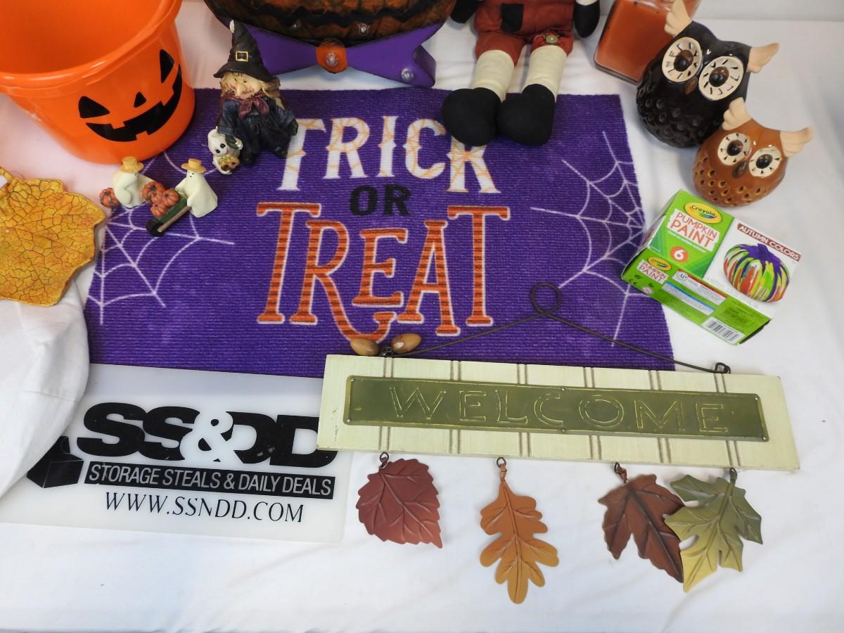 17 pc Fall/Halloween Decor: Buckets, Tablecloth, Wall Decor, Figurines, Owls