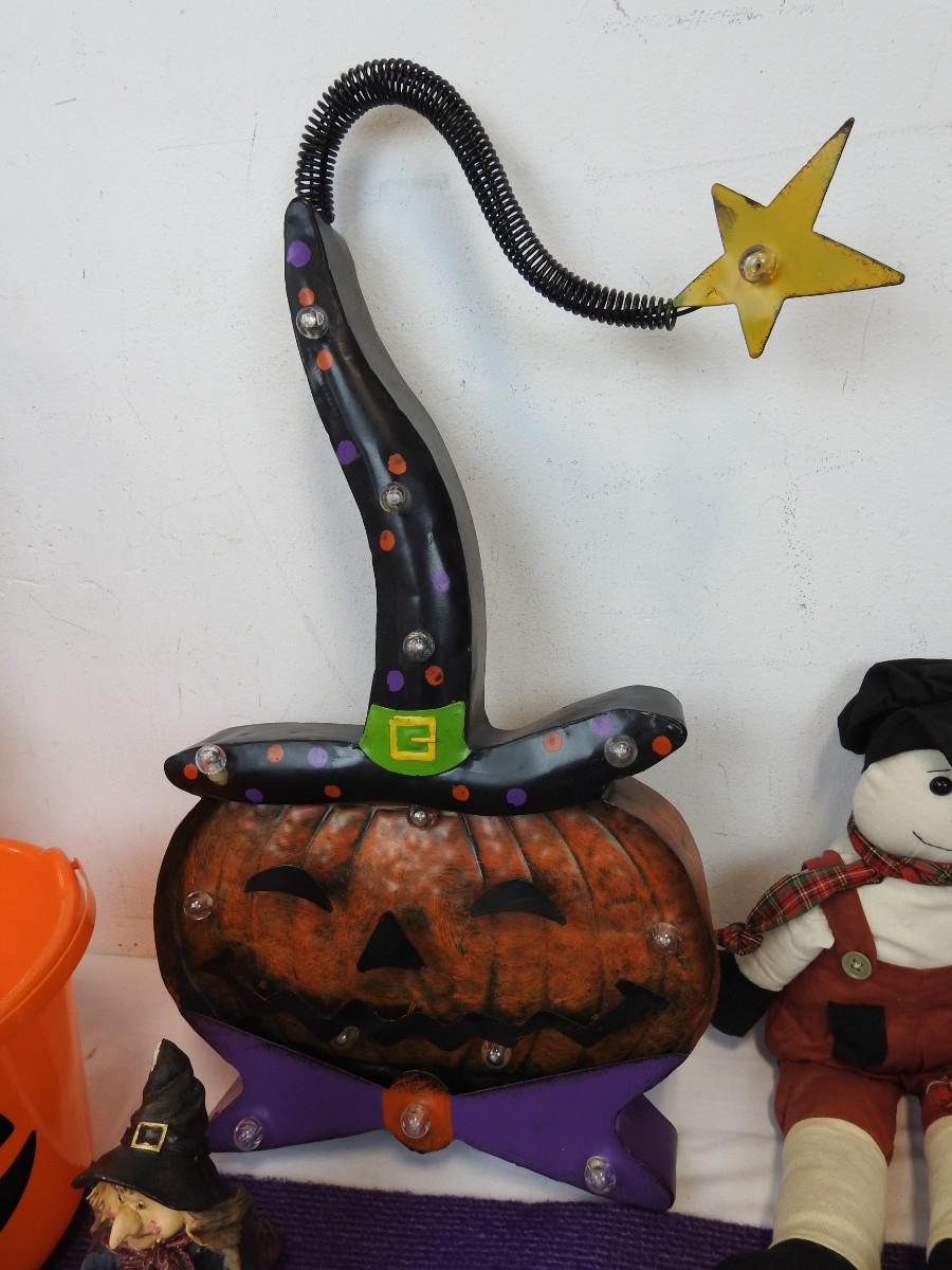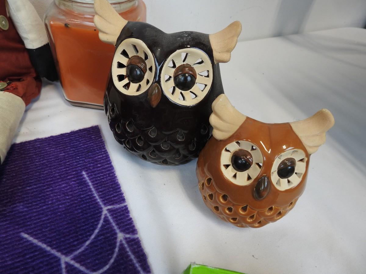 17 pc Fall/Halloween Decor: Buckets, Tablecloth, Wall Decor, Figurines, Owls, Candle
