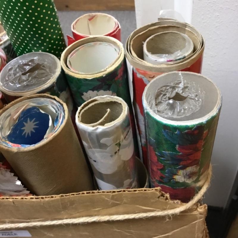 Up for auction is a large a lot of holiday gift wrapping. Most rolls have been opened, however some are brand new. Also included is a Wrapmaster professional handheld paper cutter; see pictures.