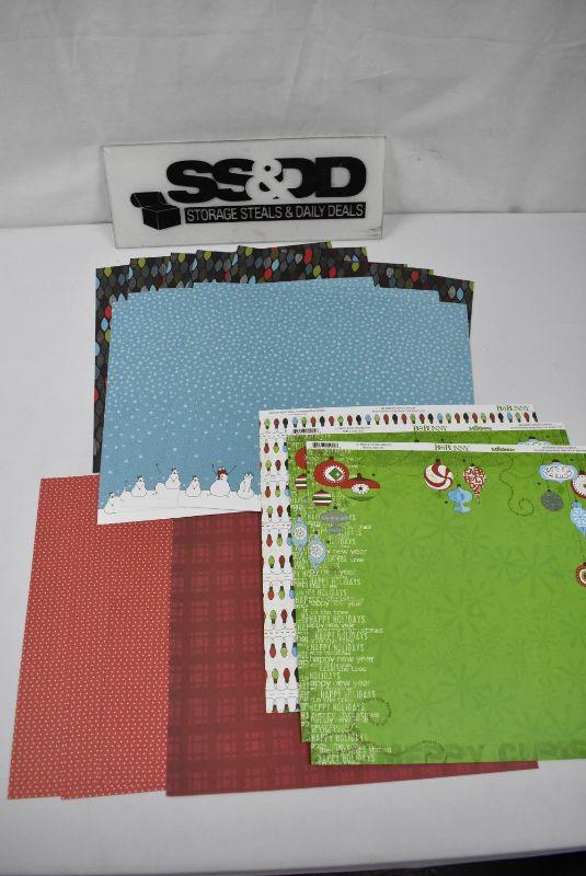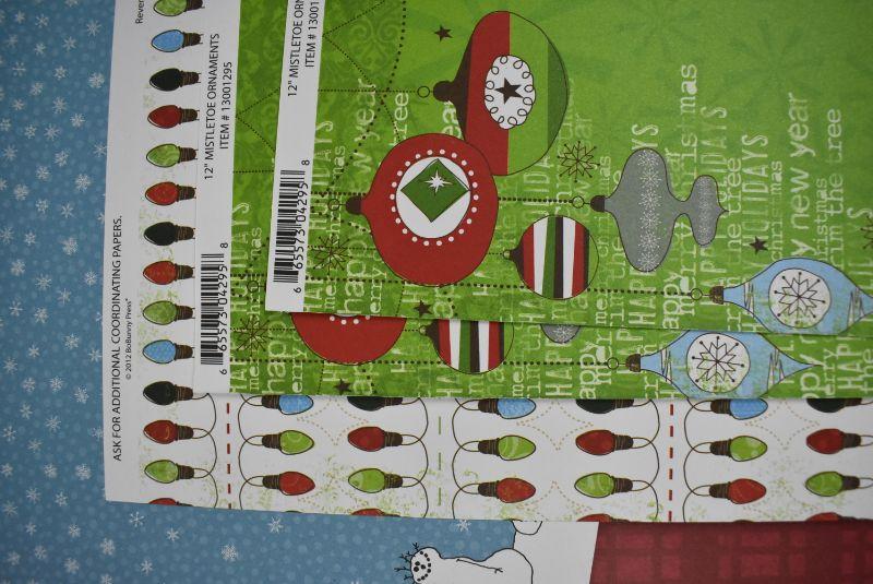 17 Sheets Double Sided Patterned Paper (14 unknown brand) Winter Snowmen etc + 3 Bo Bunny Mistletoe Ornaments 12x12 unused