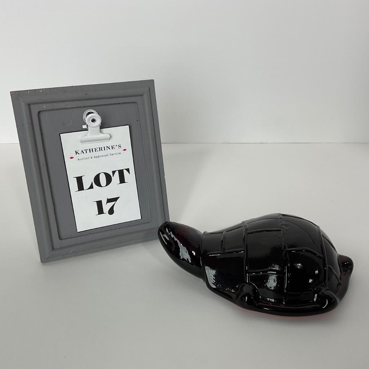 One ruby red turtle art glass paperweight unmarked. 4 inches wide by 6 inches long. This piece has no damage, and appears to be in great shape with no visable chips, cracks, or broken pieces. Please see photos for details and condition. Any condition statement is given as a courtesy to a client, is an opinion, and should not be treated as a statement of fact. Reference to condition written, oral or within a condition report shall not be regarded as a full account of condition and may not include all defects, alterations, or restorations. Absence of a condition report does not imply a lot is flawless or lacking imperfections or damage. Katherine’s Auction & Appraisal Service shall have no responsibility for any error or omission. Returns shall not be accepted on the basis of condition. ::: Shipping is available on this lot. If you require shipping you must let us know at the close of the auction. We will coordinate with you after the item has been won. Shipping fees will include insurance up to or exceeding the value of all items being mailed. If you have any questions regarding this lot please contact the auctioneer either via this website, by direct email or by phone. PICK UP TIMES and other important information can be found in the TERMS and DESCRIPTION of the auction. Please take a look for pertinent information. Thanks!
