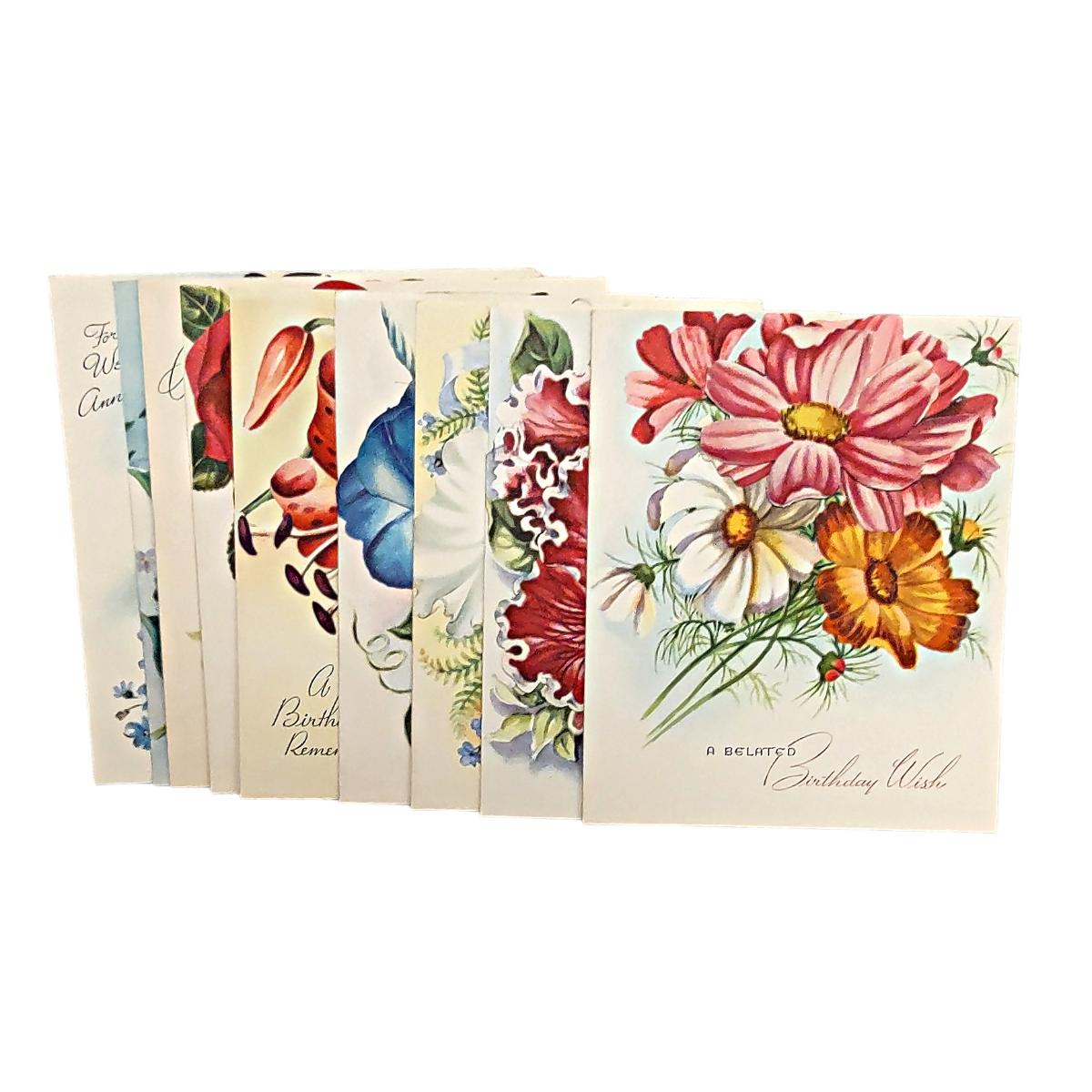 2. Pretty Petals - 9 Cards & 9 Envelopes - 6 Birthday Cards, 1 Congratulations, 1 Anniversary, 1 Get Well - Cards Measure 4.75"W x 5.25"L - Envelopes have some discoloration
