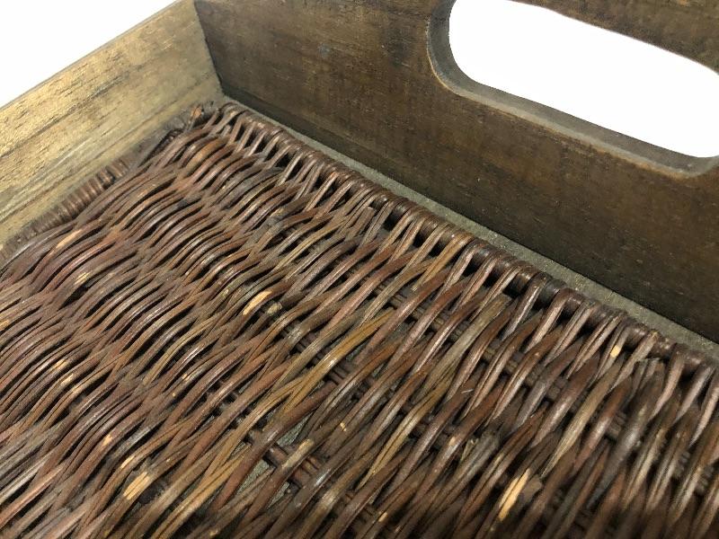 #170 Cute wood and wicker serving tray