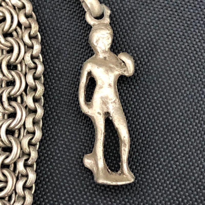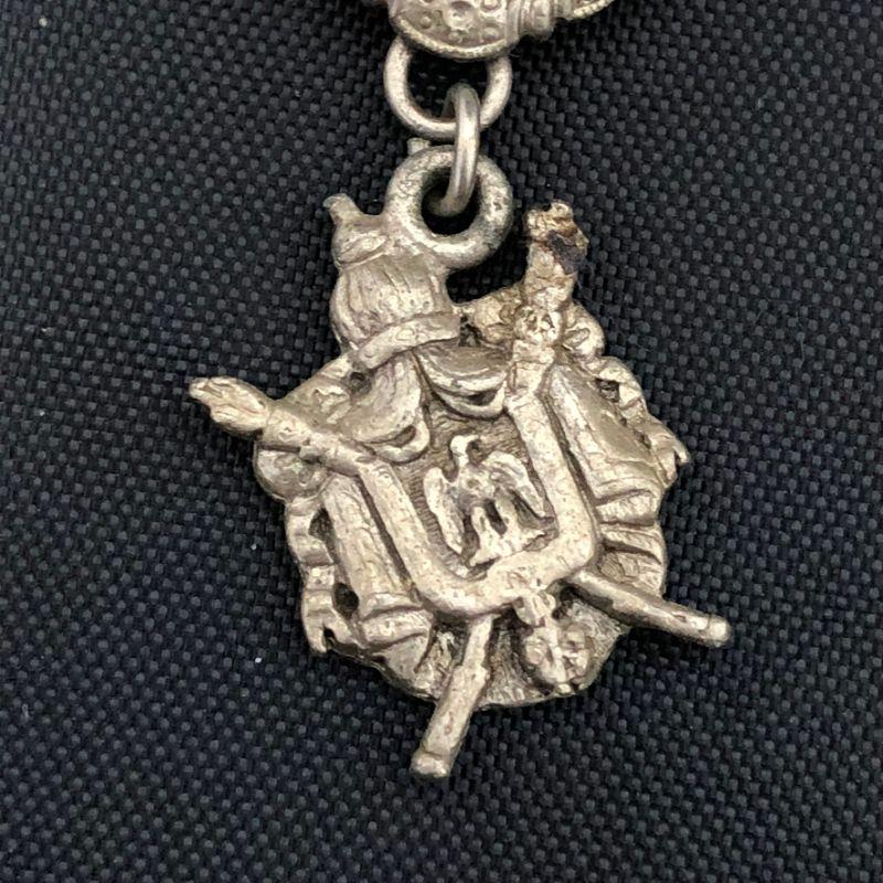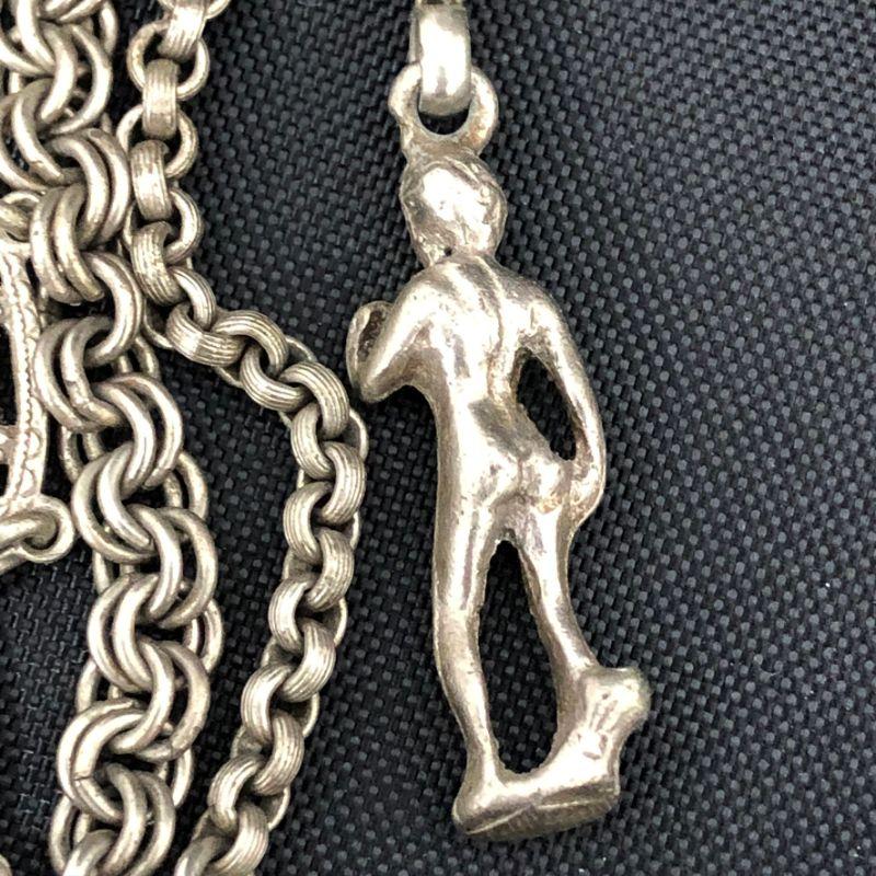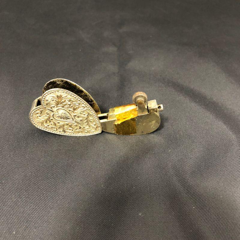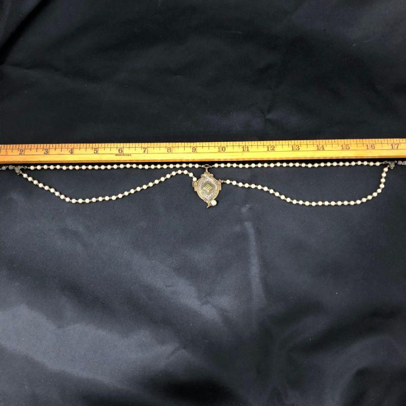 This lot is not to be missed. Herdolic Filgree Brooch with original charms made of German Nickel Silver, Heart-Shaped lighter (needs new flint), Vicorian Double Horseshoe brooch, and Tommassini created-pearl festoon necklace. Antique jewelry at its finest.