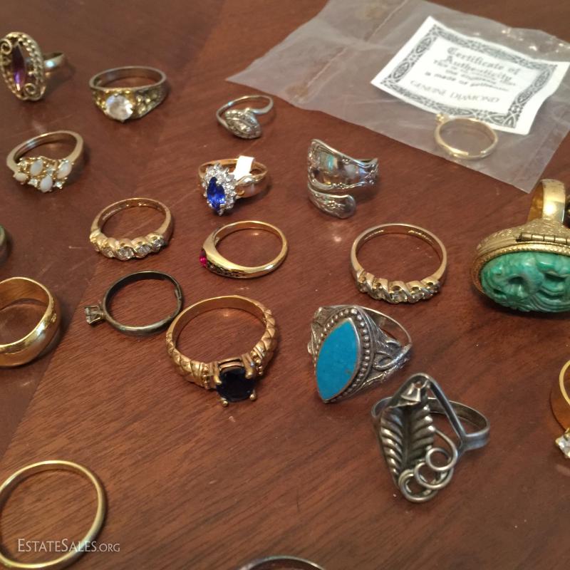 Large lot of women's jewelry. Includes rings and pendants. Turquoise and diamond styles too. See photos for details. Shipping is available for these items or local pick up in Saluda, NC
