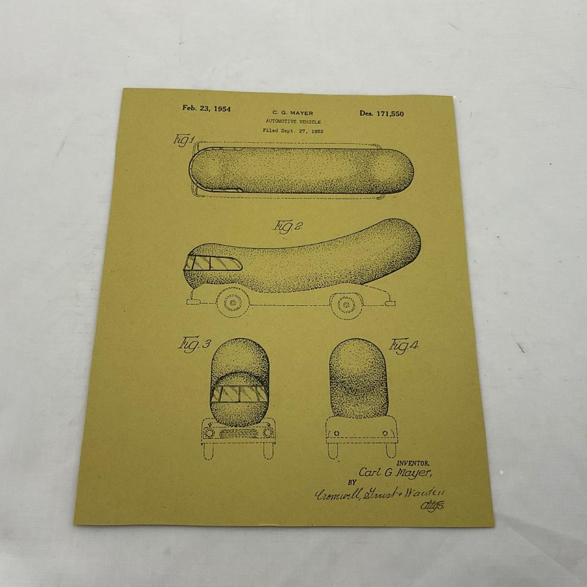 -170- POP CULTURE | Printed Copy of 1950’s Oscar Meyer Weiner Mobil Patent Drawing