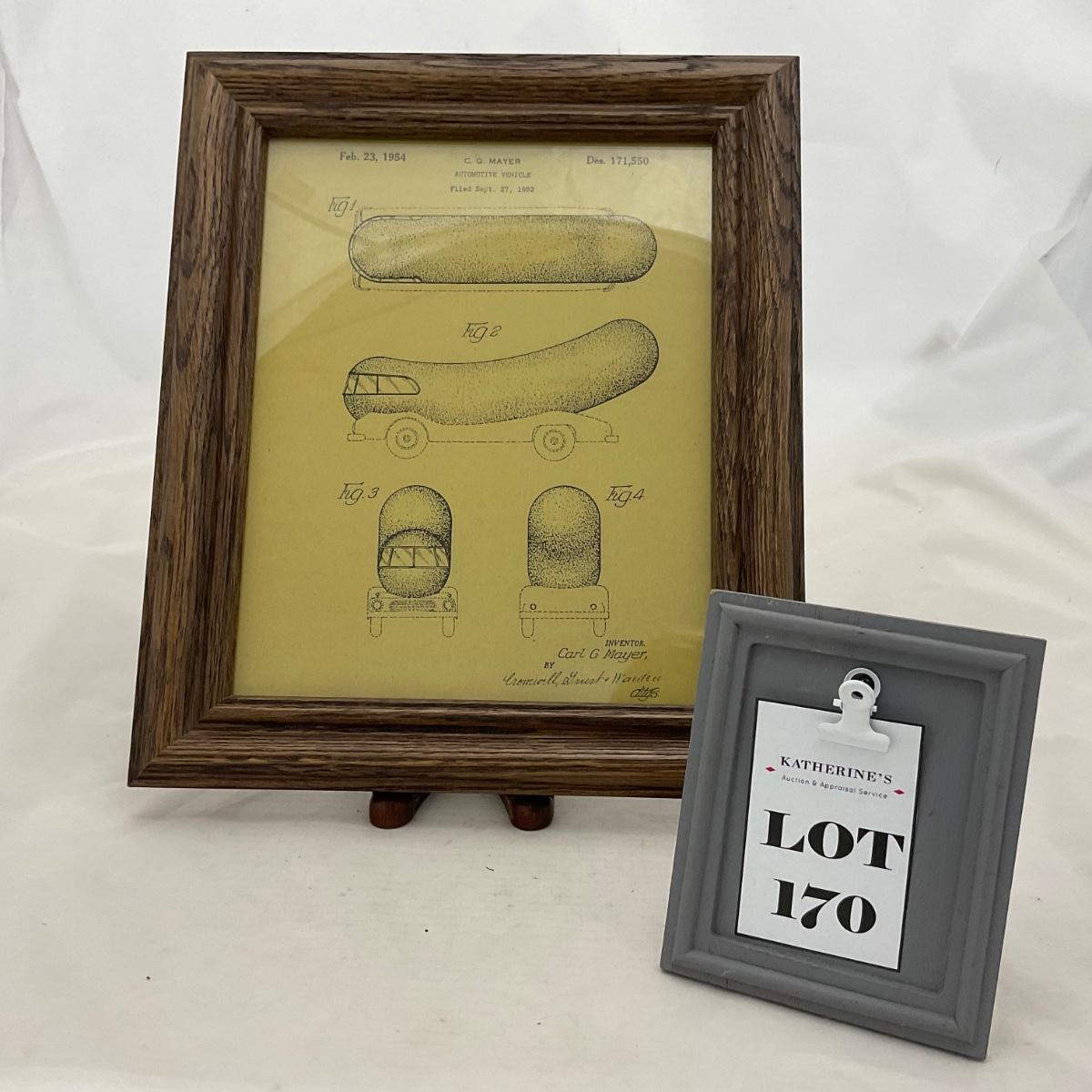 One printed copy of 1950’s Oscar Meyer Weiner Mobil patent drawing. 10.5 inches by 12.5 inches. Please see photos for details and condition. ::: Shipping is available on this lot. If you require shipping you must let us know at the close of the auction. We will coordinate with you after the item has been won. Shipping fees will include insurance up to or exceeding the value of all items being mailed. If you have any questions regarding this lot please contact the auctioneer either via this website, by direct email or by phone. PICK UP TIMES and other important information can be found in the TERMS and DESCRIPTION of the auction. Please take a look for pertinent information. Thanks!
