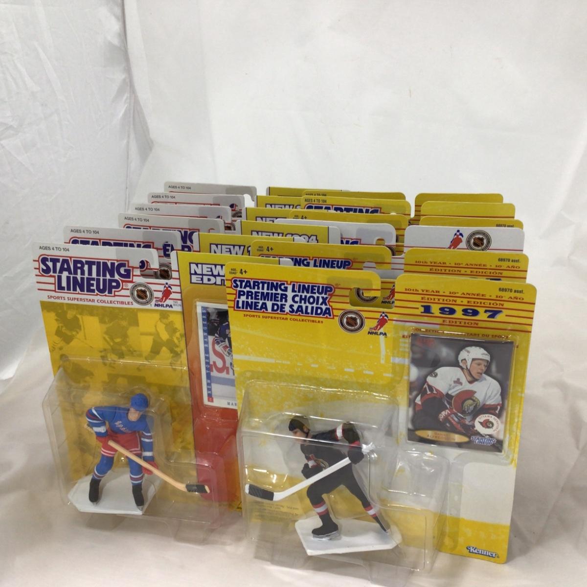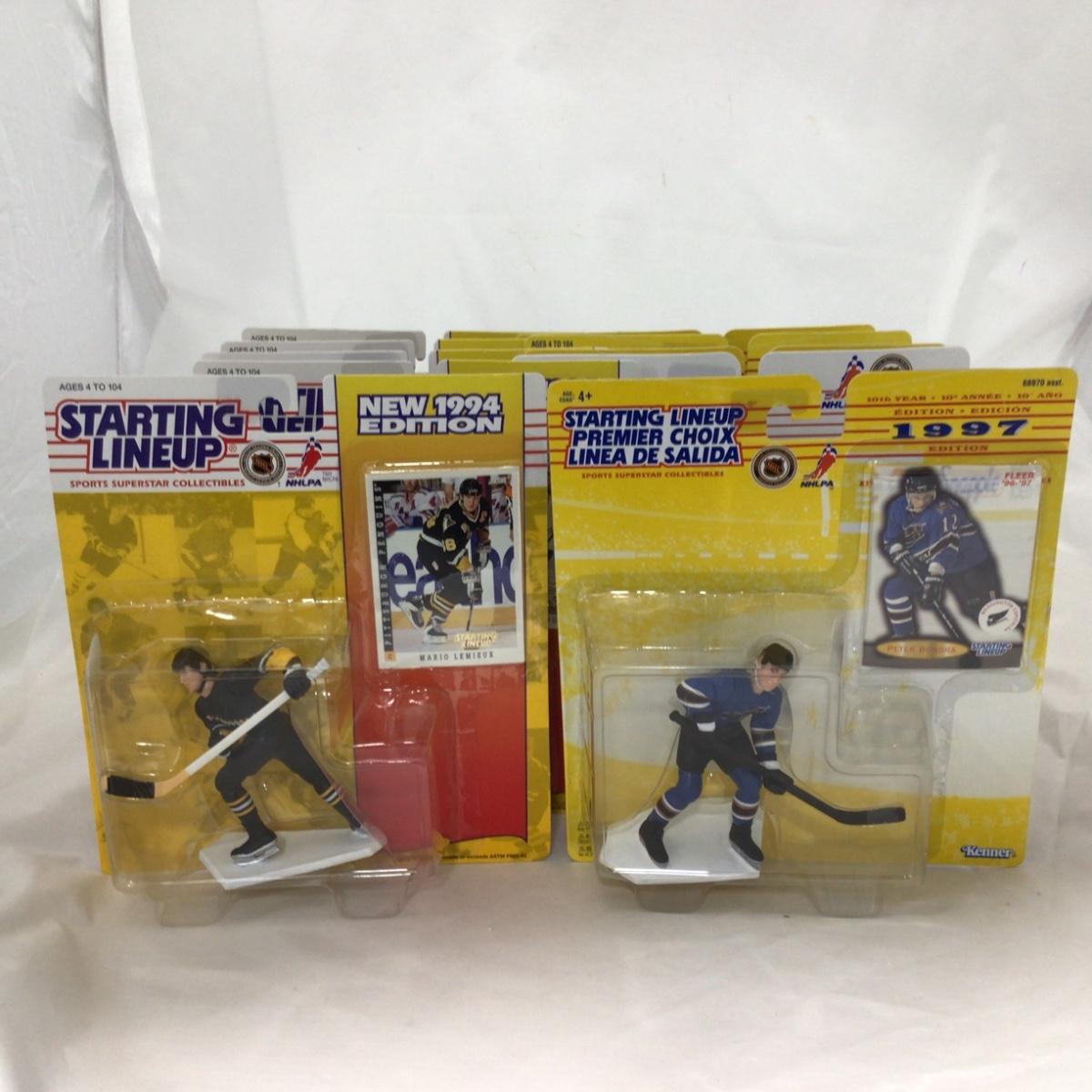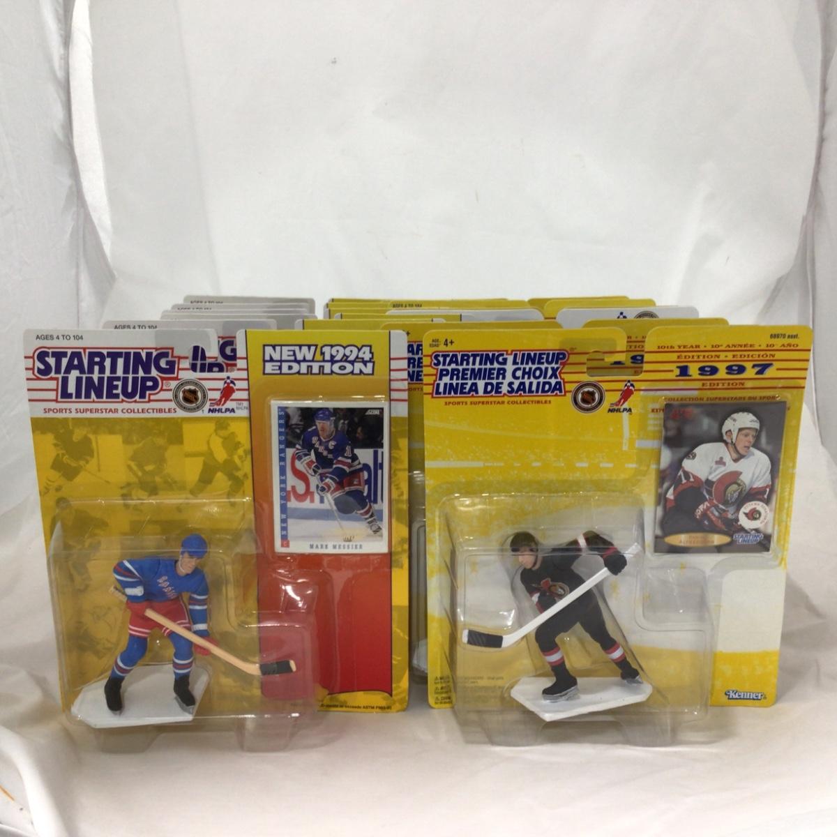 12 Starting lineup hockey figures. Please see photos for details and condition. ::: Shipping is available on this lot. If you require shipping you must let us know at the close of the auction. We will coordinate with you after the item has been won. Shipping fees will include insurance up to or exceeding the value of all items being mailed. If you have any questions regarding this lot please contact the auctioneer either via this website, by direct email or by phone. PICK UP TIMES and other important information can be found in the TERMS and DESCRIPTION of the auction. Please take a look for pertinent information. Thanks!