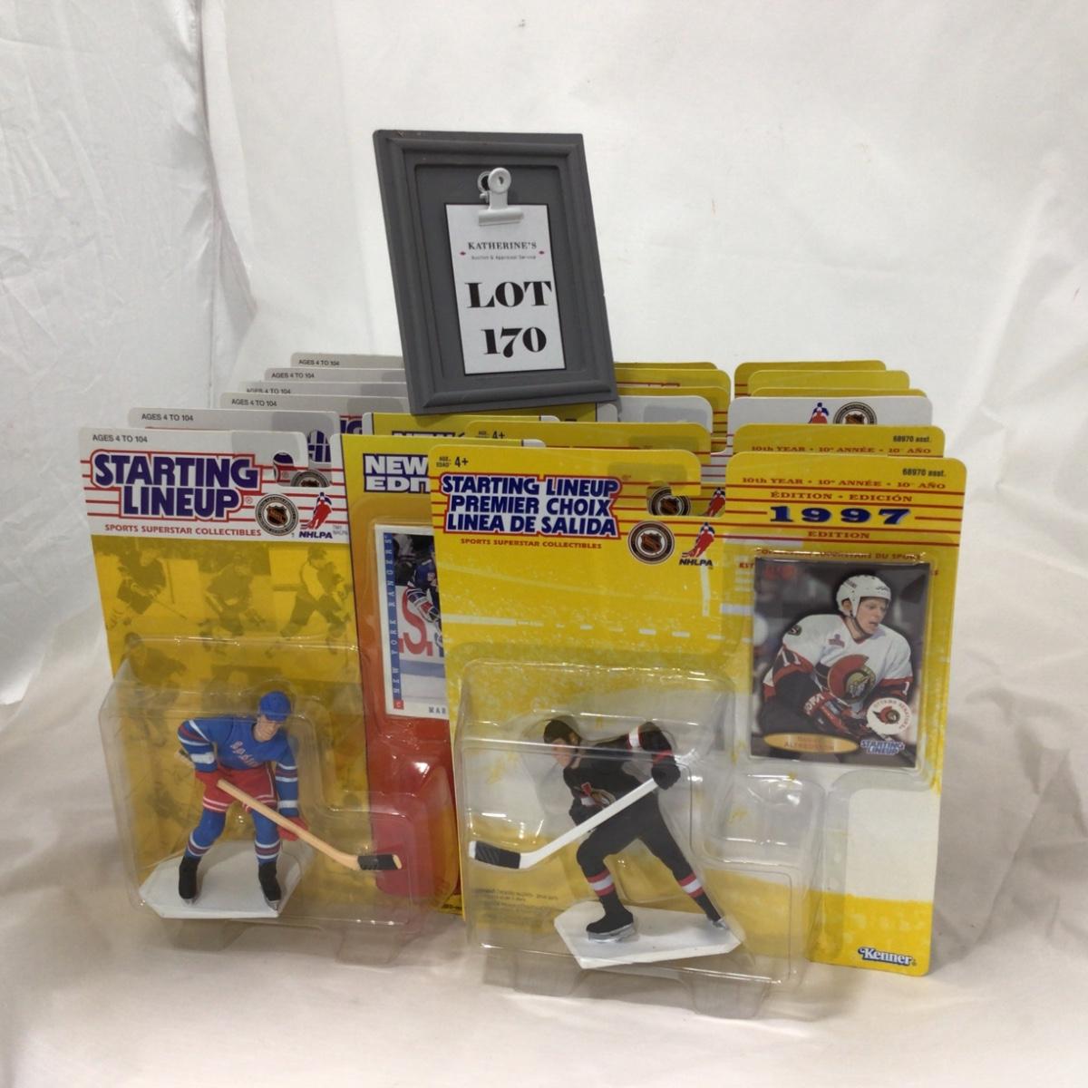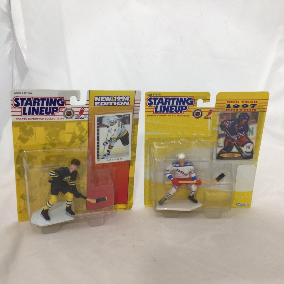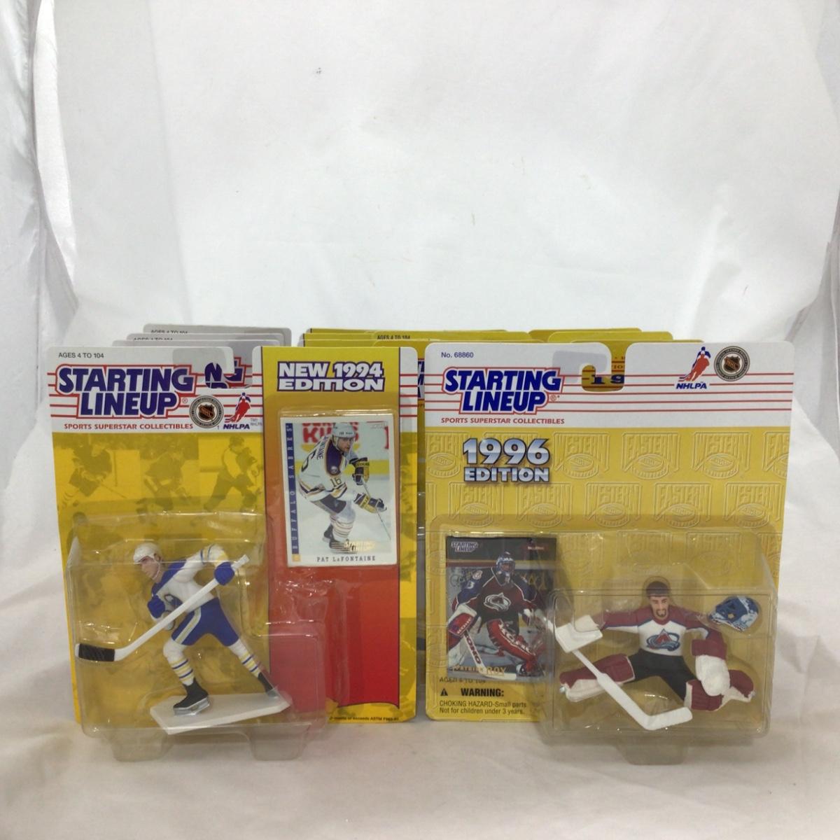 12 Starting lineup hockey figures. Please see photos for details and condition. ::: Shipping is available on this lot. If you require shipping you must let us know at the close of the auction. We will coordinate with you after the item has been won. Shipping fees will include insurance up to or exceeding the value of all items being mailed. If you have any questions regarding this lot please contact the auctioneer either via this website, by direct email or by phone. PICK UP TIMES and other important information can be found in the TERMS and DESCRIPTION of the auction. Please take a look for pertinent information. Thanks!