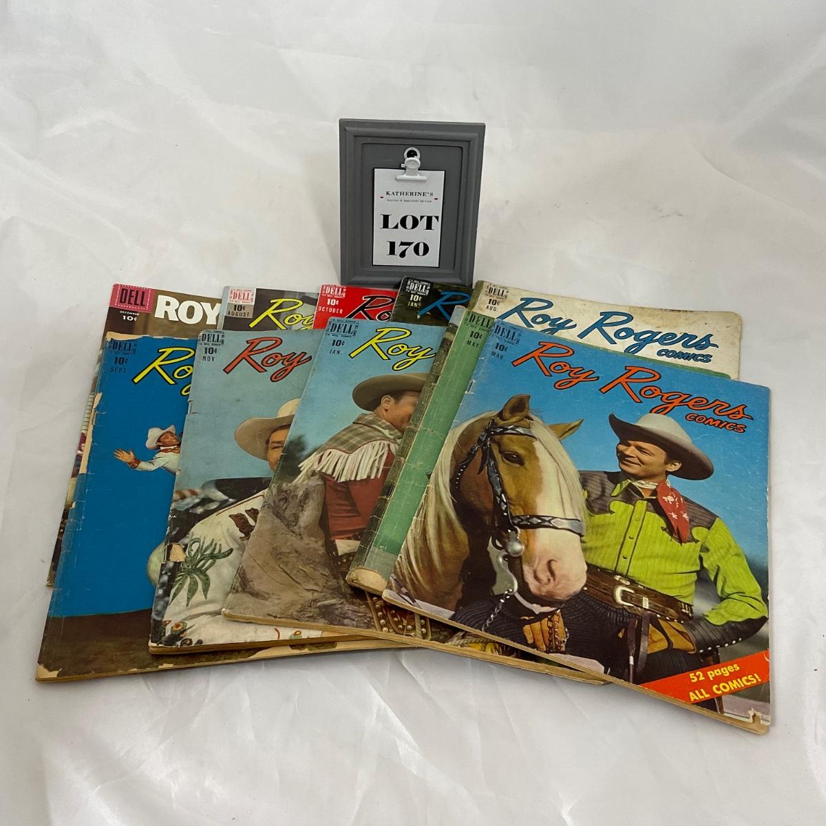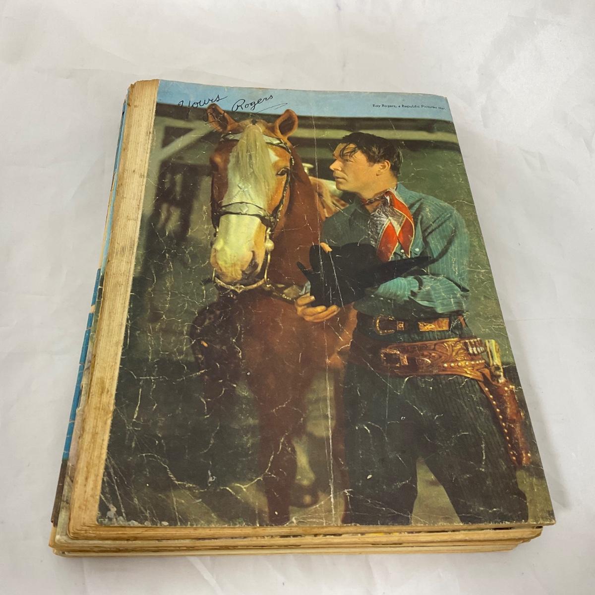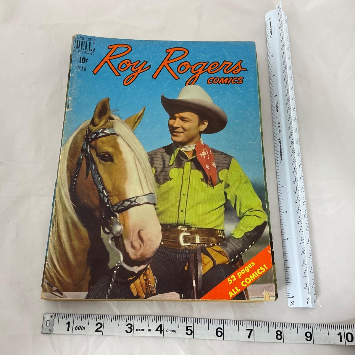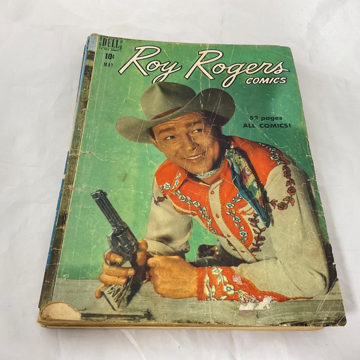 Ten vintage Roy Rogers comics in well loved condition. Please see photos for details and condition. ::: Shipping is available on this lot. If you require shipping you must let us know at the close of the auction. We will coordinate with you after the item has been won. Shipping fees will include insurance up to or exceeding the value of all items being mailed. If you have any questions regarding this lot please contact the auctioneer either via this website, by direct email or by phone. PICK UP TIMES and other important information can be found in the TERMS and DESCRIPTION of the auction. Please take a look for pertinent information. Thanks!