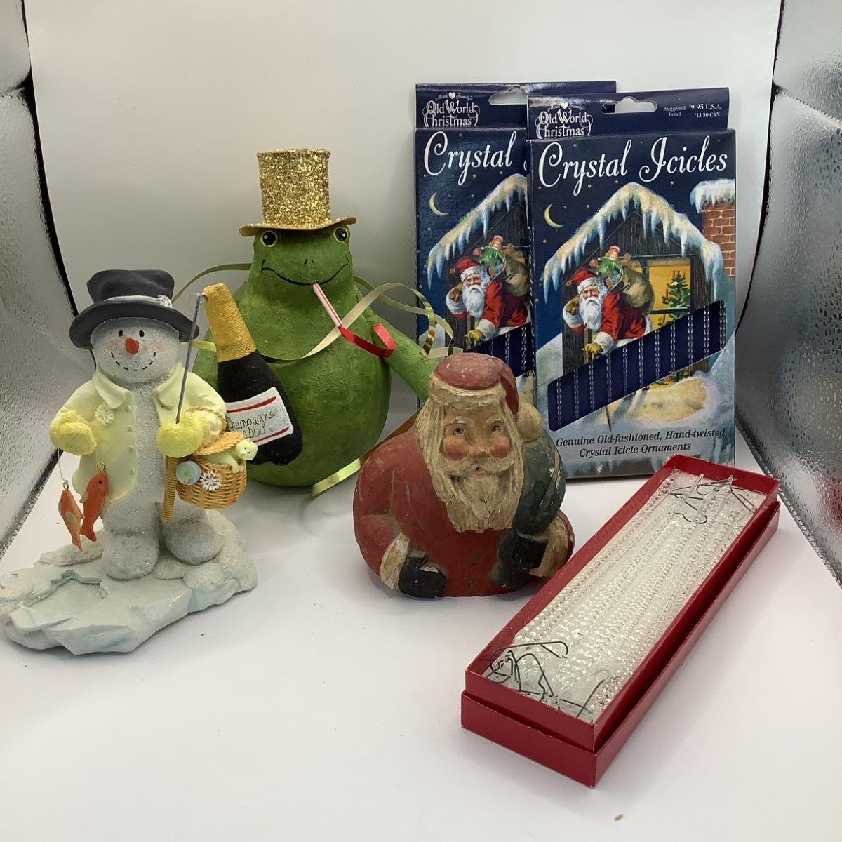 1706 Lot of Misc Crystal Icicles, Frog, Snowman Decor