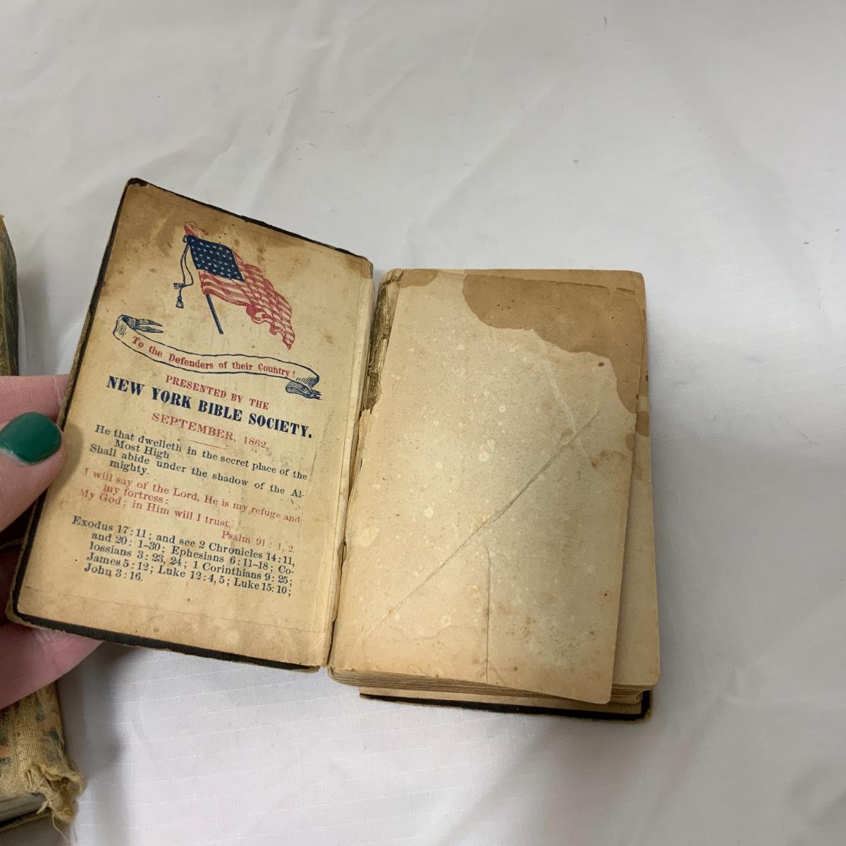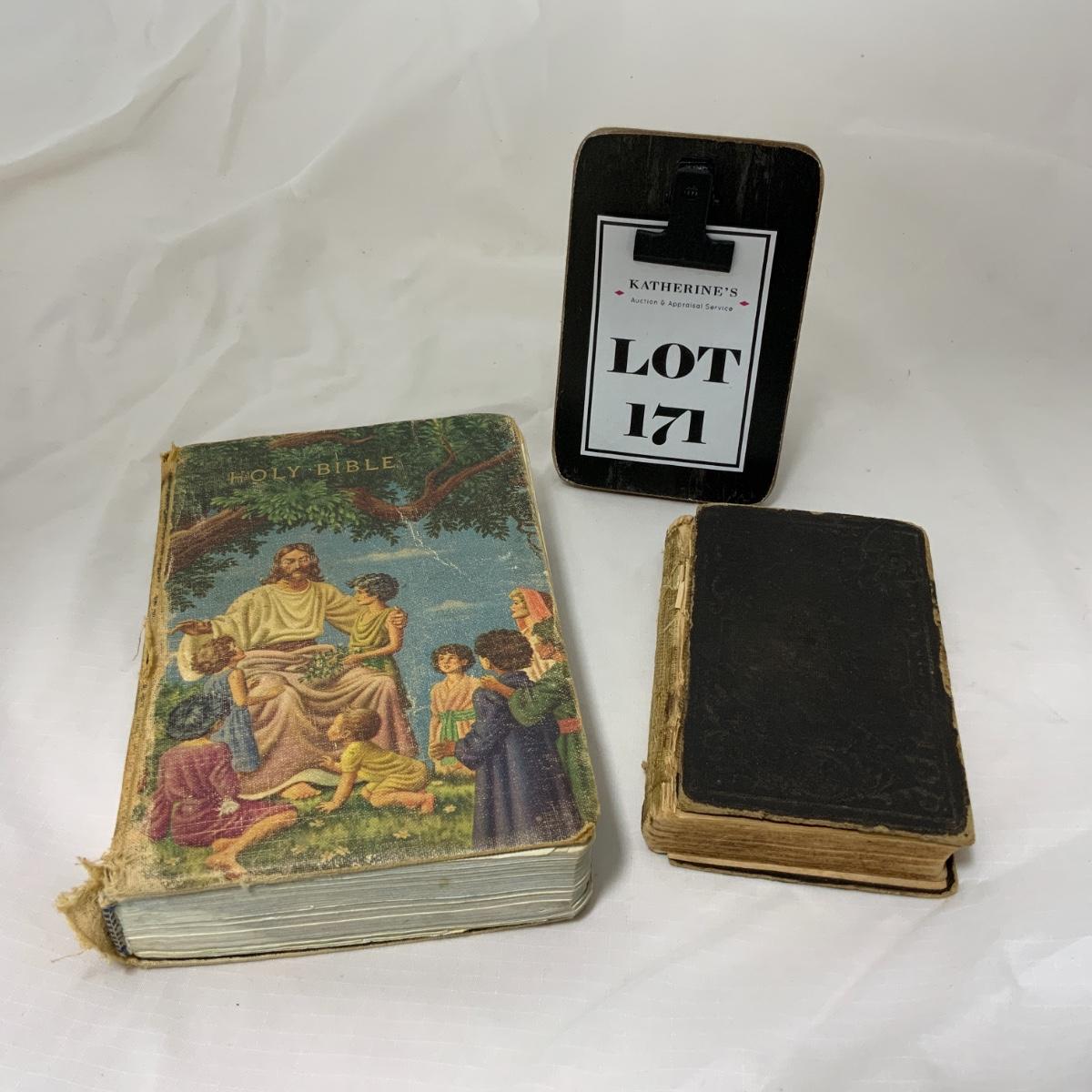 From the Estate of Peter Radovanovich: Two Antique Bibles. Both are in poor condition, but would be a nice addition to a antique Christianity collection. Please see photos for details and condition. ::: Shipping is available on this lot. If you require shipping you must let us know at the close of the auction. We will coordinate with you after the item has been won. Shipping fees will include insurance up to or exceeding the value of all items being mailed. If you have any questions regarding this lot please contact the auctioneer either via this website, by direct email or by phone. PICK UP TIMES and other important information can be found in the TERMS and DESCRIPTION of the auction. Please take a look for pertinent information. Thanks!