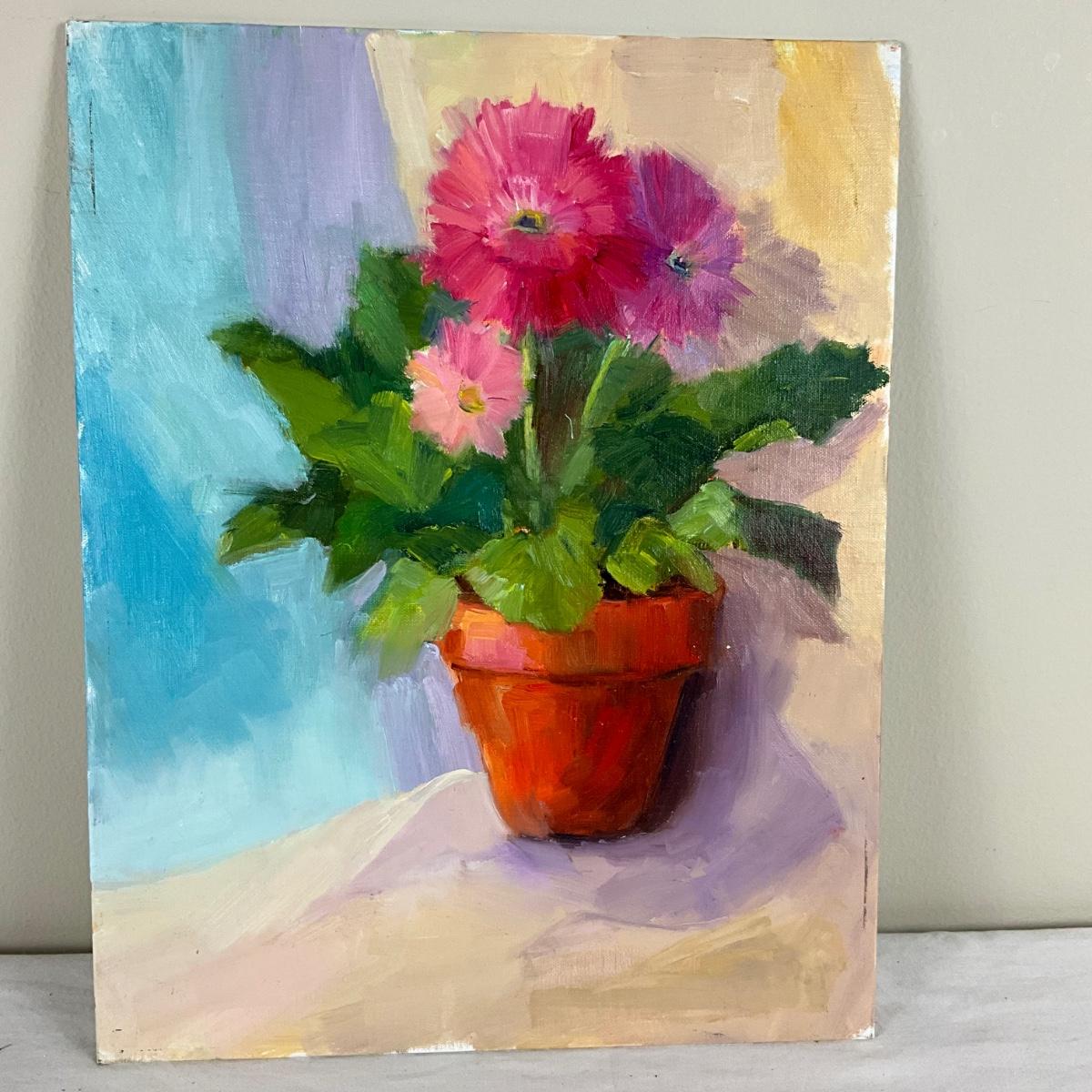 171 Original Oil Painting "Gerber Daisy Pot" by Kathie Rogers