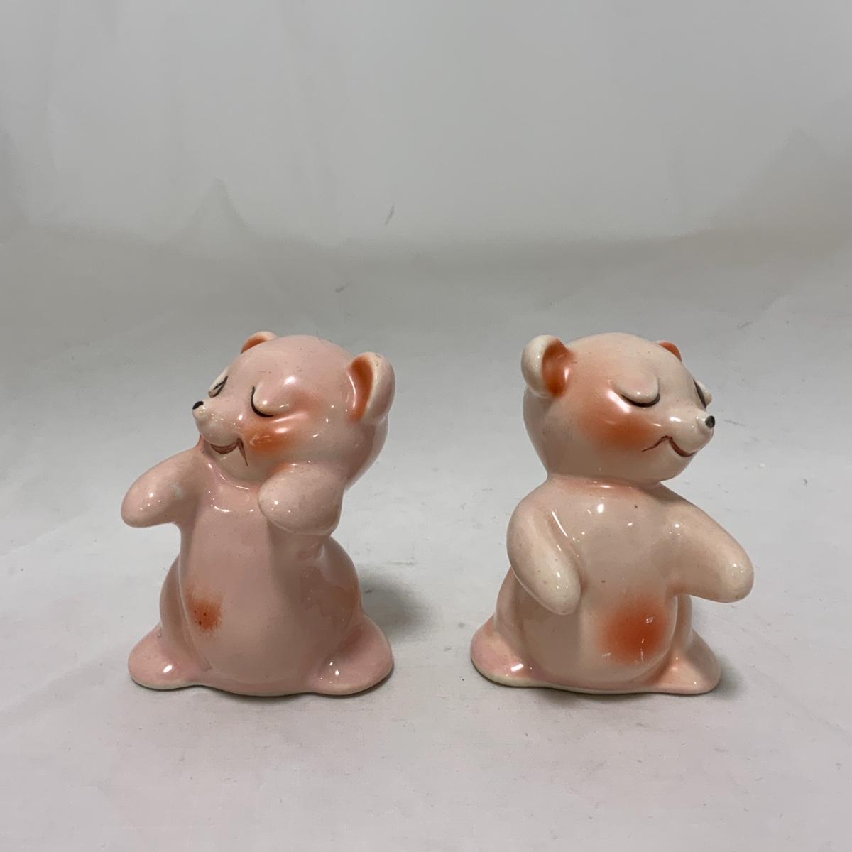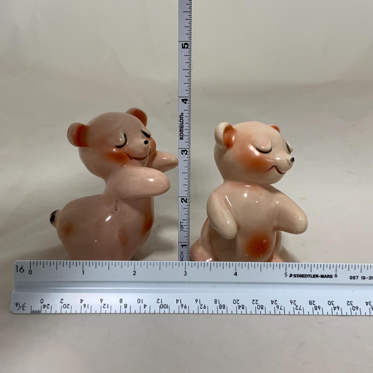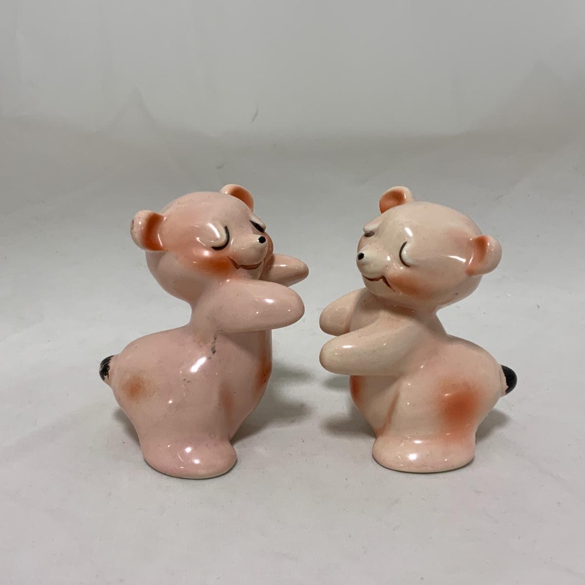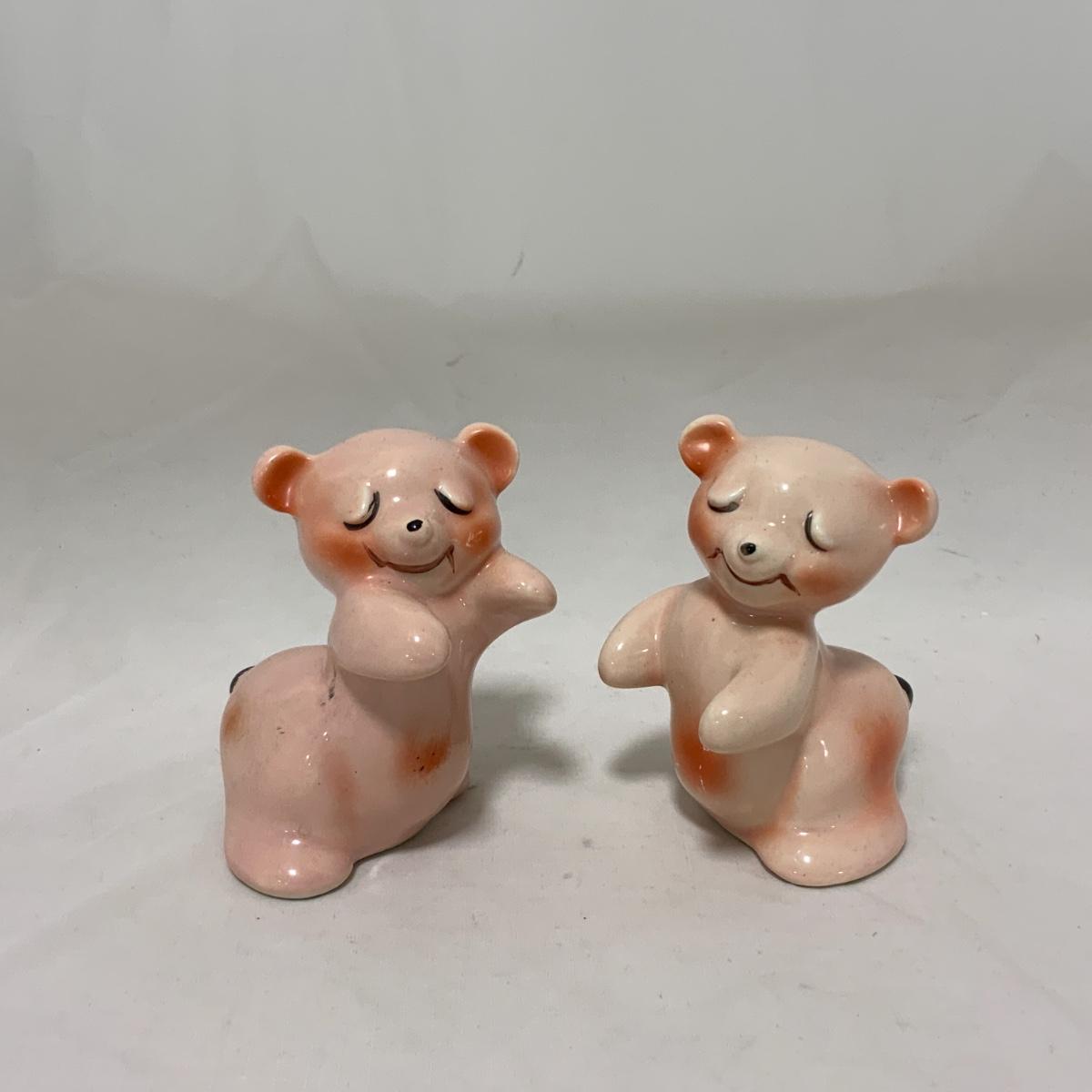 From the Estate of Peter and Alice Radovanovich: Adorable Peachy colored set of Van Tellingen Bear Huggies from the 1950s. Both pieces are in exceptional vintage condition. Please see photos for details and condition. ::: Shipping is available on this lot. If you require shipping you must let us know at the close of the auction. We will coordinate with you after the item has been won. Shipping fees will include insurance up to or exceeding the value of all items being mailed. If you have any questions regarding this lot please contact the auctioneer either via this website, by direct email or by phone. PICK UP TIMES and other important information can be found in the TERMS and DESCRIPTION of the auction. Please take a look for pertinent information. Thanks!