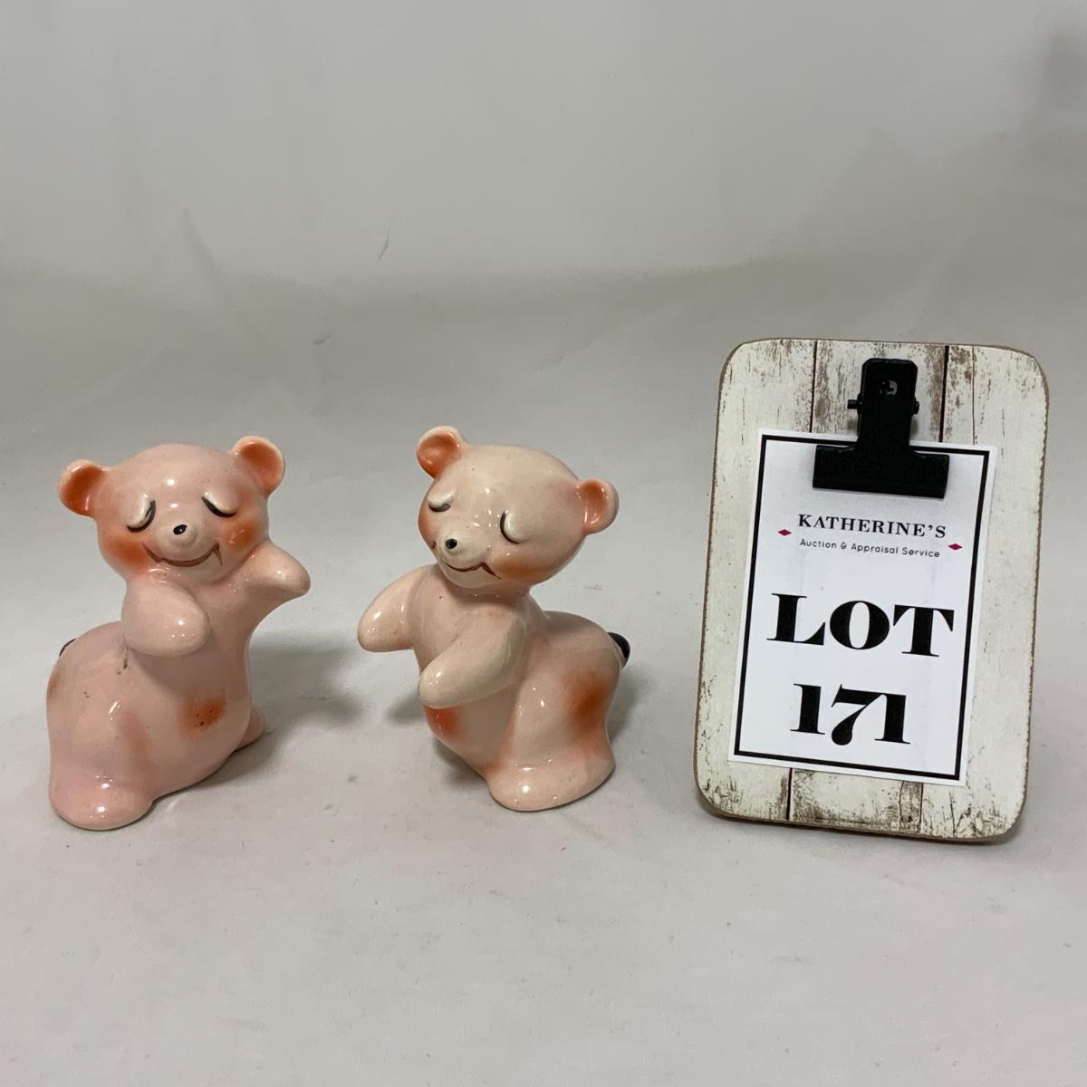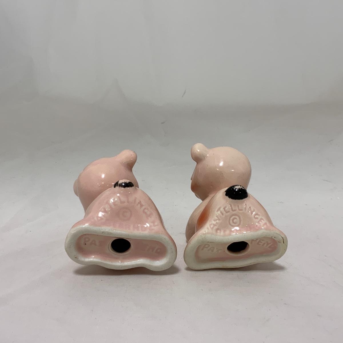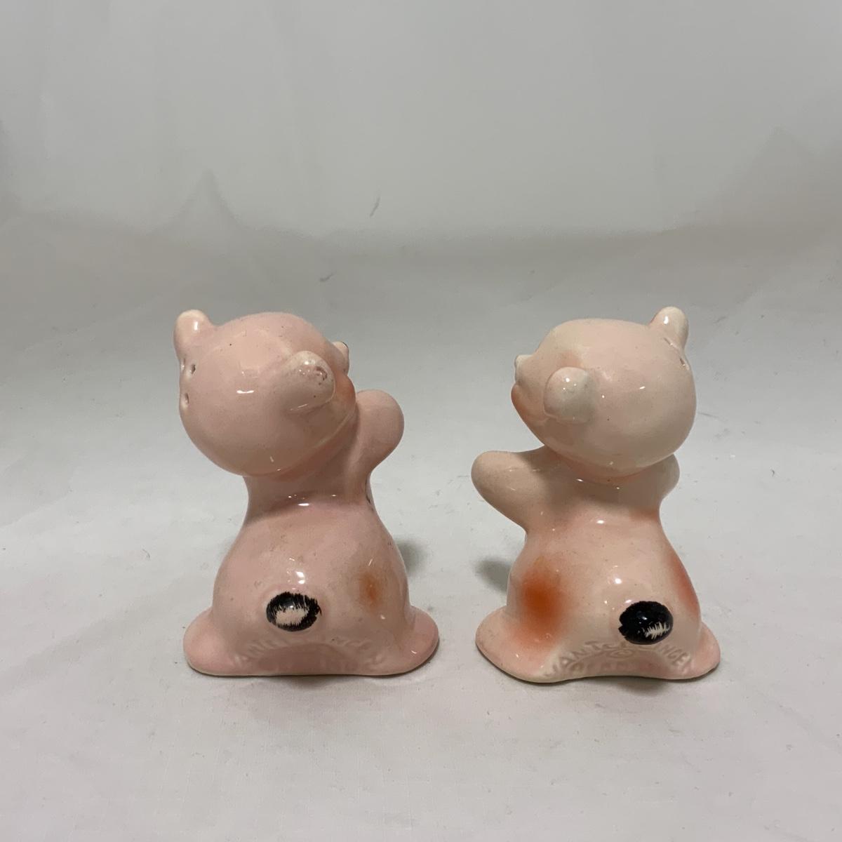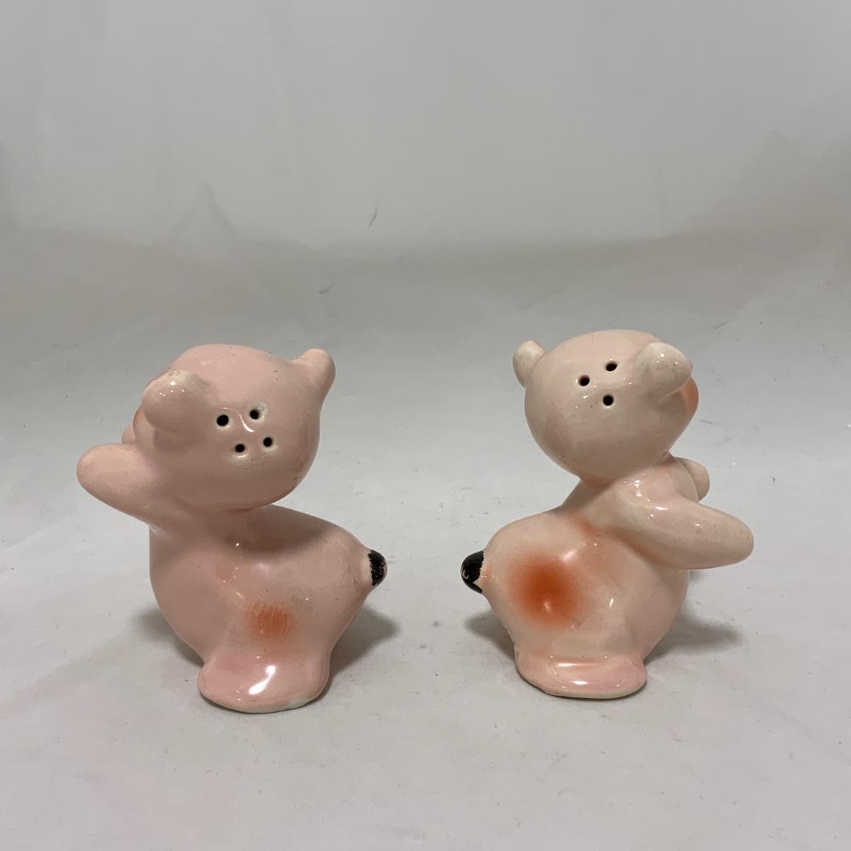 From the Estate of Peter and Alice Radovanovich: Adorable Peachy colored set of Van Tellingen Bear Huggies from the 1950s. Both pieces are in exceptional vintage condition. Please see photos for details and condition. ::: Shipping is available on this lot. If you require shipping you must let us know at the close of the auction. We will coordinate with you after the item has been won. Shipping fees will include insurance up to or exceeding the value of all items being mailed. If you have any questions regarding this lot please contact the auctioneer either via this website, by direct email or by phone. PICK UP TIMES and other important information can be found in the TERMS and DESCRIPTION of the auction. Please take a look for pertinent information. Thanks!