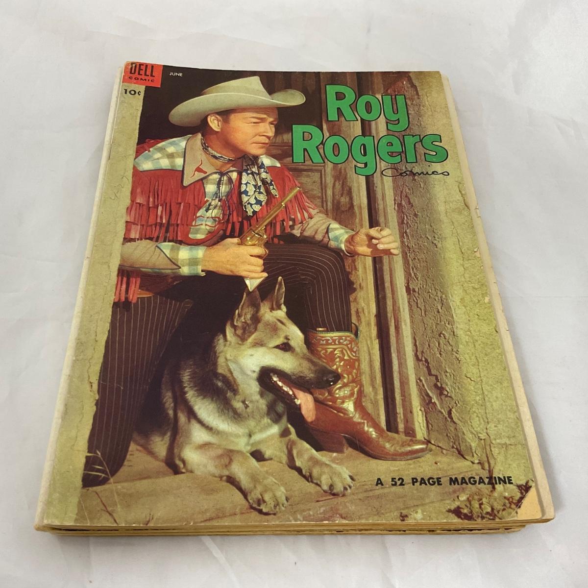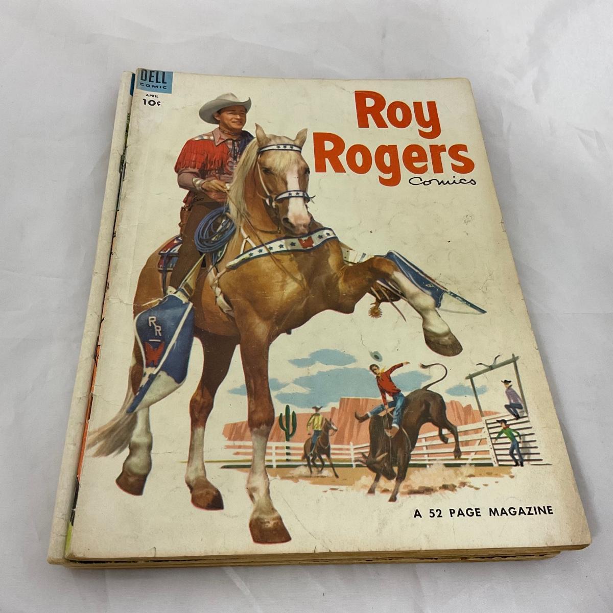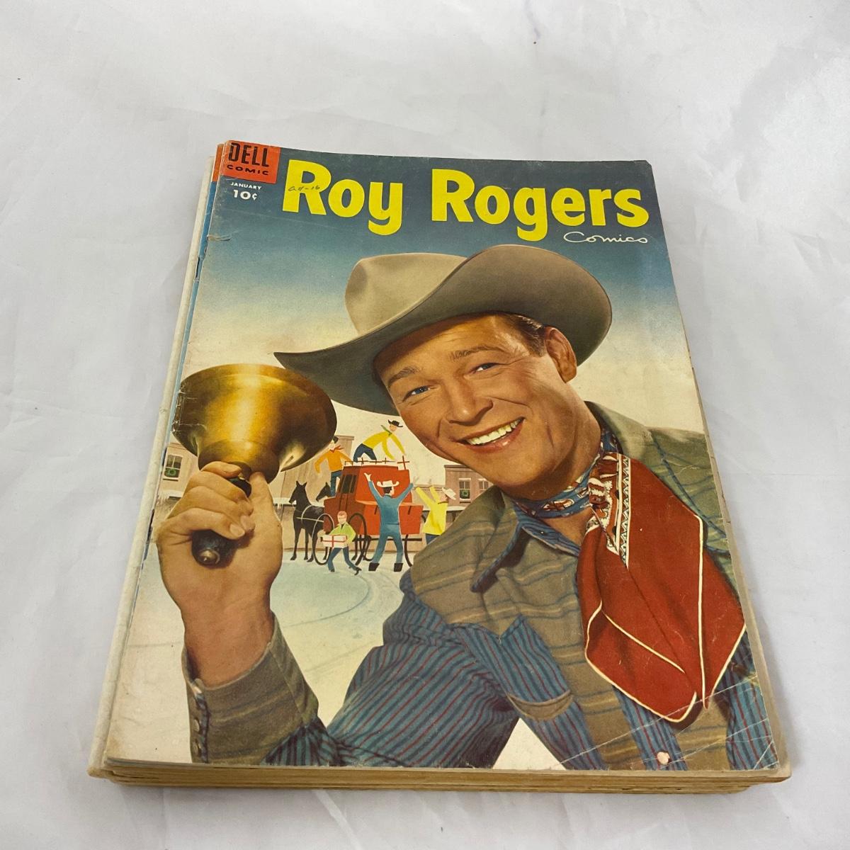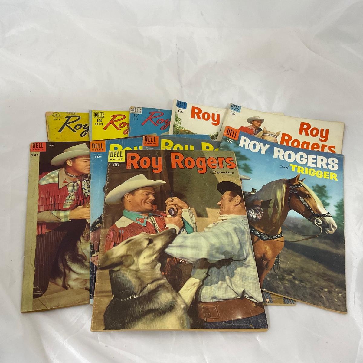 Ten vintage Roy Rogers comics in well loved condition. Please see photos for details and condition. ::: Shipping is available on this lot. If you require shipping you must let us know at the close of the auction. We will coordinate with you after the item has been won. Shipping fees will include insurance up to or exceeding the value of all items being mailed. If you have any questions regarding this lot please contact the auctioneer either via this website, by direct email or by phone. PICK UP TIMES and other important information can be found in the TERMS and DESCRIPTION of the auction. Please take a look for pertinent information. Thanks!