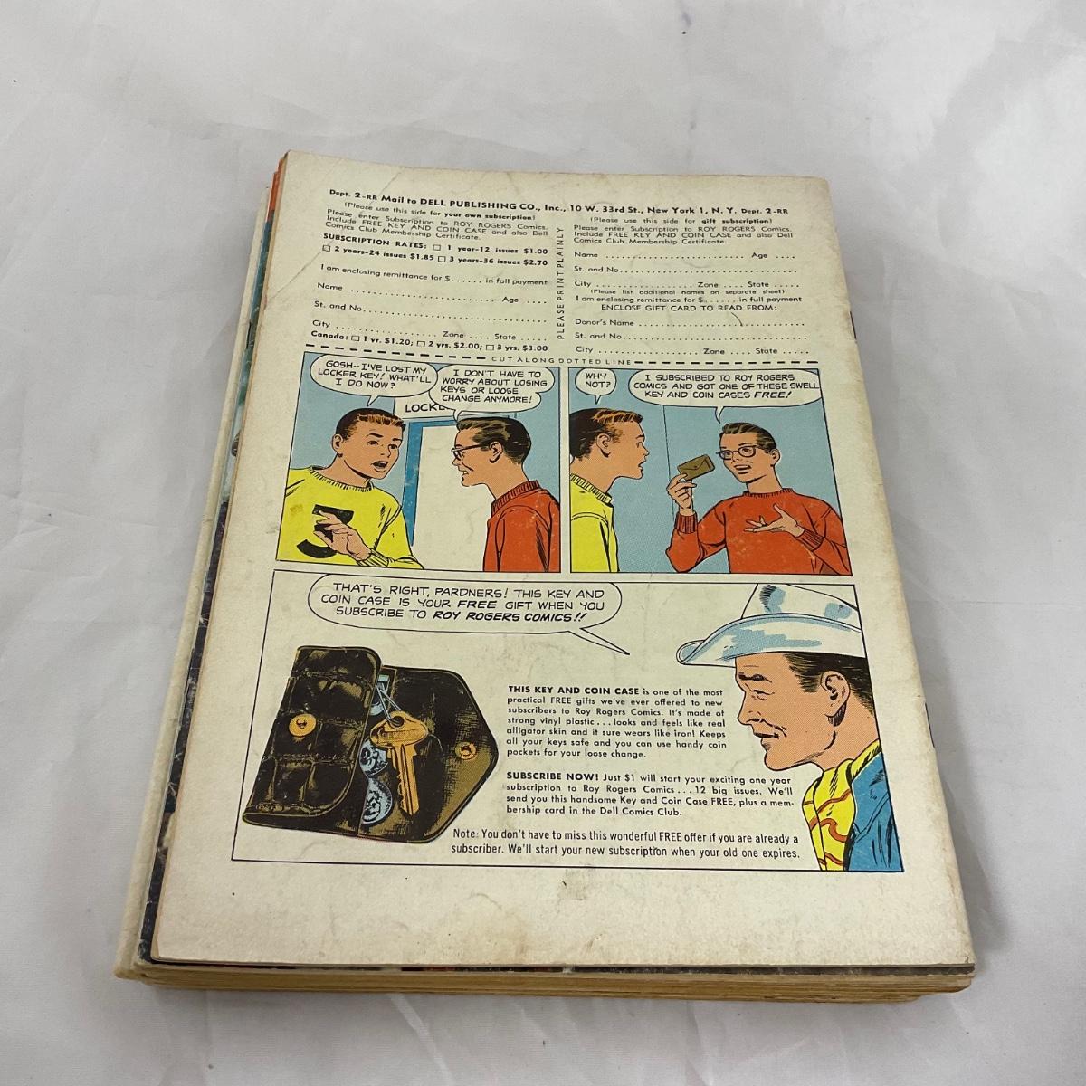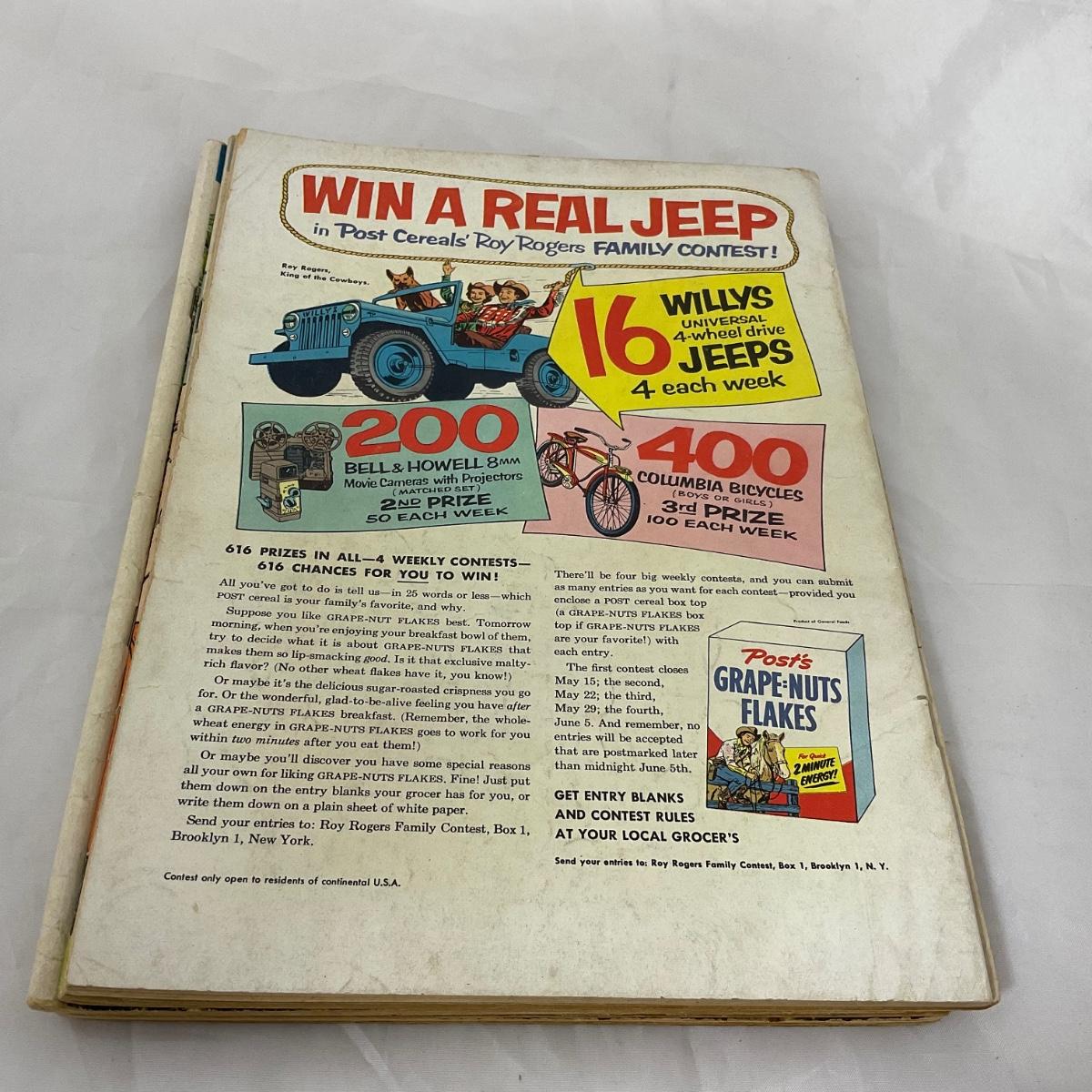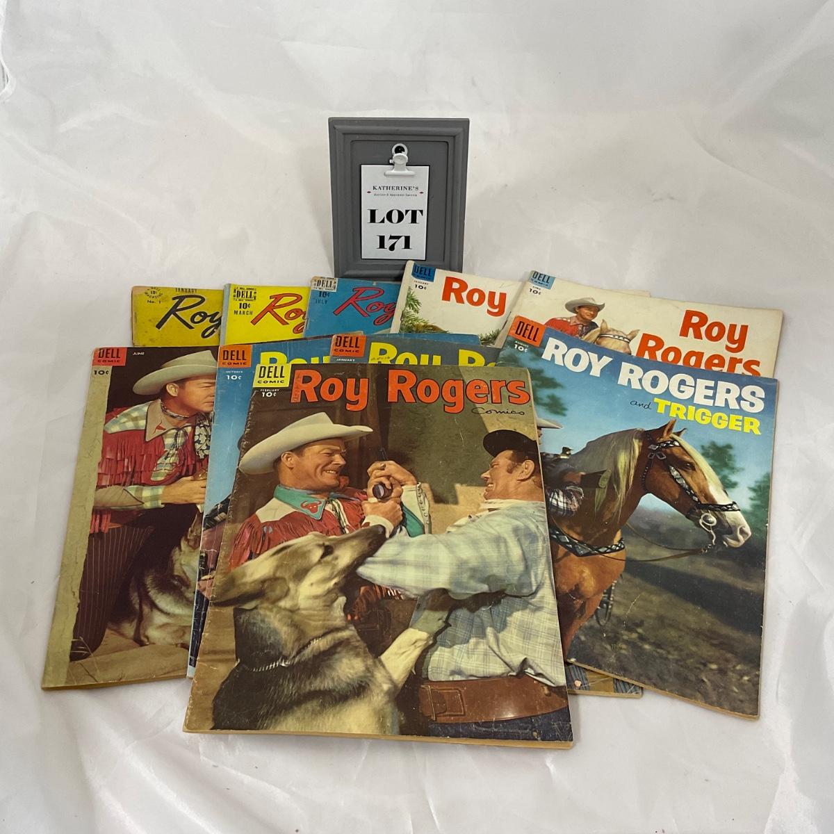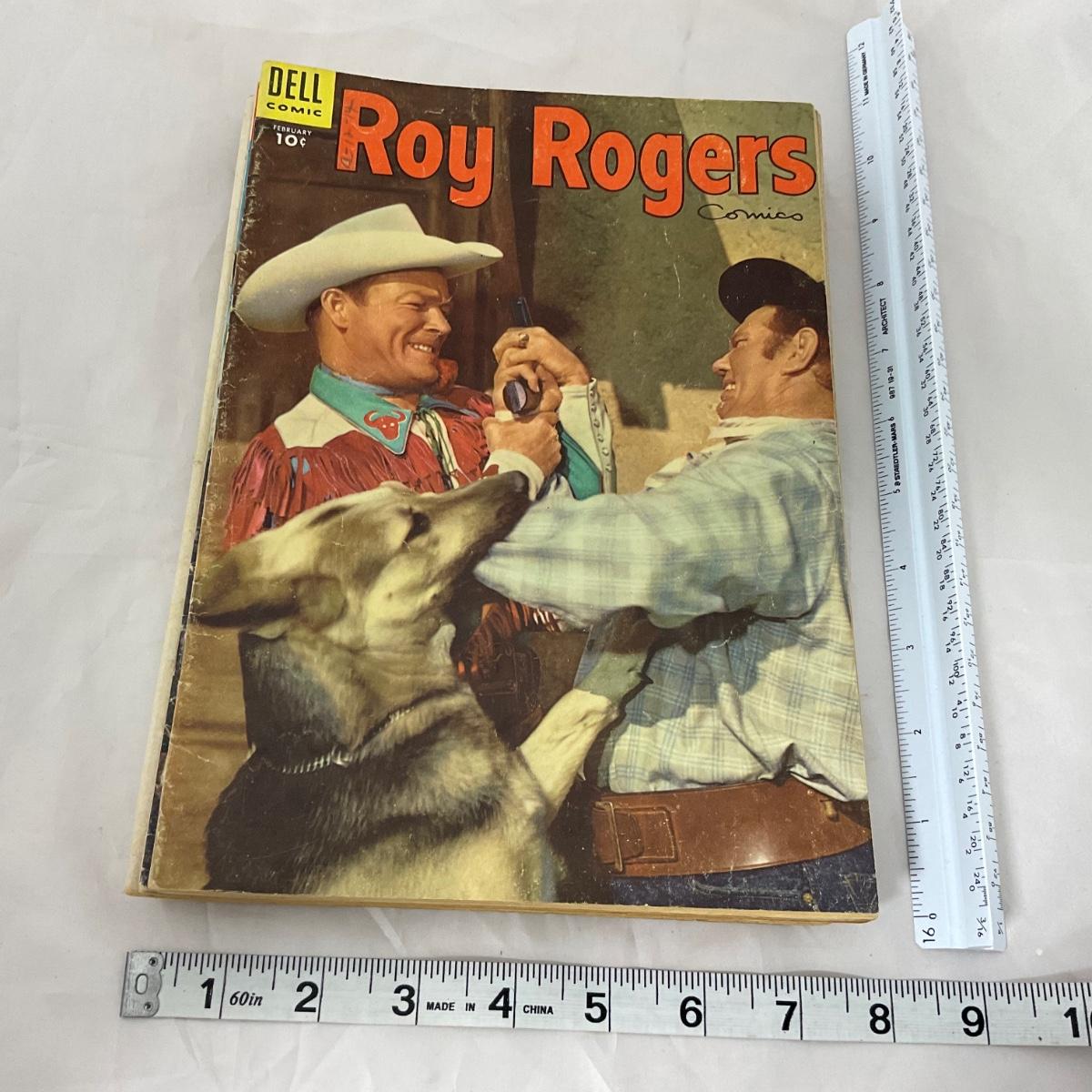 Ten vintage Roy Rogers comics in well loved condition. Please see photos for details and condition. ::: Shipping is available on this lot. If you require shipping you must let us know at the close of the auction. We will coordinate with you after the item has been won. Shipping fees will include insurance up to or exceeding the value of all items being mailed. If you have any questions regarding this lot please contact the auctioneer either via this website, by direct email or by phone. PICK UP TIMES and other important information can be found in the TERMS and DESCRIPTION of the auction. Please take a look for pertinent information. Thanks!