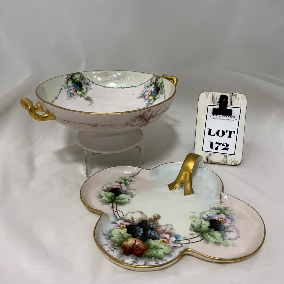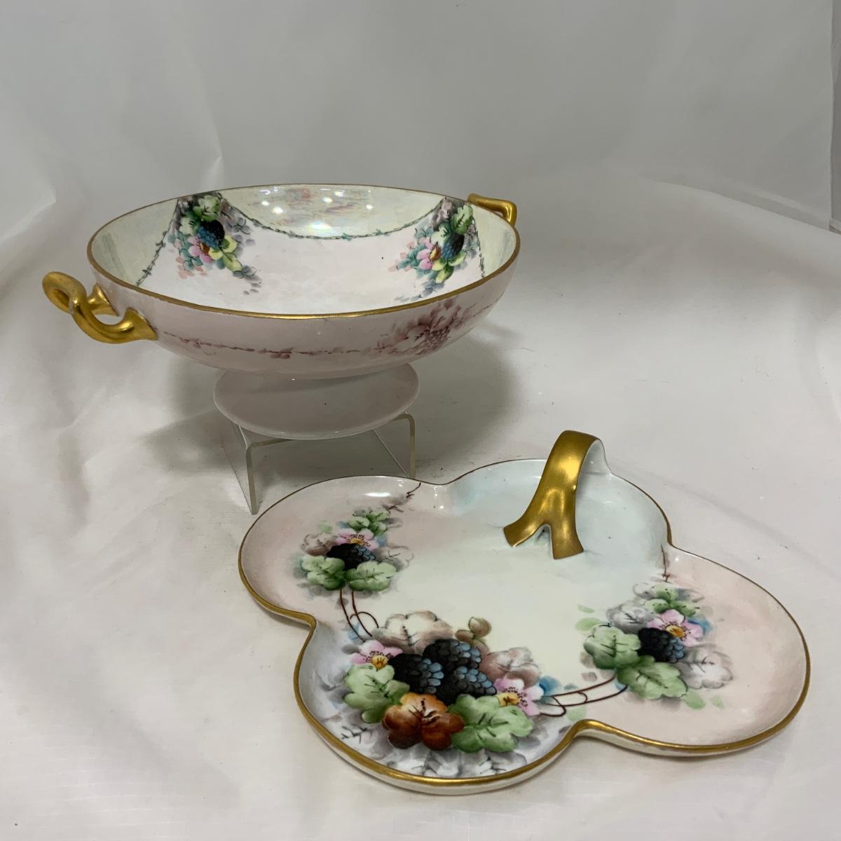 Two beautifully hand painted porcelain pieces adorned with fruit. The possibilities are endless for what you could use these for, but I’d prefer to just look at them. Nice gold detailing on the handles. Please see photos for details and condition. ::: Shipping is available on this lot. If you require shipping you must let us know at the close of the auction. We will coordinate with you after the item has been won. Shipping fees will include insurance up to or exceeding the value of all items being mailed. If you have any questions regarding this lot please contact the auctioneer either via this website, by direct email or by phone. PICK UP TIMES and other important information can be found in the TERMS and DESCRIPTION of the auction. Please take a look for pertinent information. Thanks!