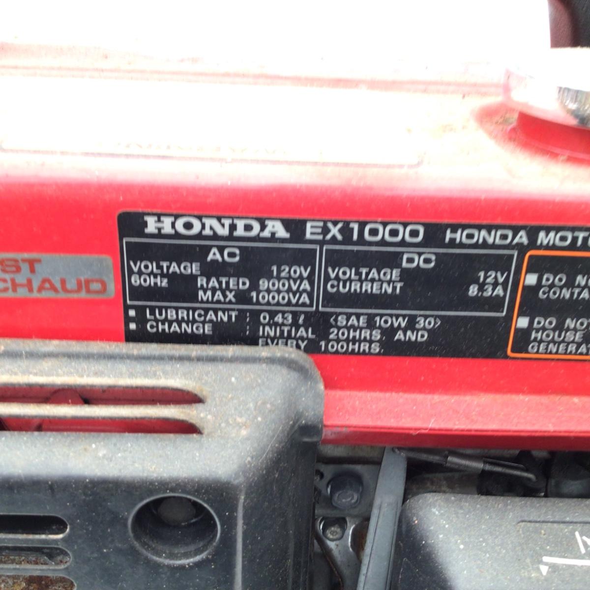 Honda Model: EX1000 Gas Powered Generator.