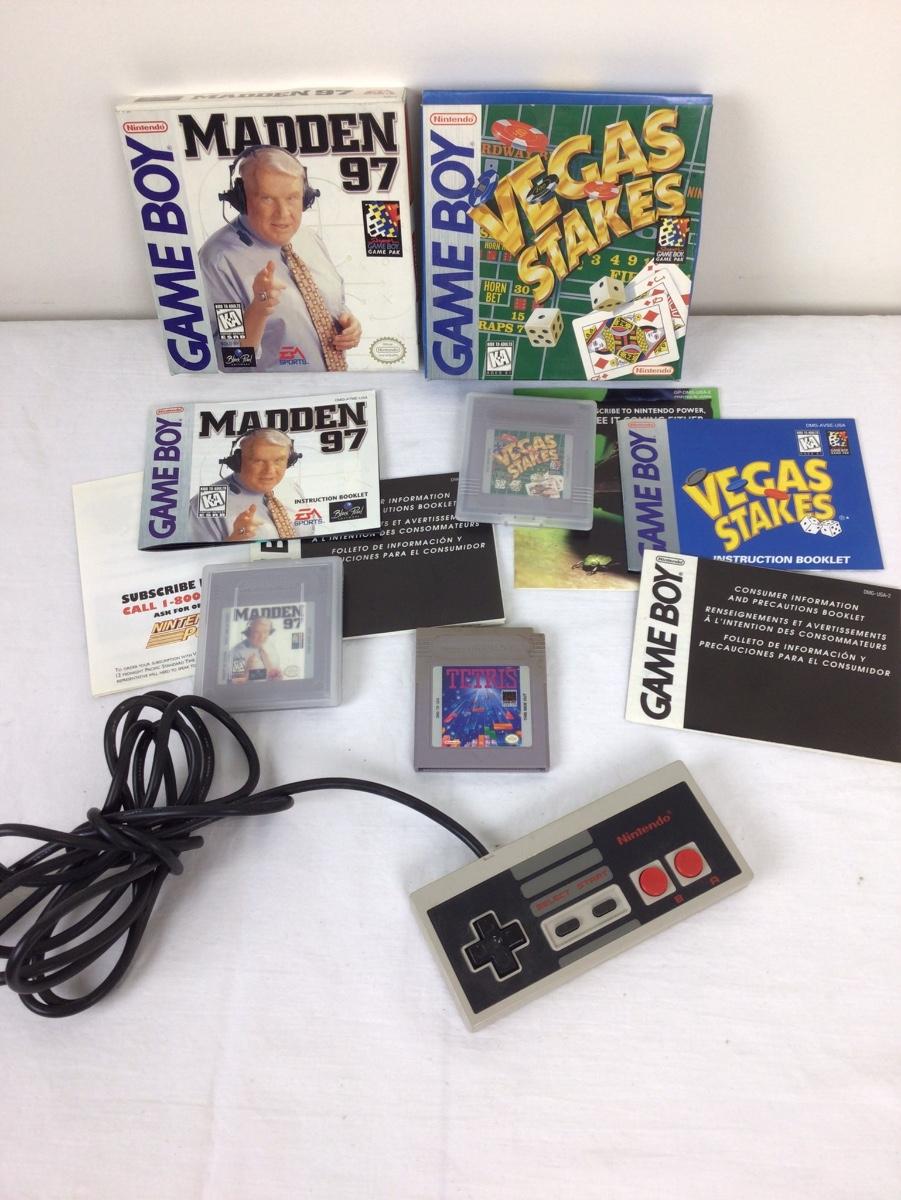Lot contains Madden 97, Vegas Stakes, Tetris and an original Nintendo NES controller.