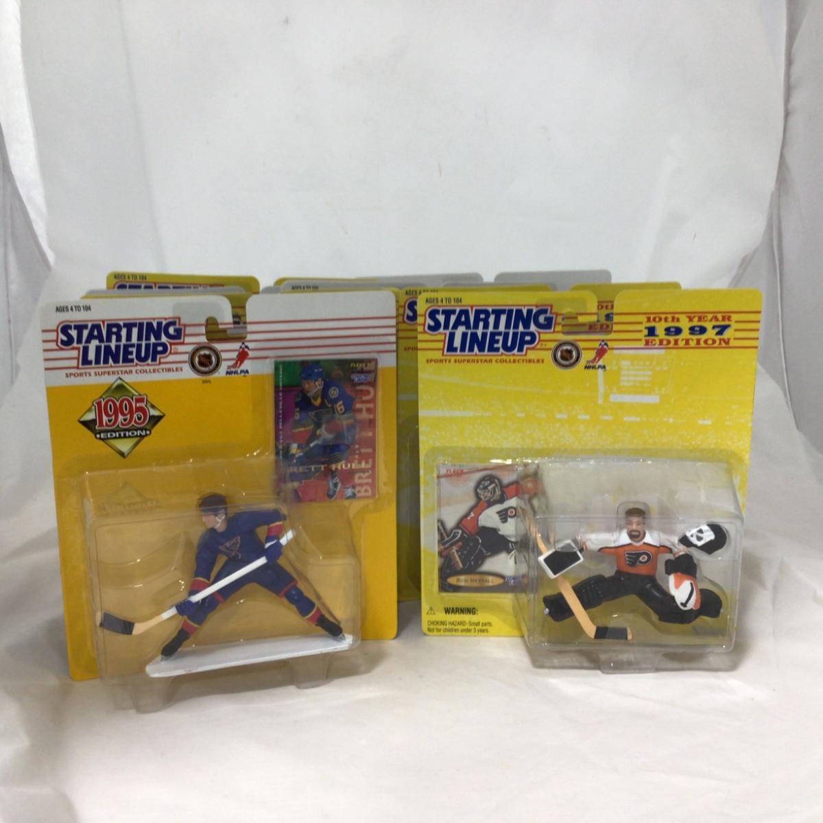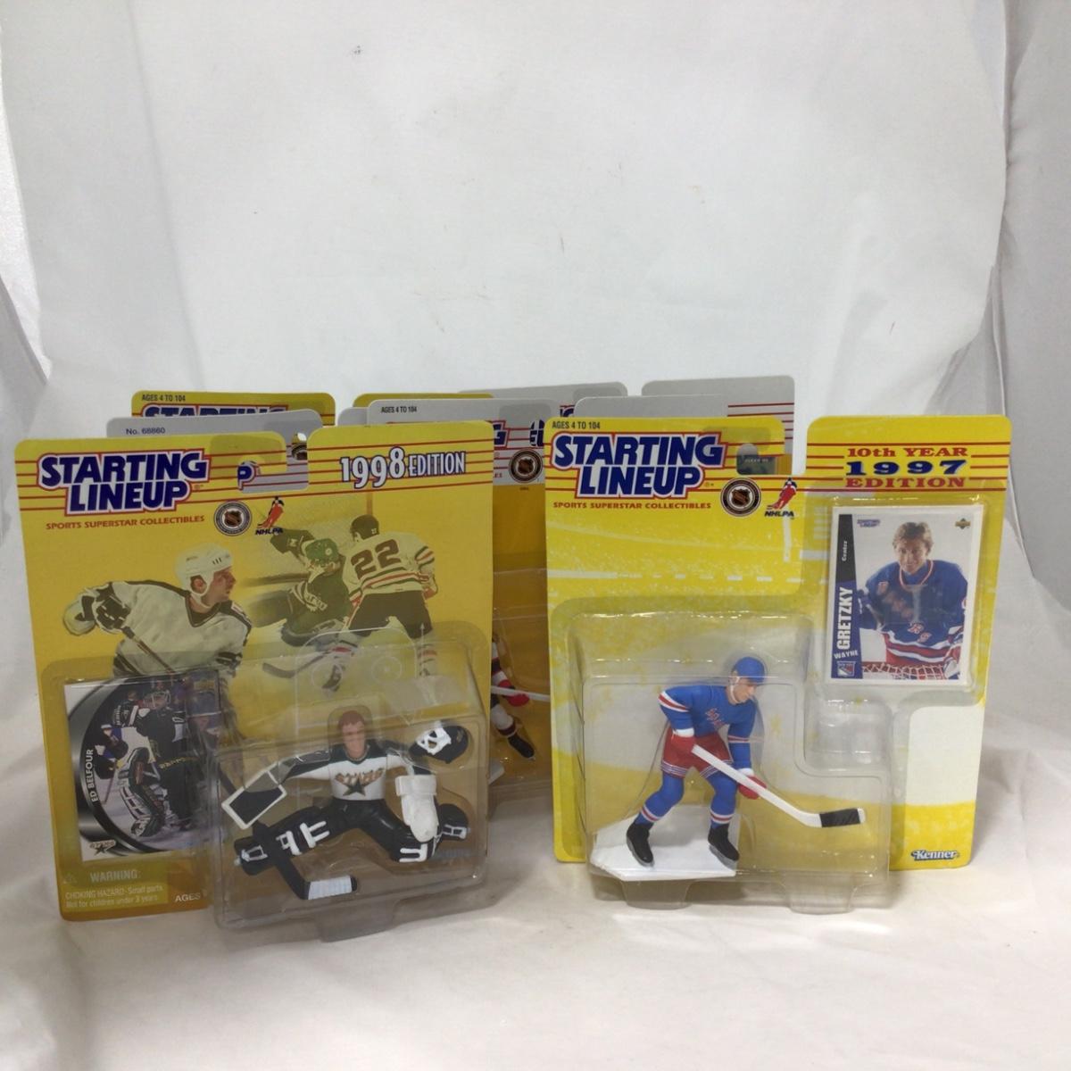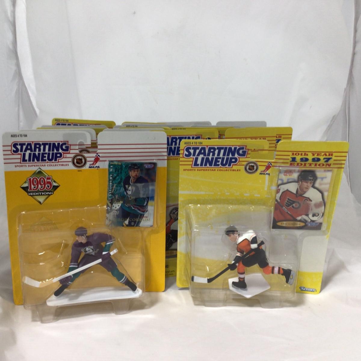 Ten starting lineup hockey figures. Please see photos for details and condition. ::: Shipping is available on this lot. If you require shipping you must let us know at the close of the auction. We will coordinate with you after the item has been won. Shipping fees will include insurance up to or exceeding the value of all items being mailed. If you have any questions regarding this lot please contact the auctioneer either via this website, by direct email or by phone. PICK UP TIMES and other important information can be found in the TERMS and DESCRIPTION of the auction. Please take a look for pertinent information. Thanks!