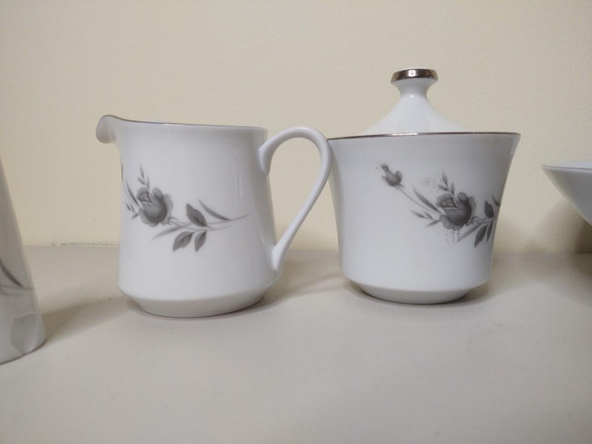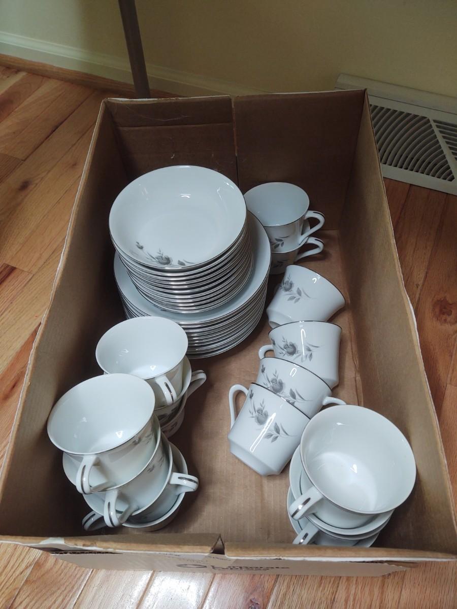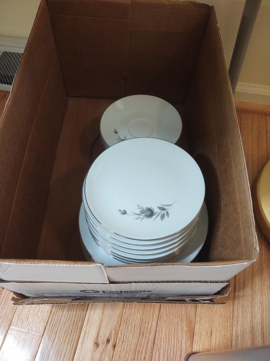 Japanese Four Crown China appears to be a service for 12 set. Includes table contents as well as 3 more boxes pictured. The salt shaker has a chip in it. We unwrapped the entire set and this was the only damaged piece that we found, but you are buying this lot As-Is with no guarantees.