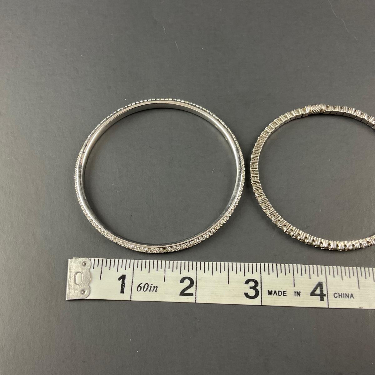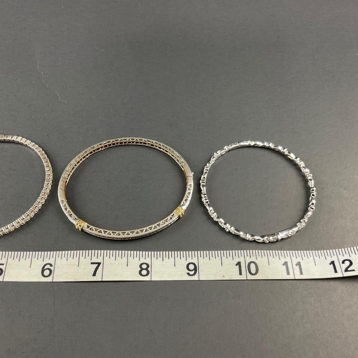 Nine miscellaneous costume jewelry bracelets. These pieces do have some scuffs, scratches, marks, or slight damage, but otherwise appears to be in great shape. Please see photos for details and condition. Any condition statement is given as a courtesy to a client, is an opinion, and should not be treated as a statement of fact. Reference to condition written, oral or within a condition report shall not be regarded as a full account of condition and may not include all defects, alterations, or restorations. Absence of a condition report does not imply a lot is flawless or lacking imperfections or damage. Katherine’s Auction & Appraisal Service shall have no responsibility for any error or omission. Returns shall not be accepted on the basis of condition. ::: Shipping is available on this lot. If you require shipping you must let us know at the close of the auction. We will coordinate with you after the item has been won. Shipping fees will include insurance up to or exceeding the value of all items being mailed. If you have any questions regarding this lot please contact the auctioneer either via this website, by direct email or by phone. PICK UP TIMES and other important information can be found in the TERMS and DESCRIPTION of the auction. Please take a look for pertinent information. Thanks!