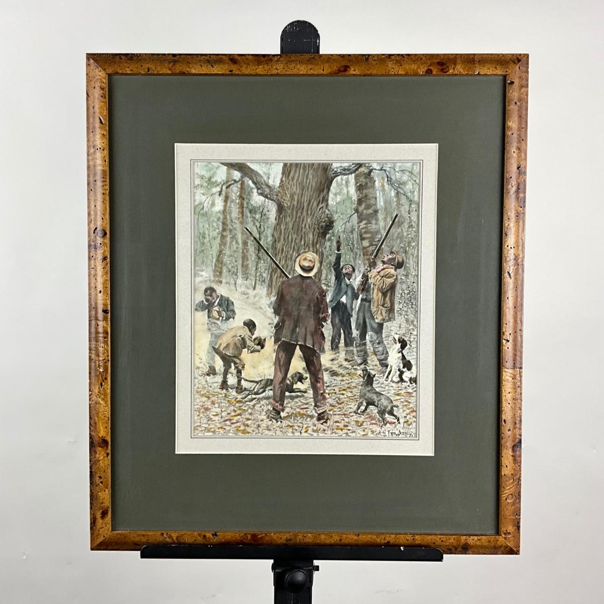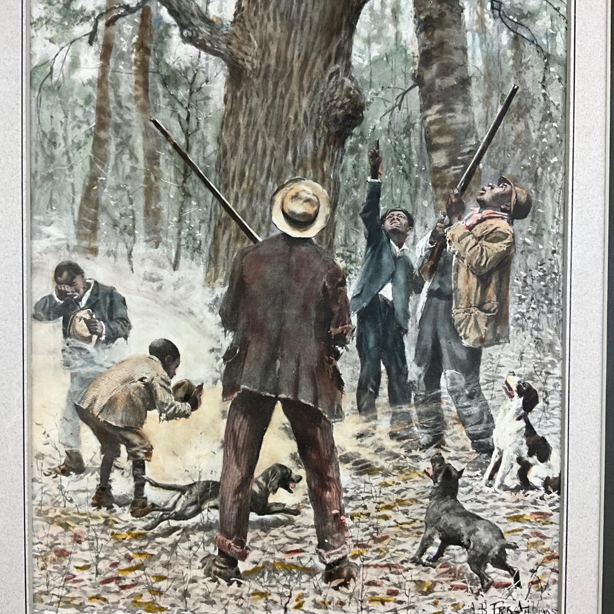 075 Engraving Of Men Hunting Raccoons By A.B. Frost Circa 1905