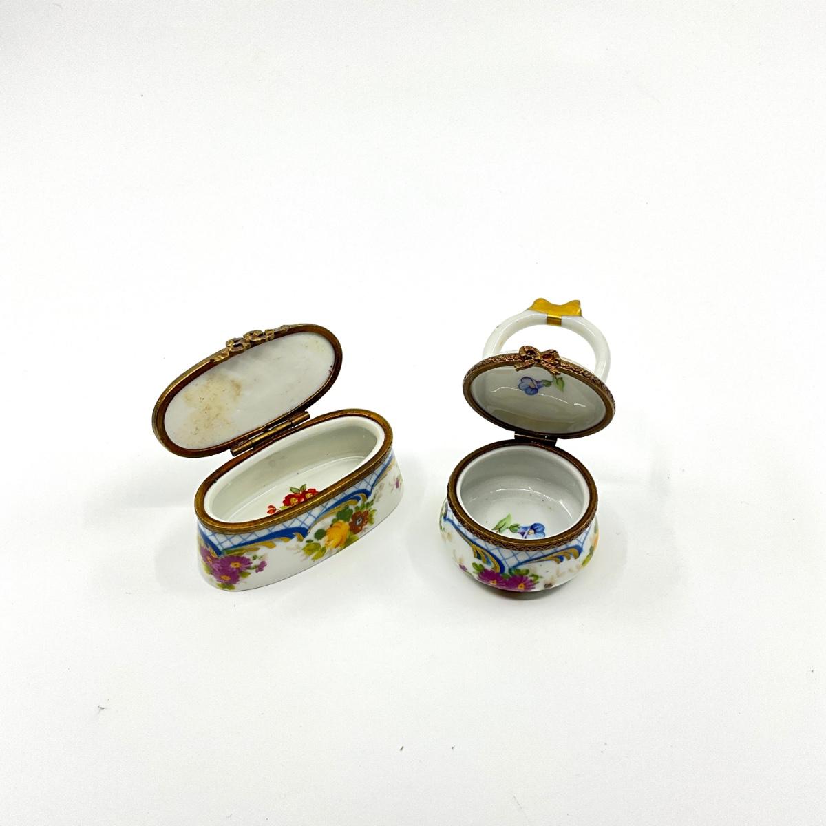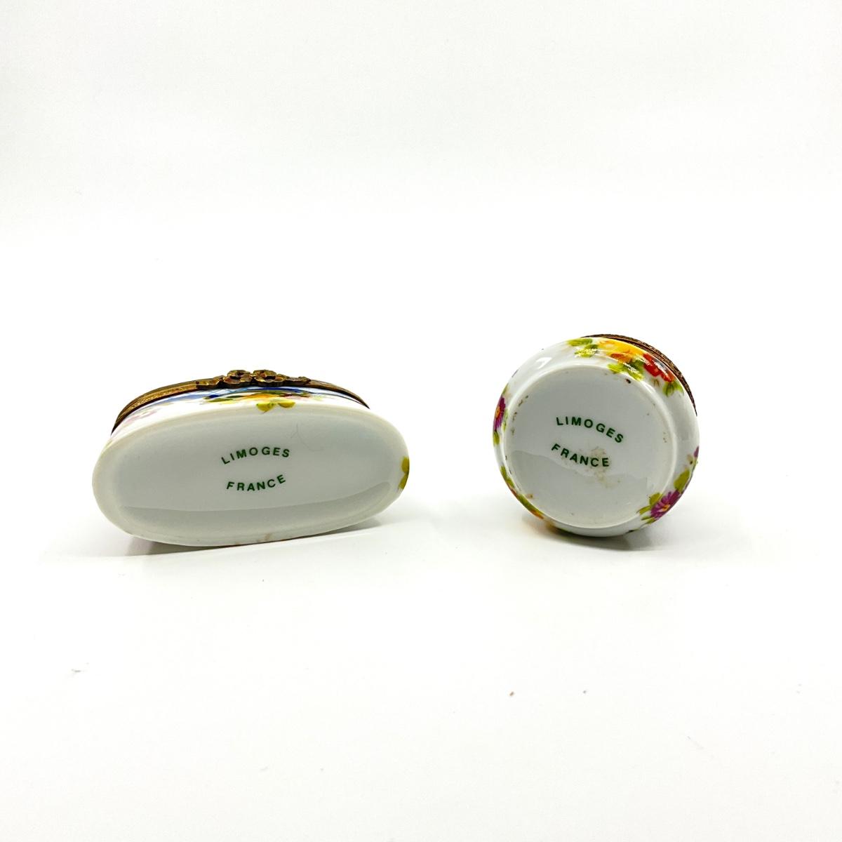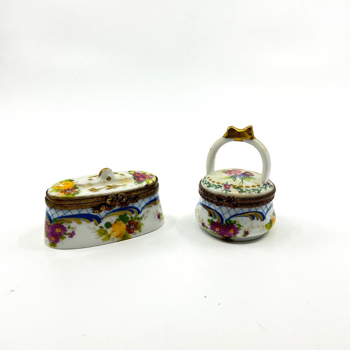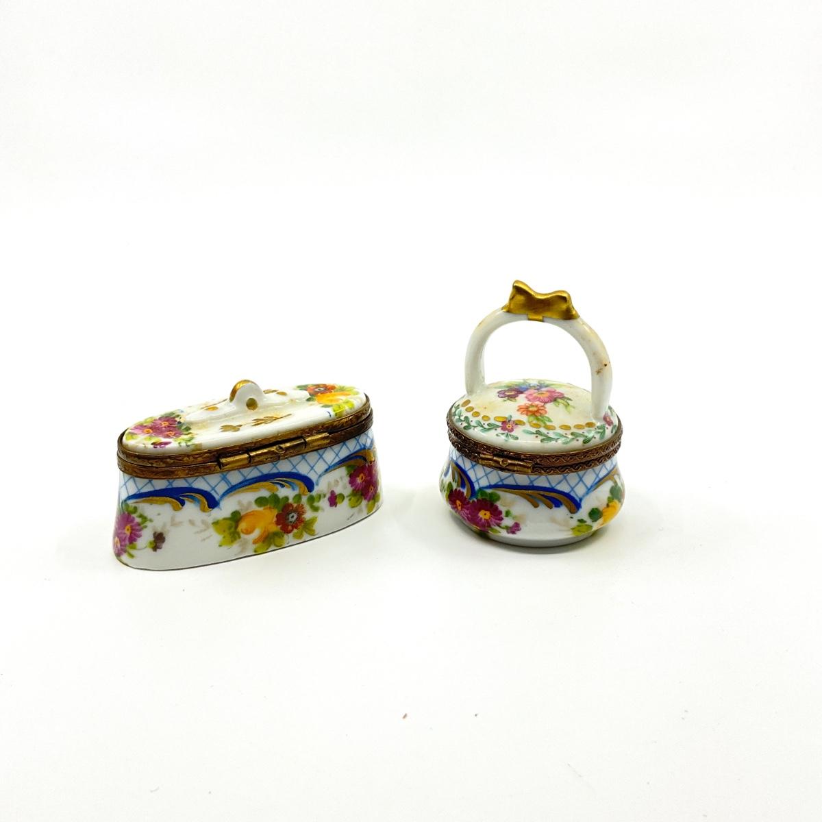 173 Limoge France Oval Box and Floral Handled Basket Porcelain Box