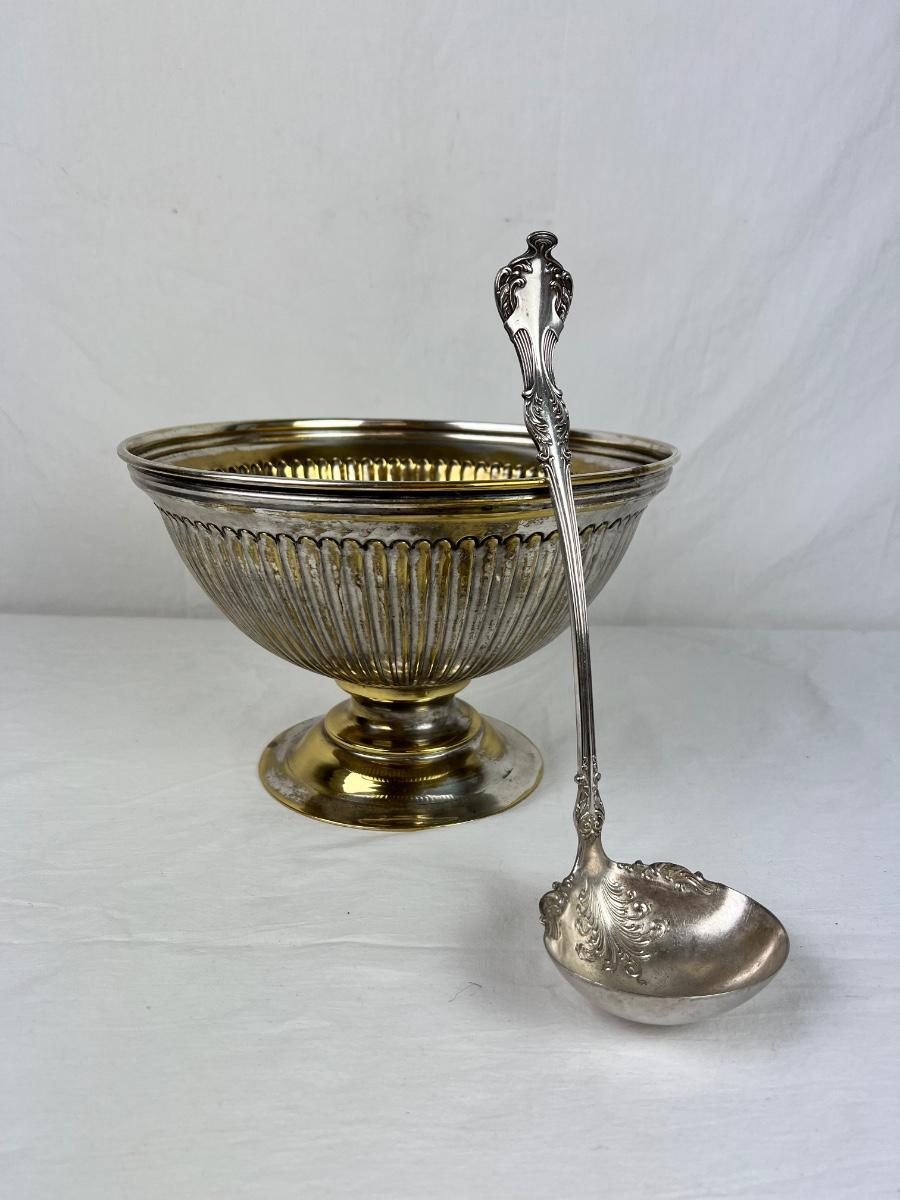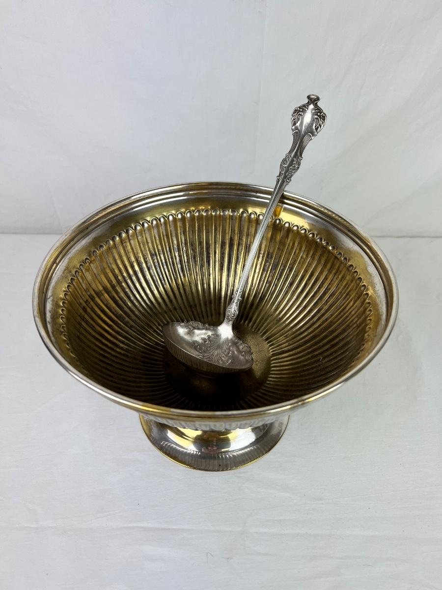Lot of Vintage Silver Plate Pedestal Punch Bowl & Roger Brothers Ladle