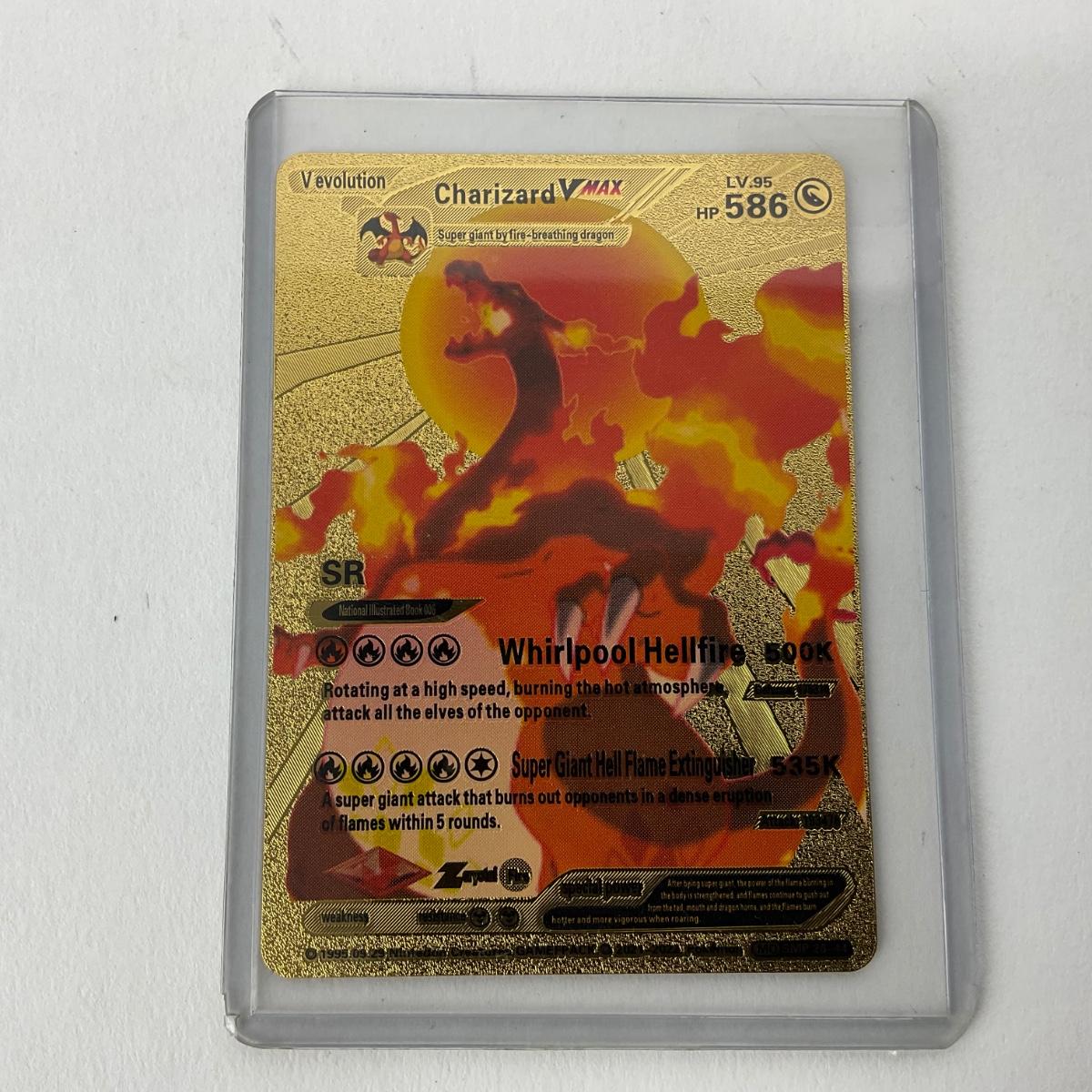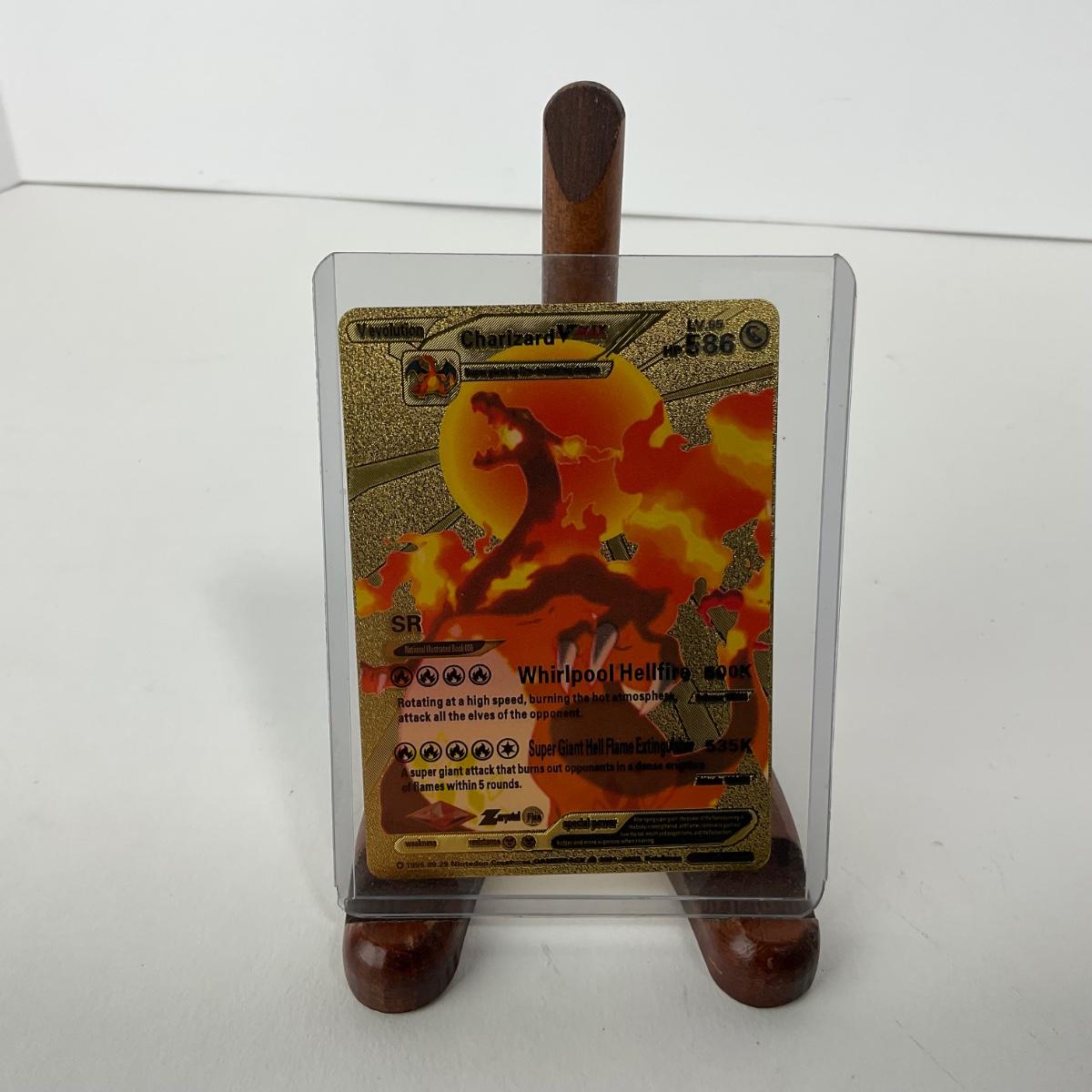 One Pokémon gold foil Charizard card in plastic sleeve. Please see photos for details and condition. ::: Shipping is available on this lot. If you require shipping you must let us know at the close of the auction. We will coordinate with you after the item has been won. Shipping fees will include insurance up to or exceeding the value of all items being mailed. If you have any questions regarding this lot please contact the auctioneer either via this website, by direct email or by phone. PICK UP TIMES and other important information can be found in the TERMS and DESCRIPTION of the auction. Please take a look for pertinent information. Thanks!