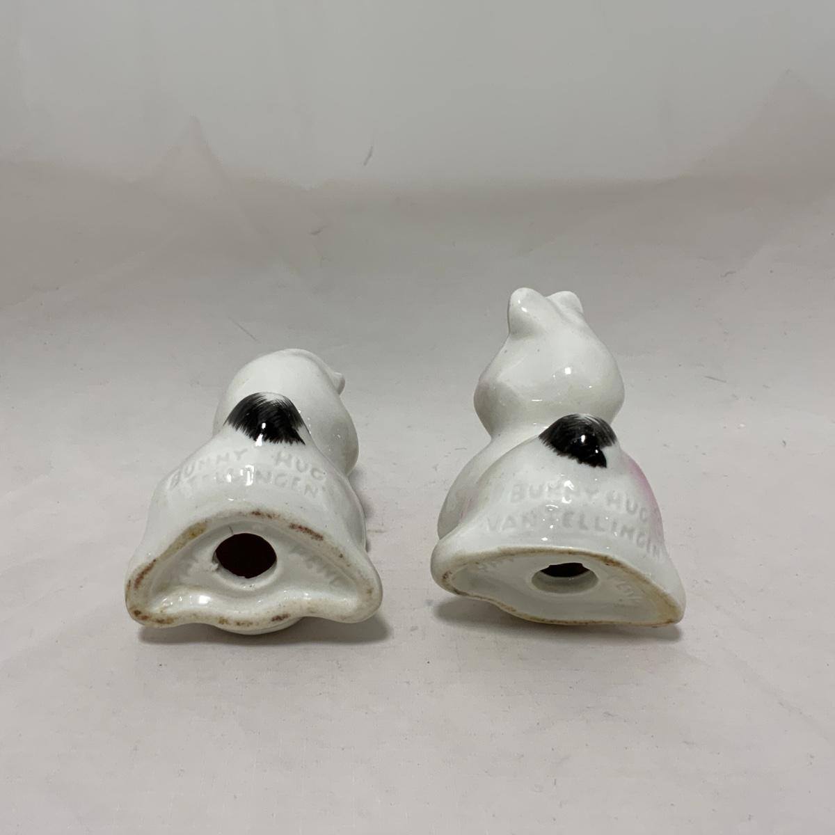 From the Estate of Peter and Alice Radovanovich: Adorable set of Van Tellingen 1950s Bunny Huggies. So sweet with their pink cheeks and smiles. Both pieces are in exceptional vintage condition. Please see photos for details and condition. ::: Shipping is available on this lot. If you require shipping you must let us know at the close of the auction. We will coordinate with you after the item has been won. Shipping fees will include insurance up to or exceeding the value of all items being mailed. If you have any questions regarding this lot please contact the auctioneer either via this website, by direct email or by phone. PICK UP TIMES and other important information can be found in the TERMS and DESCRIPTION of the auction. Please take a look for pertinent information. Thanks!
