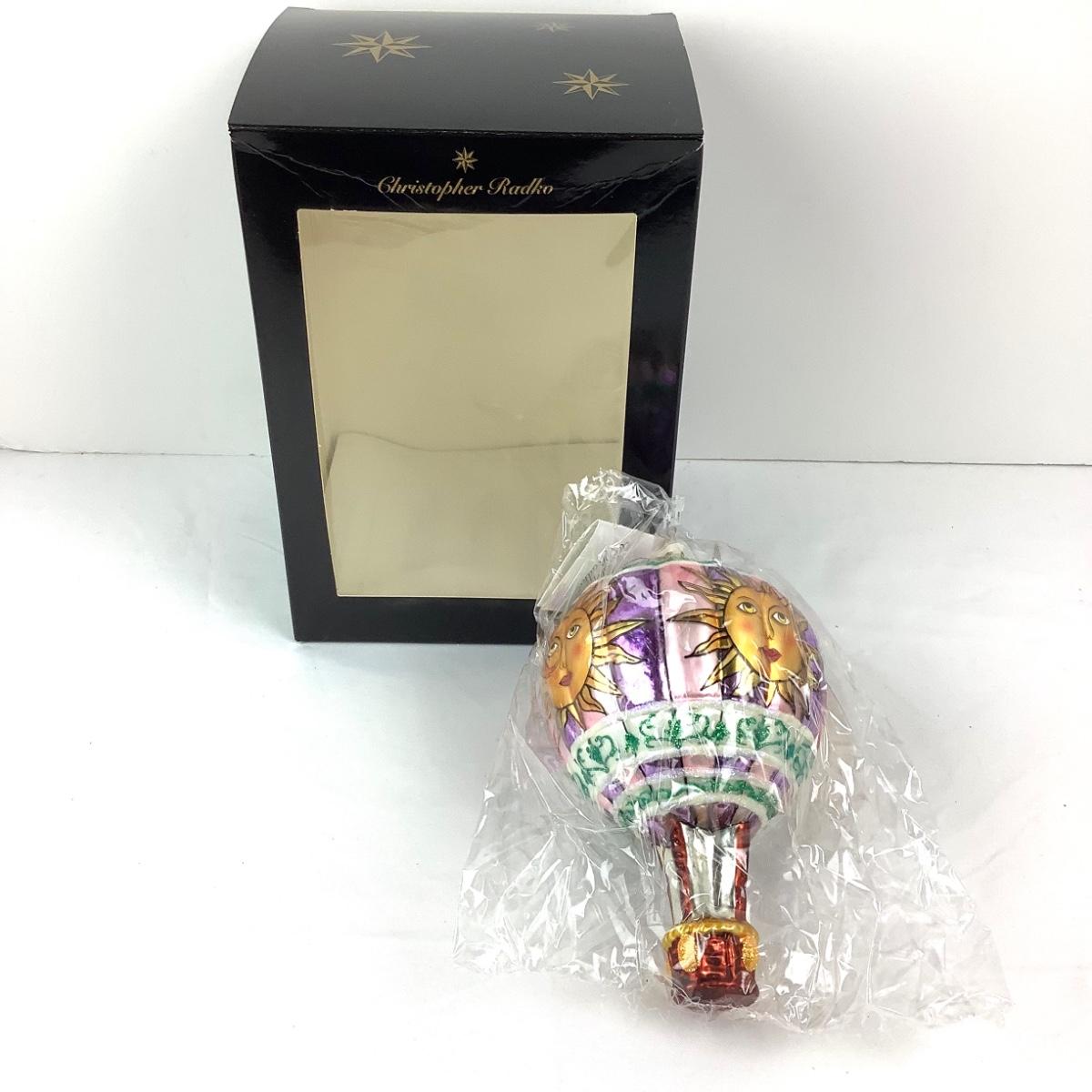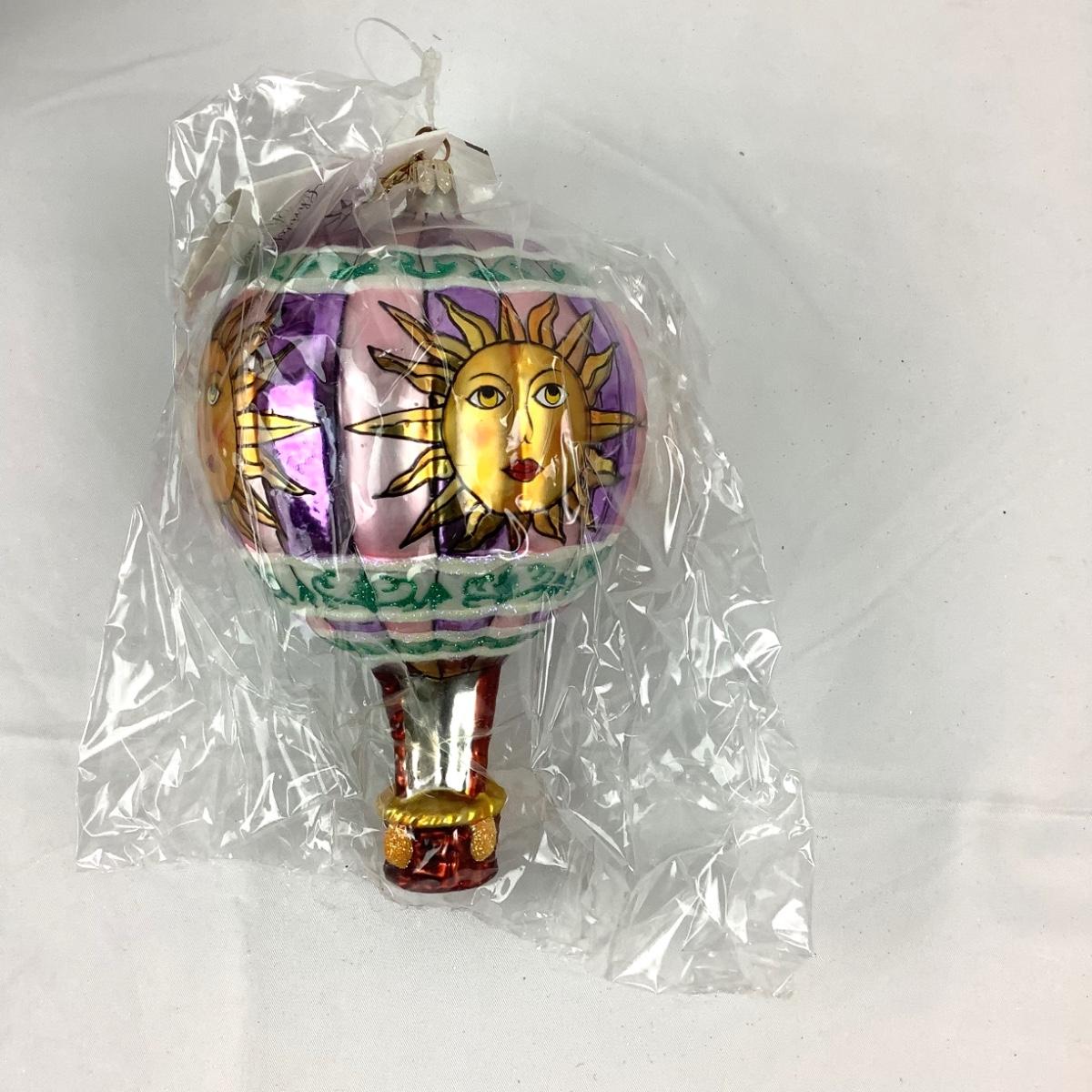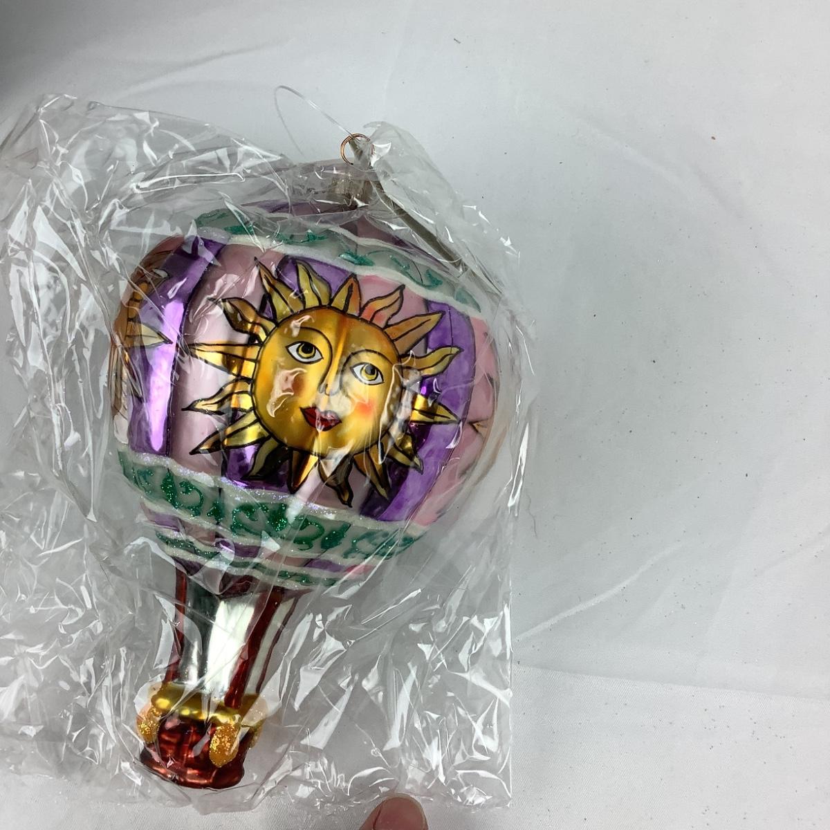 The hot air balloon is decorated with suns, it is 6" x 4" and is new in original box.