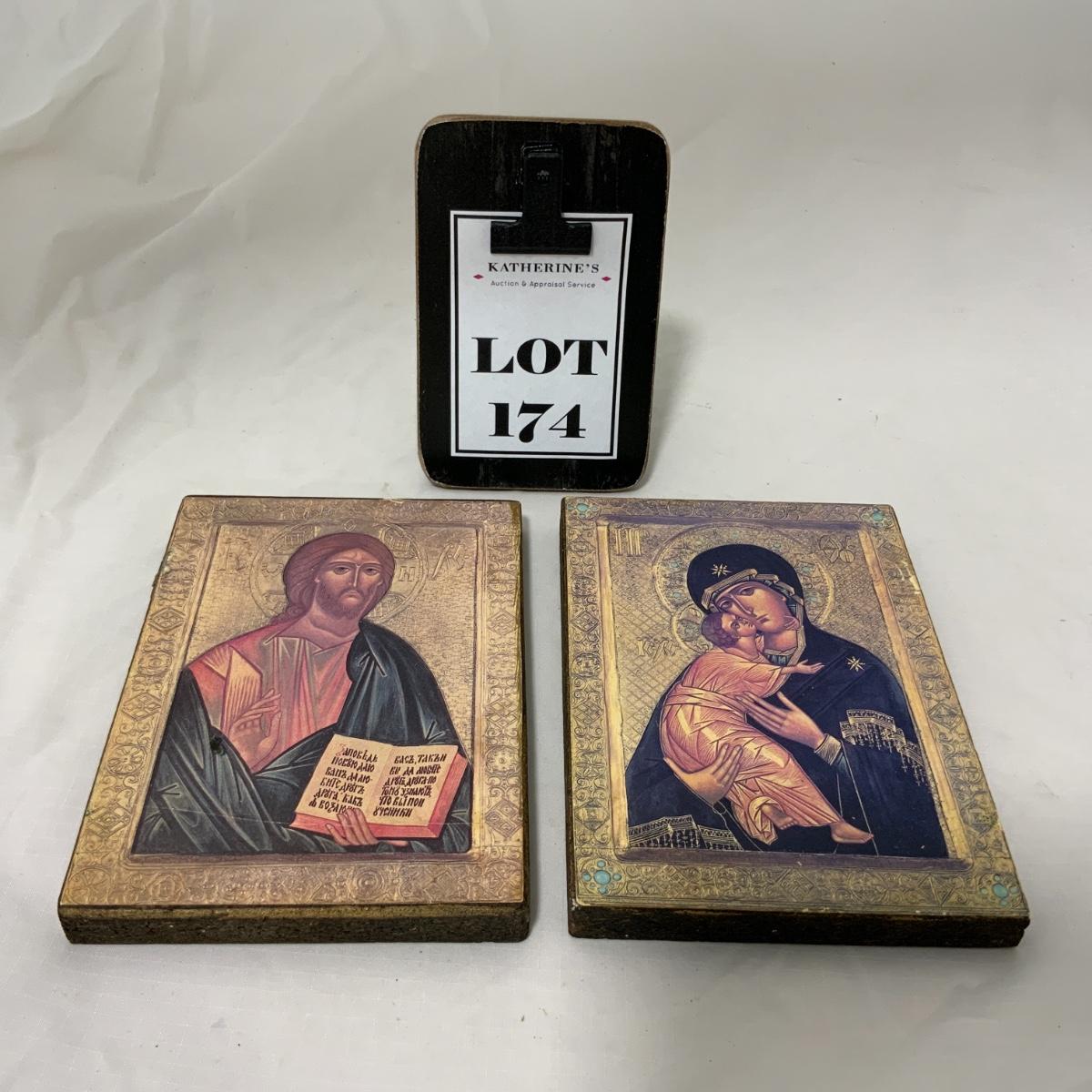From the Estate of Peter Radovanovich: Two nice matching Eastern Orthodox style renderings of Mary and Jesus. Please see photos for details and condition. ::: Shipping is available on this lot. If you require shipping you must let us know at the close of the auction. We will coordinate with you after the item has been won. Shipping fees will include insurance up to or exceeding the value of all items being mailed. If you have any questions regarding this lot please contact the auctioneer either via this website, by direct email or by phone. PICK UP TIMES and other important information can be found in the TERMS and DESCRIPTION of the auction. Please take a look for pertinent information. Thanks!