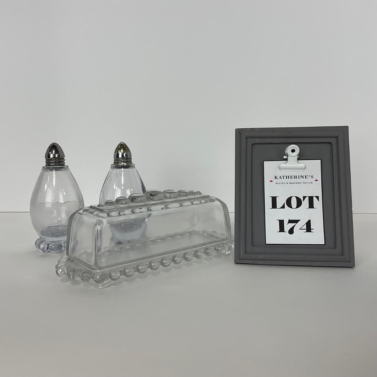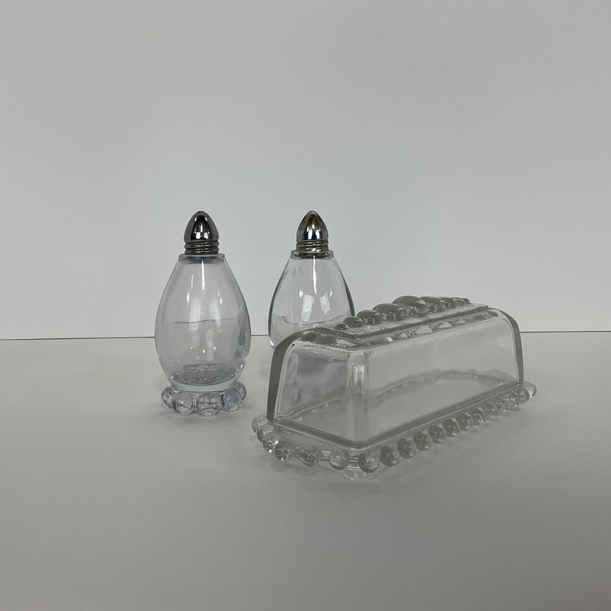 -174- GLASSWARE | Candlewick Imperial Glass Co. | Covered Butter Dish & Salt And Pepper Shakers