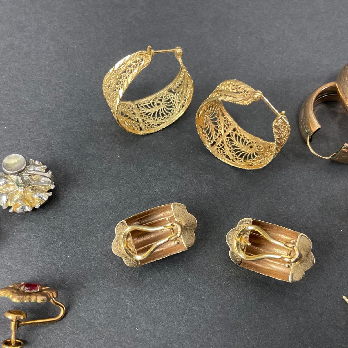 Assorted mix of earrings and one ear cuff. Please see photos for details and condition. Any condition statement is given as a courtesy to a client, is an opinion, and should not be treated as a statement of fact. Reference to condition written, oral or within a condition report shall not be regarded as a full account of condition and may not include all defects, alterations, or restorations. Absence of a condition report does not imply a lot is flawless or lacking imperfections or damage. Katherine’s Auction & Appraisal Service shall have no responsibility for any error or omission. Returns shall not be accepted on the basis of condition. ::: Shipping is available on this lot. If you require shipping you must let us know at the close of the auction. We will coordinate with you after the item has been won. Shipping fees will include insurance up to or exceeding the value of all items being mailed. If you have any questions regarding this lot please contact the auctioneer either via this website, by direct email or by phone. PICK UP TIMES and other important information can be found in the TERMS and DESCRIPTION of the auction. Please take a look for pertinent information. Thanks!