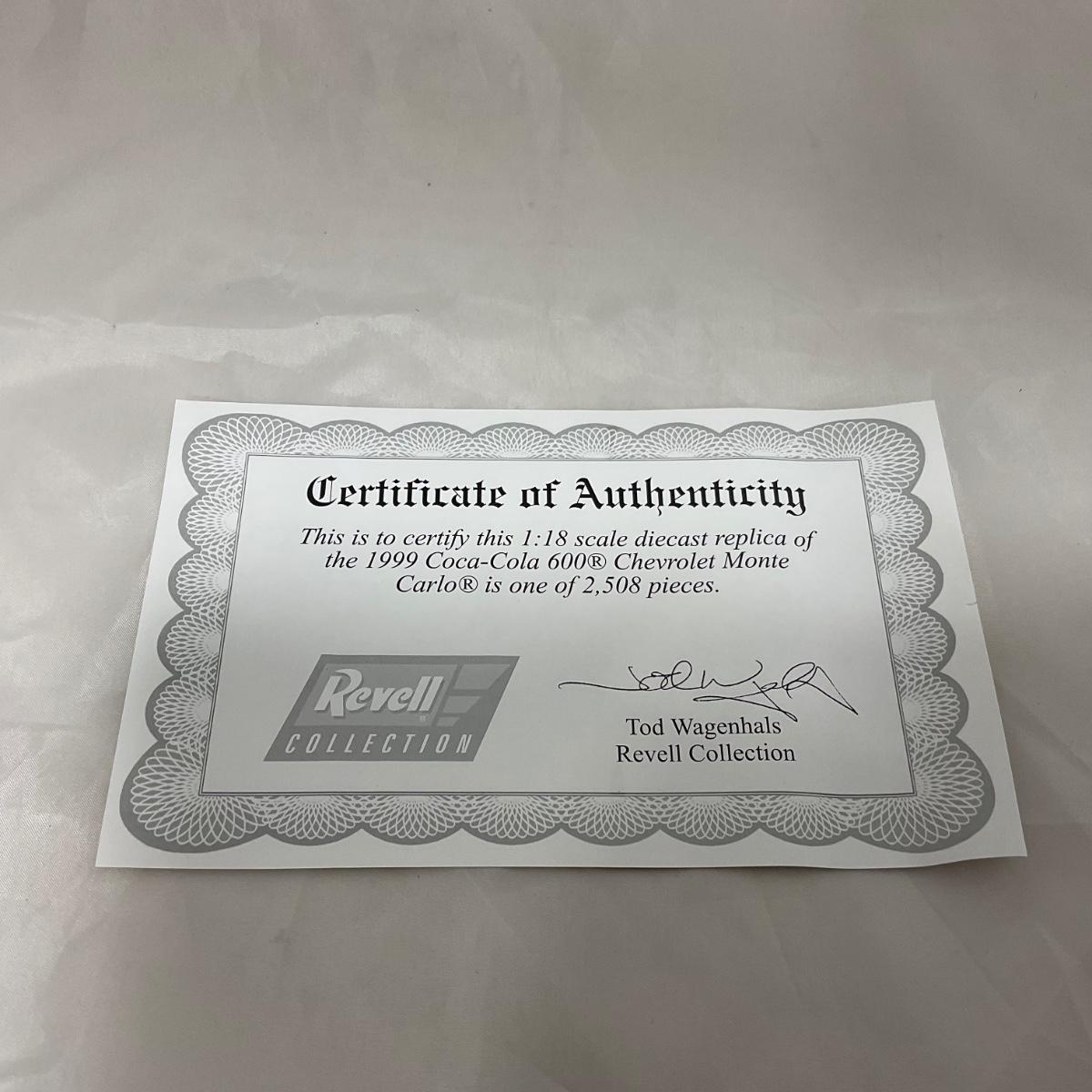 One NASCAR die cast 1:18 scale 1999 Coca-Cola 600 Chevrolet Monte Carlo figure. Comes with a Certificate of Authenticity. Please see photos for details and condition. ::: Shipping is available on this lot. If you require shipping you must let us know at the close of the auction. We will coordinate with you after the item has been won. Shipping fees will include insurance up to or exceeding the value of all items being mailed. If you have any questions regarding this lot please contact the auctioneer either via this website, by direct email or by phone. PICK UP TIMES and other important information can be found in the TERMS and DESCRIPTION of the auction. Please take a look for pertinent information. Thanks!